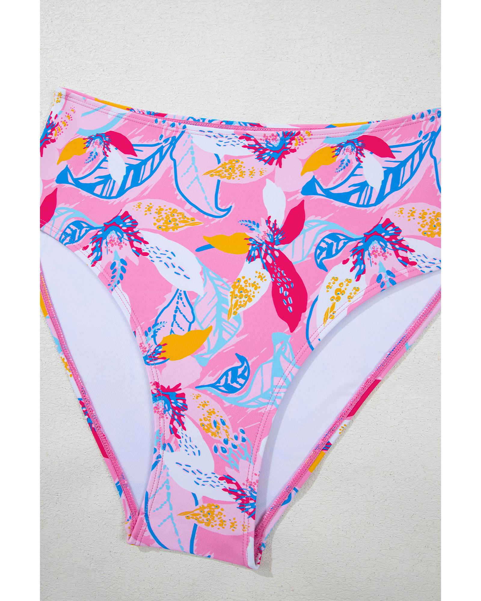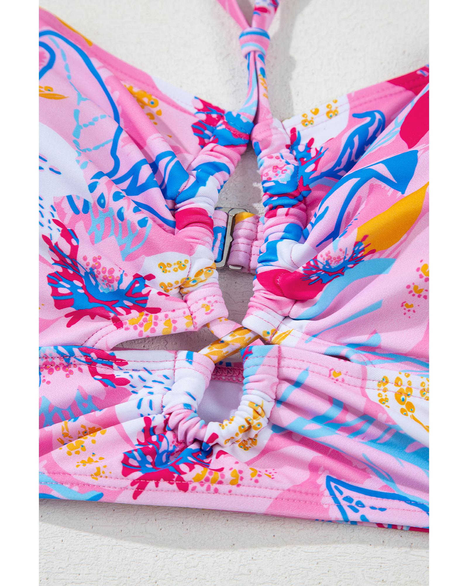 Pink Floral Printed Halter Neck High Waist Bikini - XL