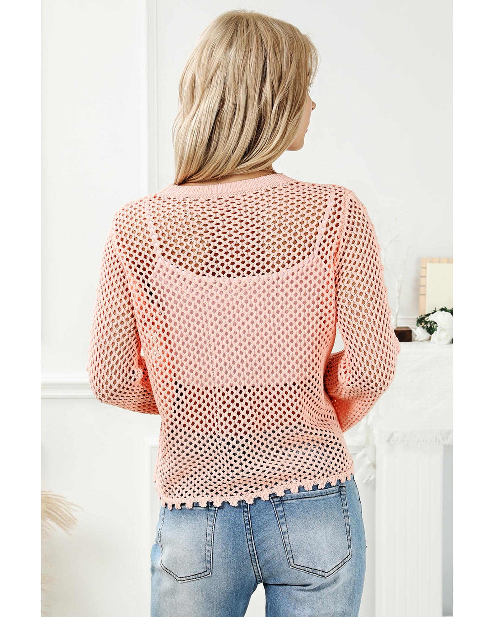 Pink Hollowed Eyelets Knit Bell Sleeve Sweater - M