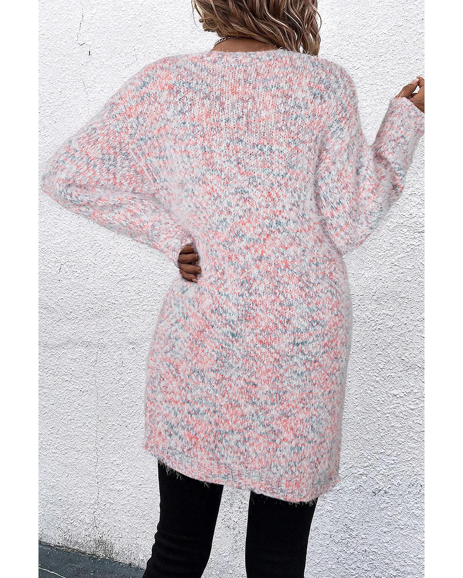 Pink Multicolor Confetti Open Front Knit Cardigan - M