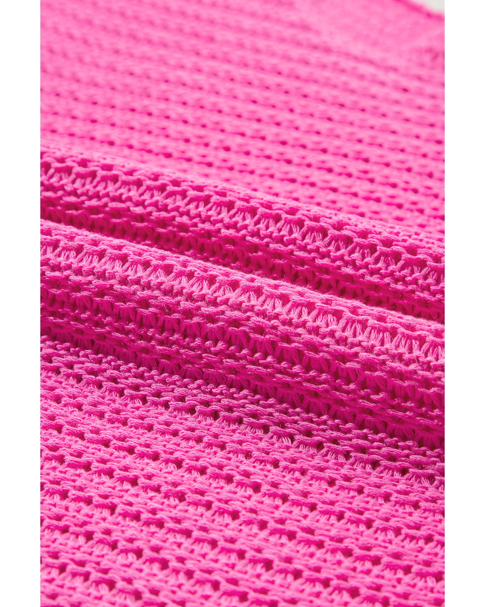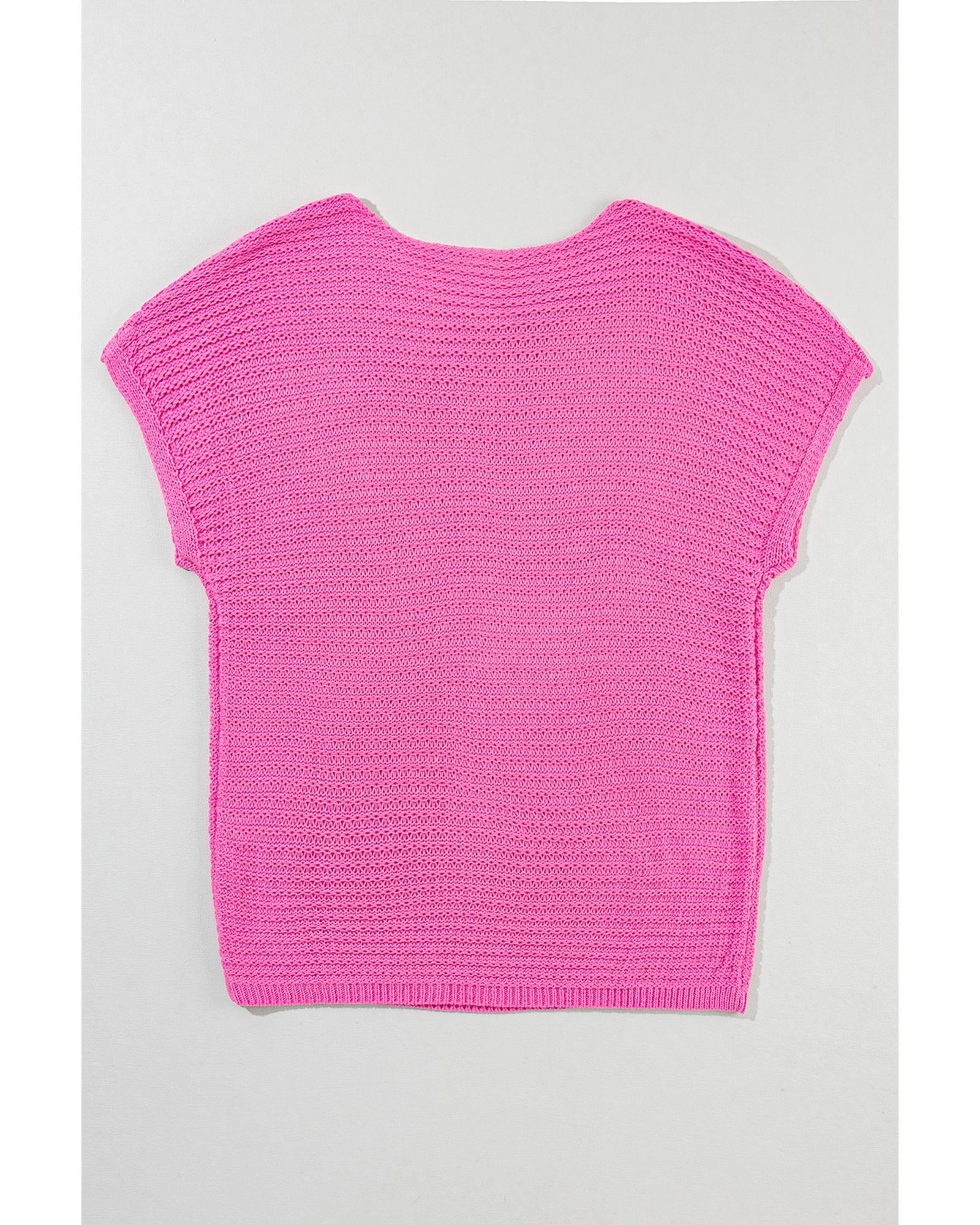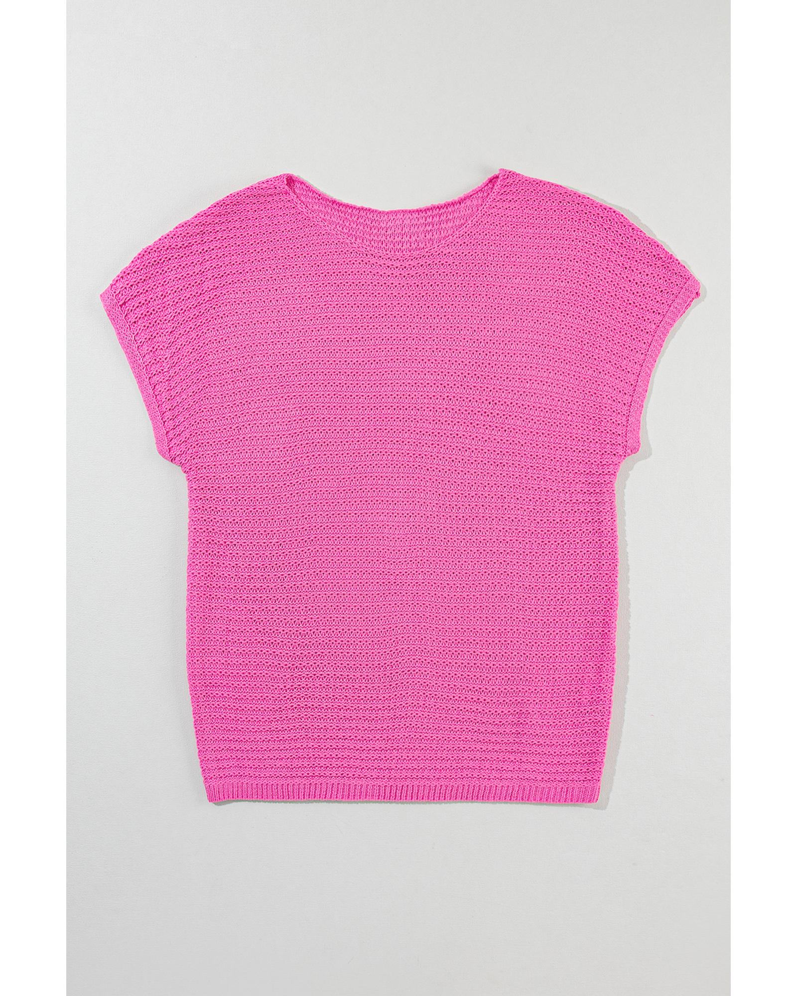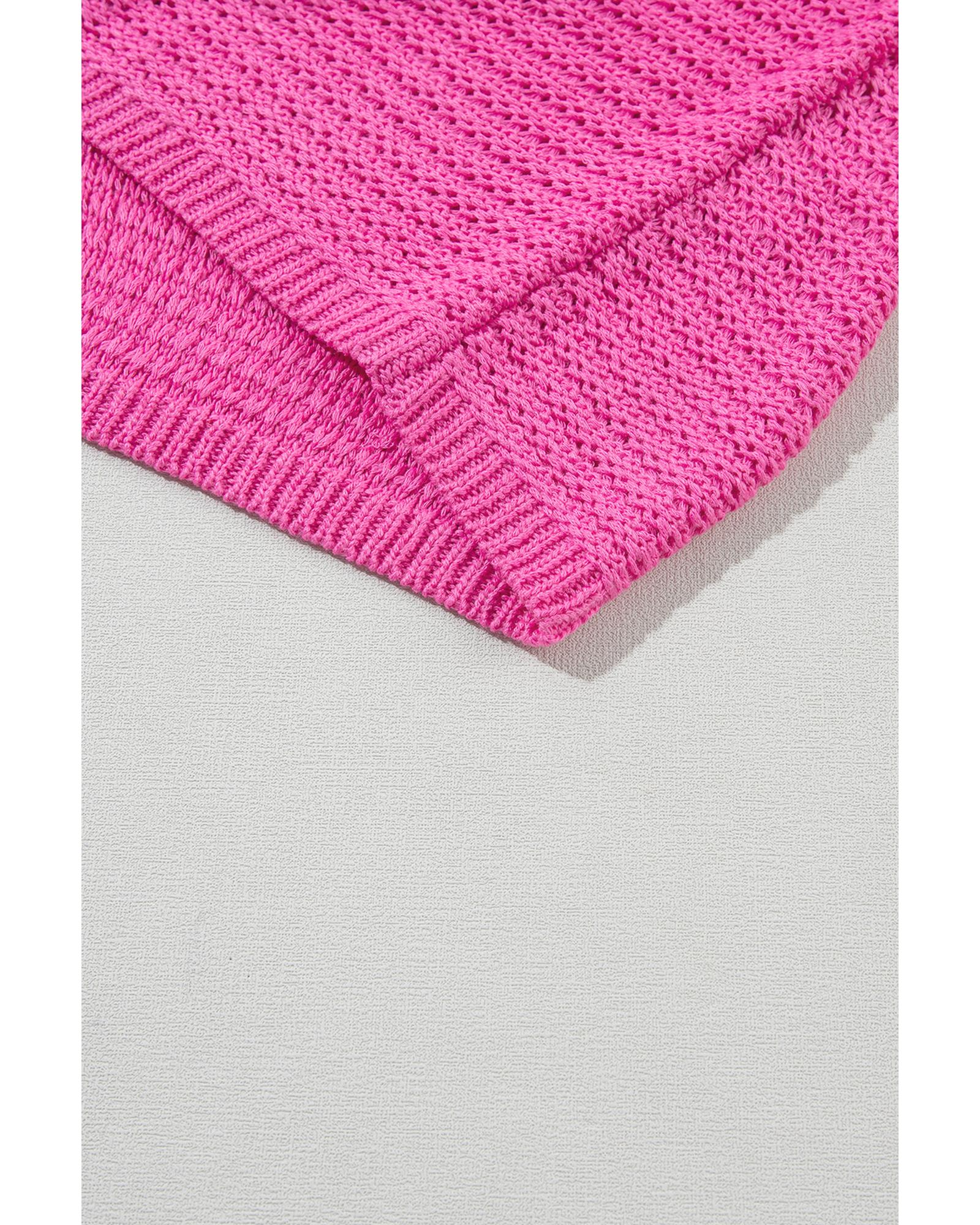 Pink Solid Loose Knit Short Dolman Sleeve Sweater - L