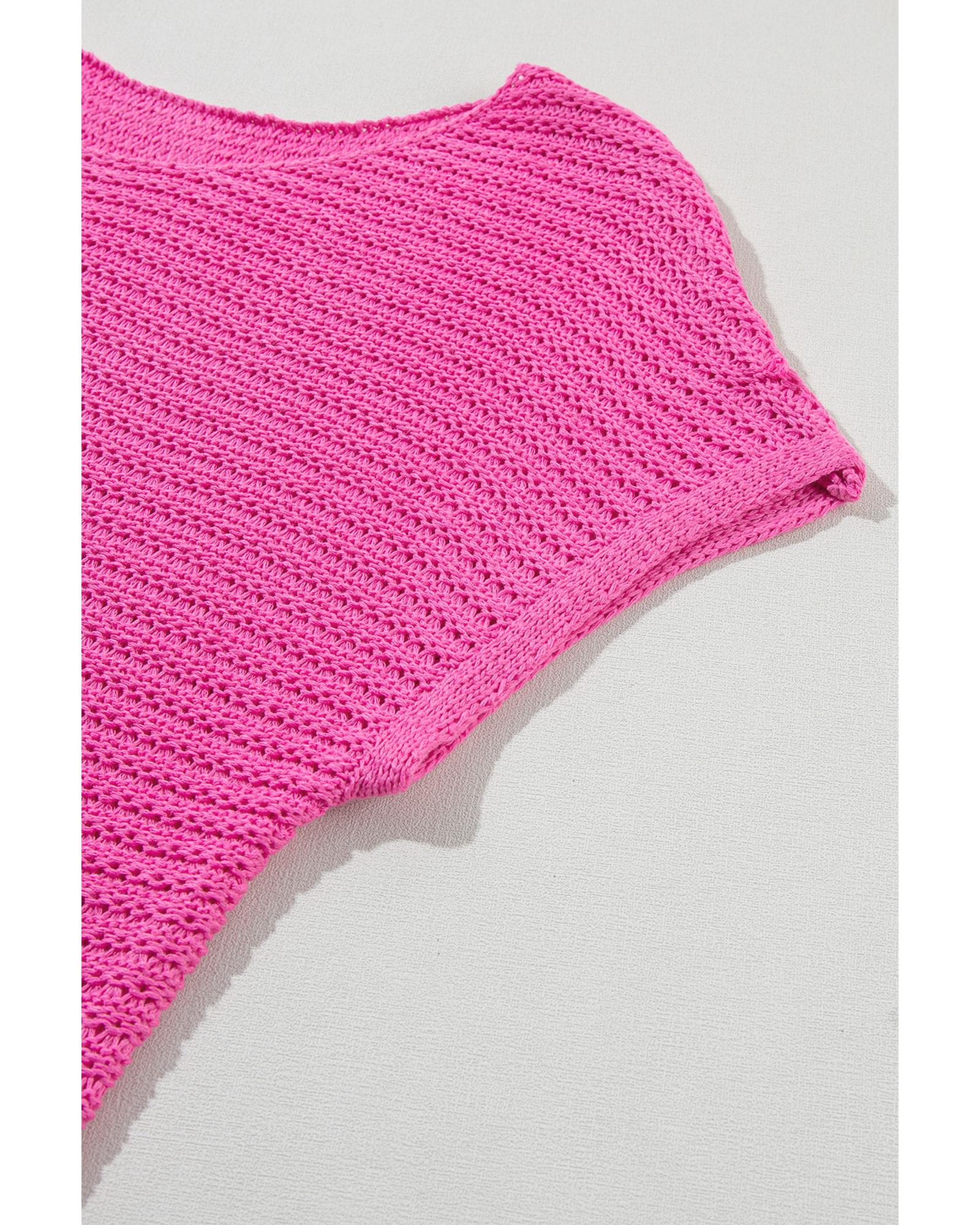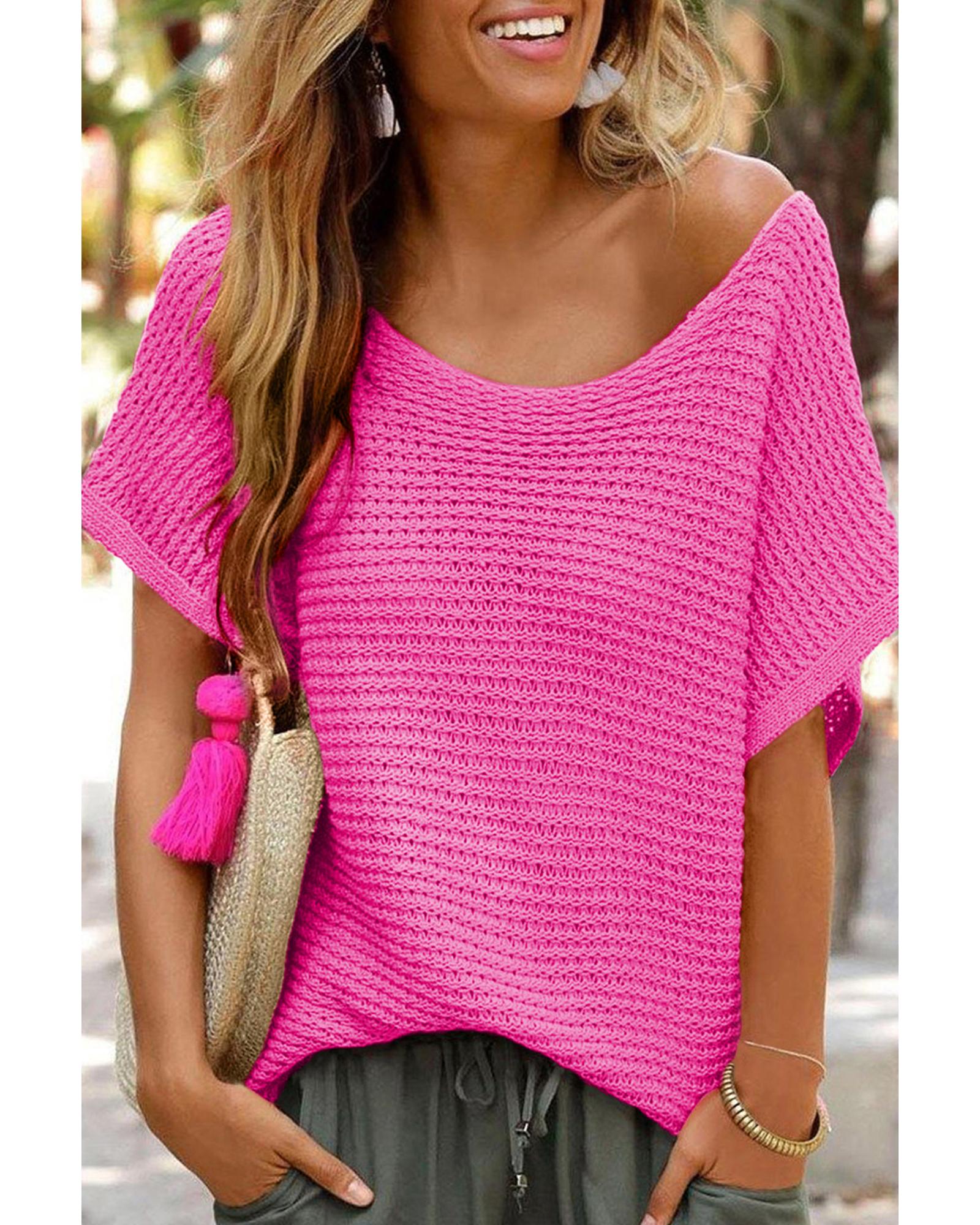 Pink Solid Loose Knit Short Dolman Sleeve Sweater - XL