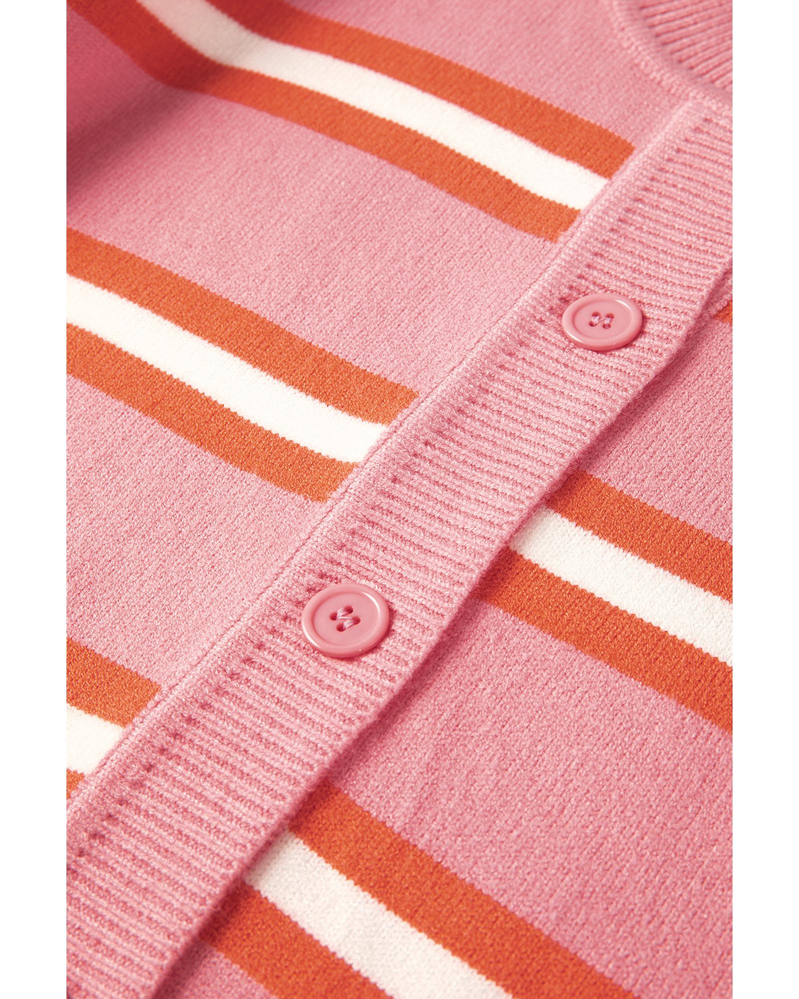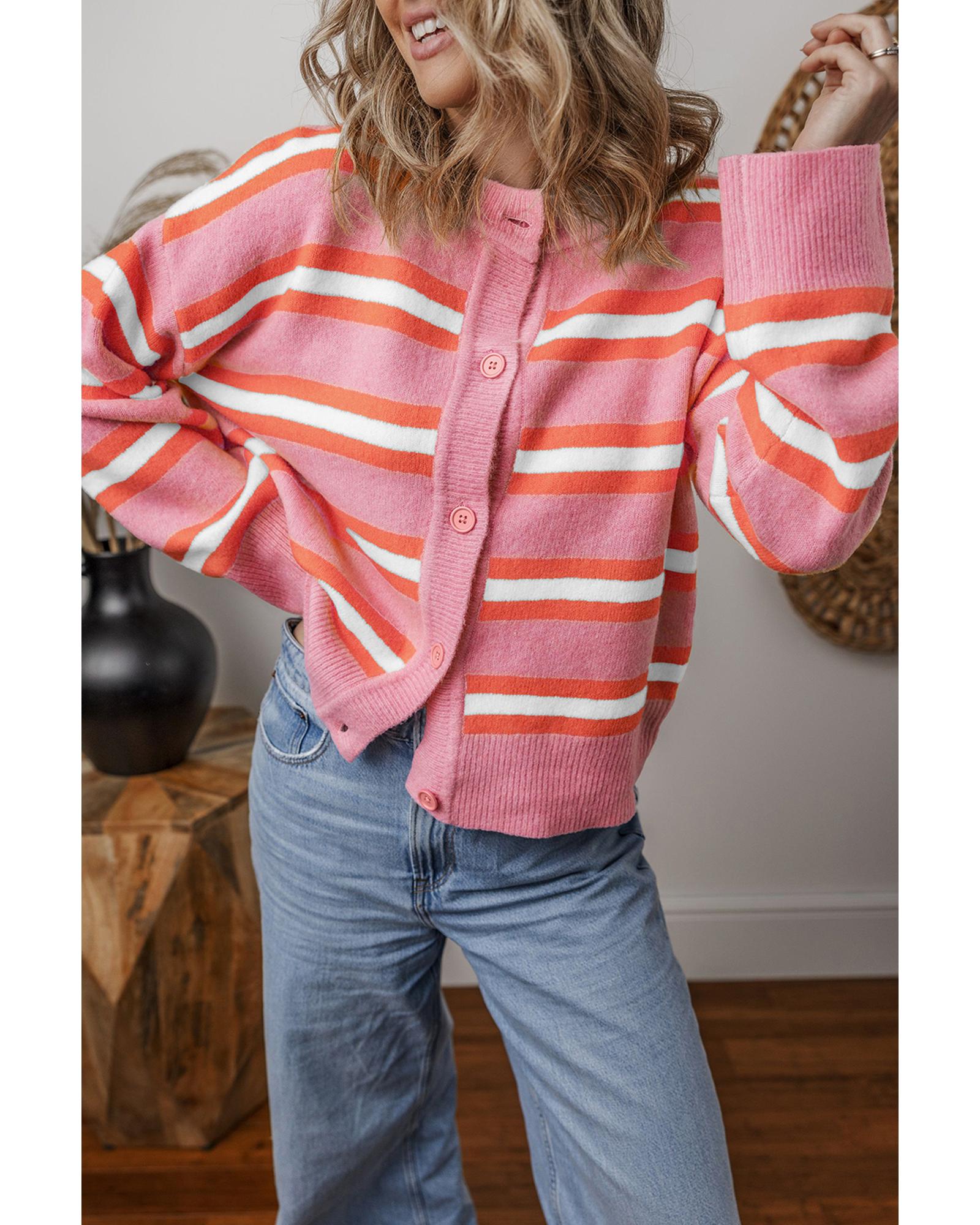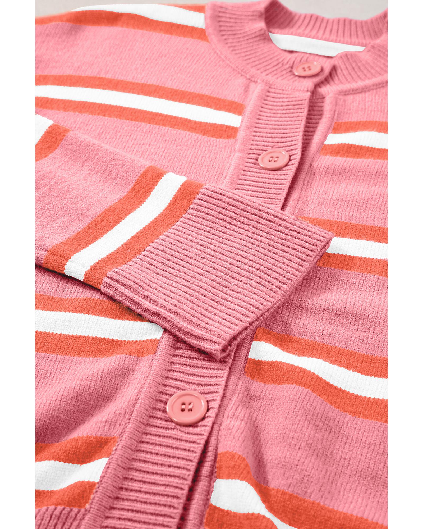 Pink Stripe Drop Shoulder Buttons Cardigan Sweater - M