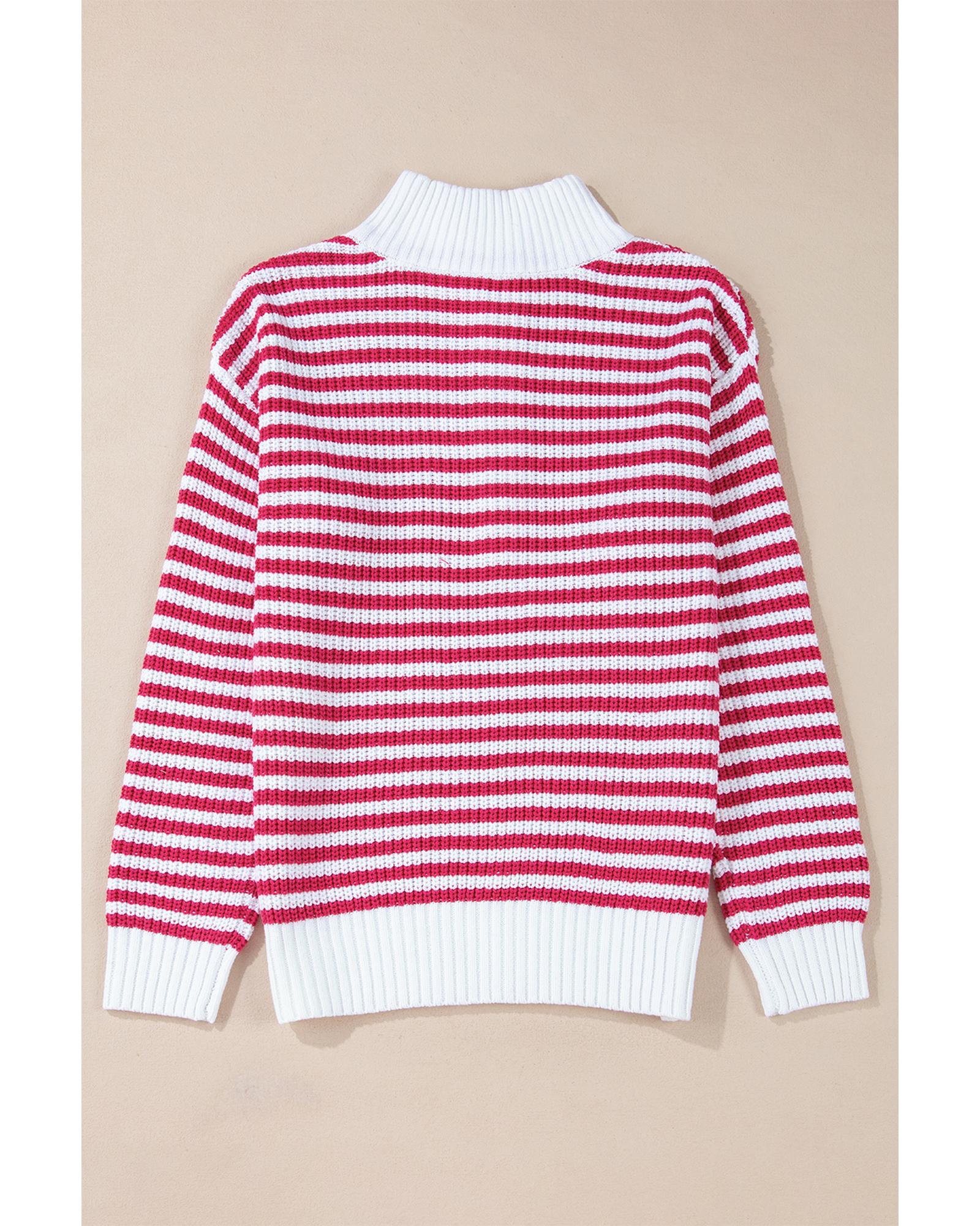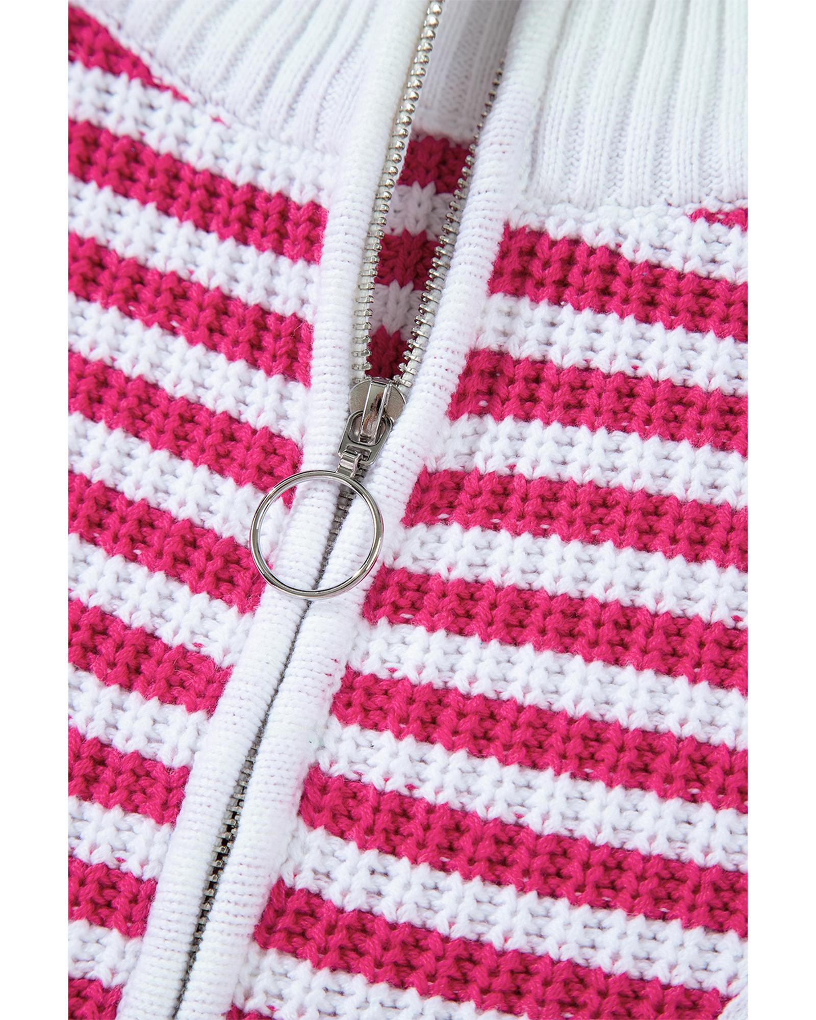 Pink Stripe Zip up Collar Drop Shoulder Sweater - XL