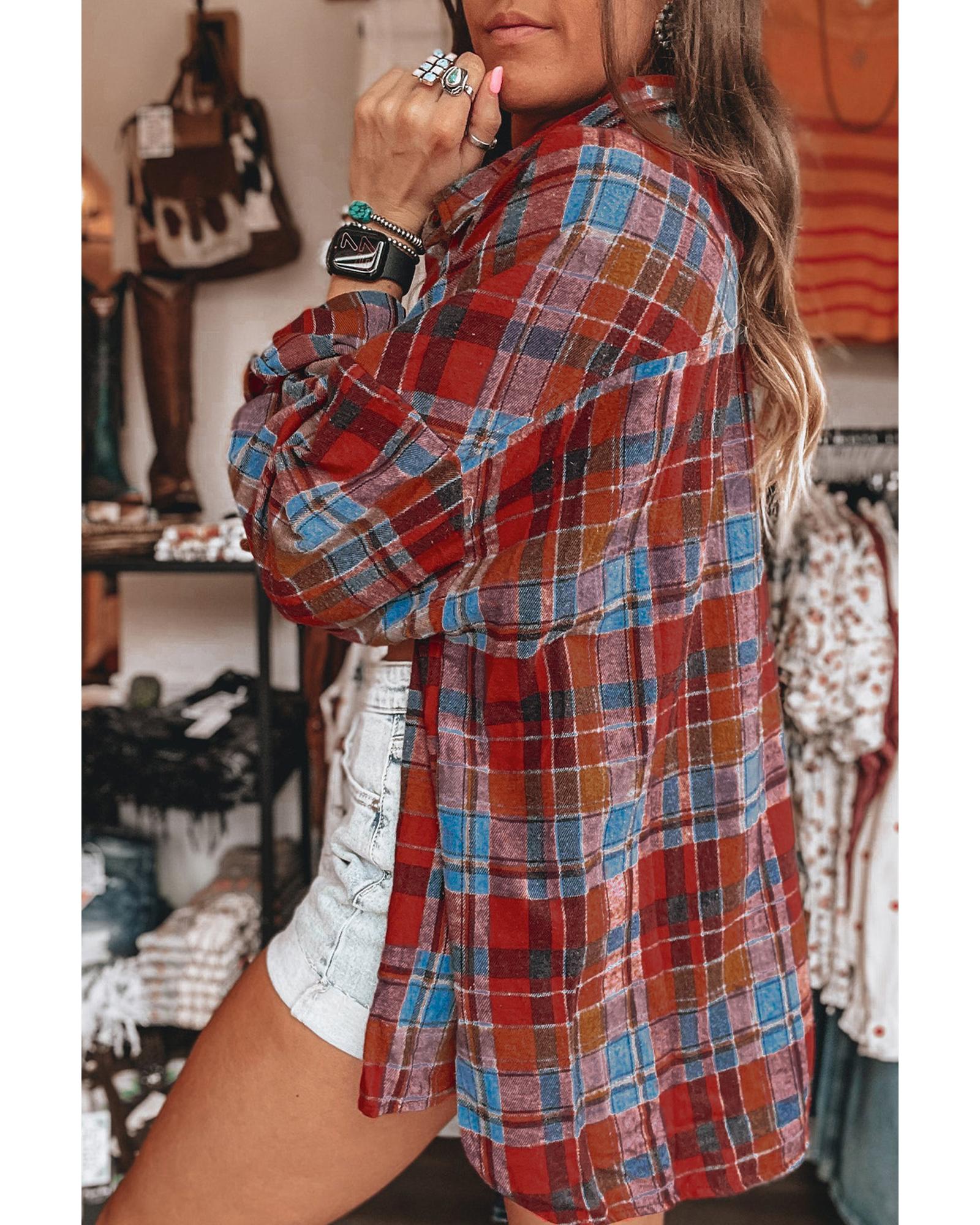 Red Plaid Print Loose Vintage Shirt - 2XL