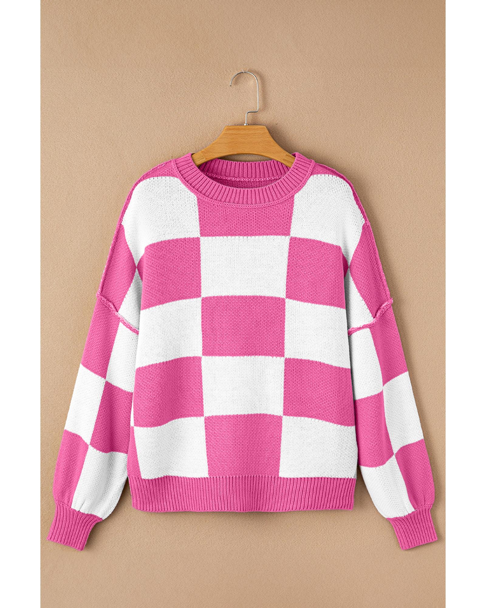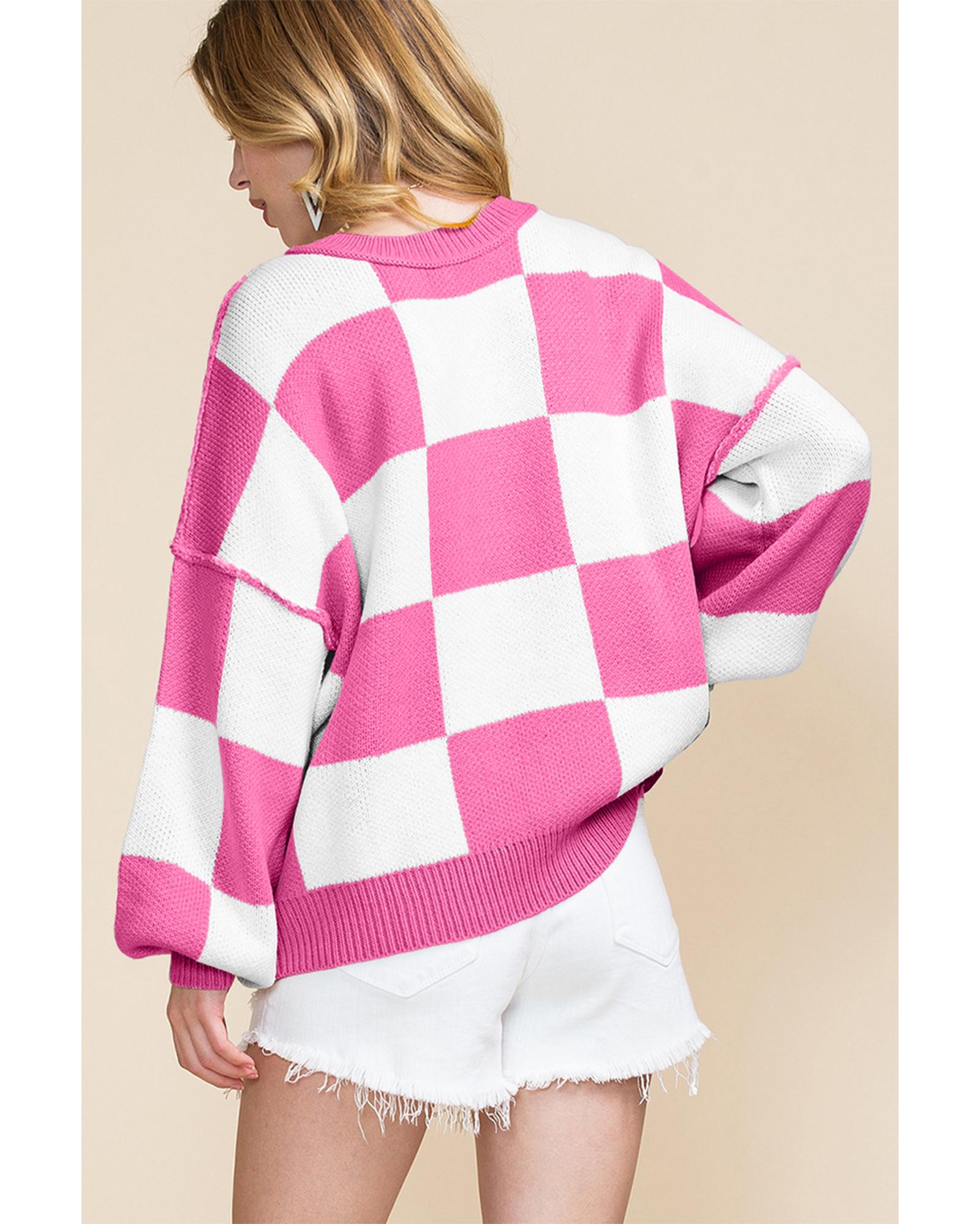 Rose Checkered Bishop Sleeve Sweater - L