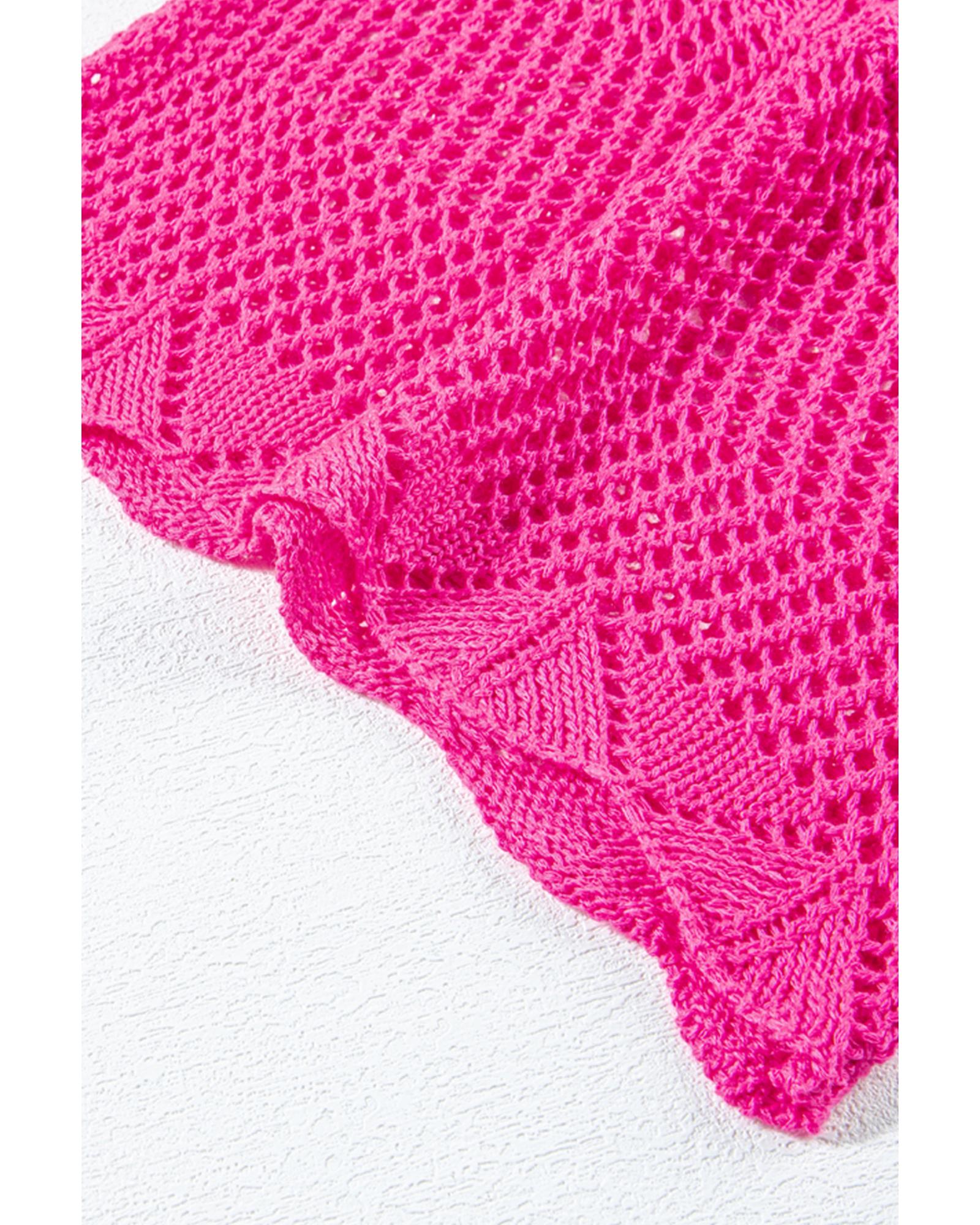 Rose Red Pointelle Knit Scallop Edge Short Sleeve Top - L