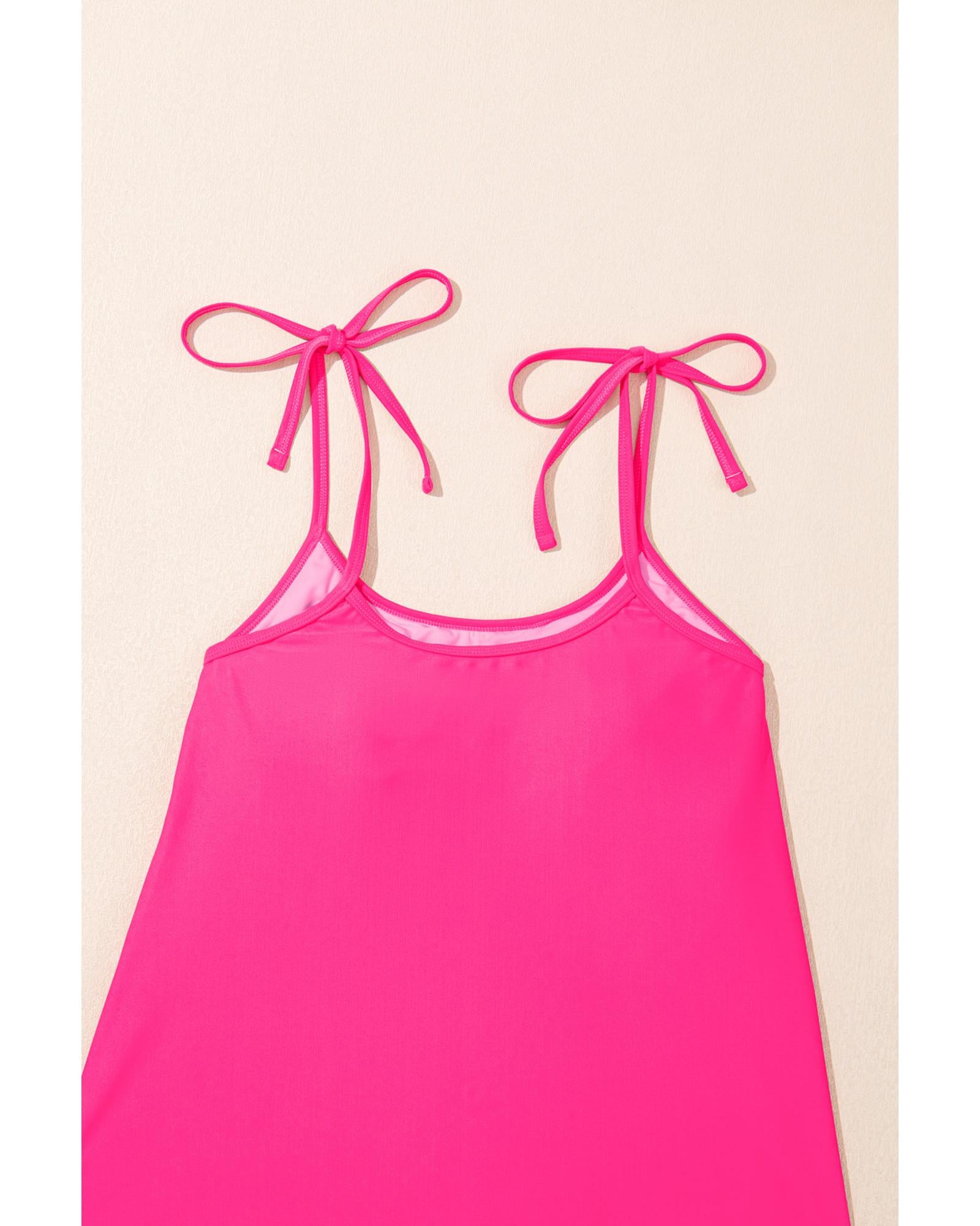 Rose Red Tie Shoulder Floral Print Cute Tankini Set - S