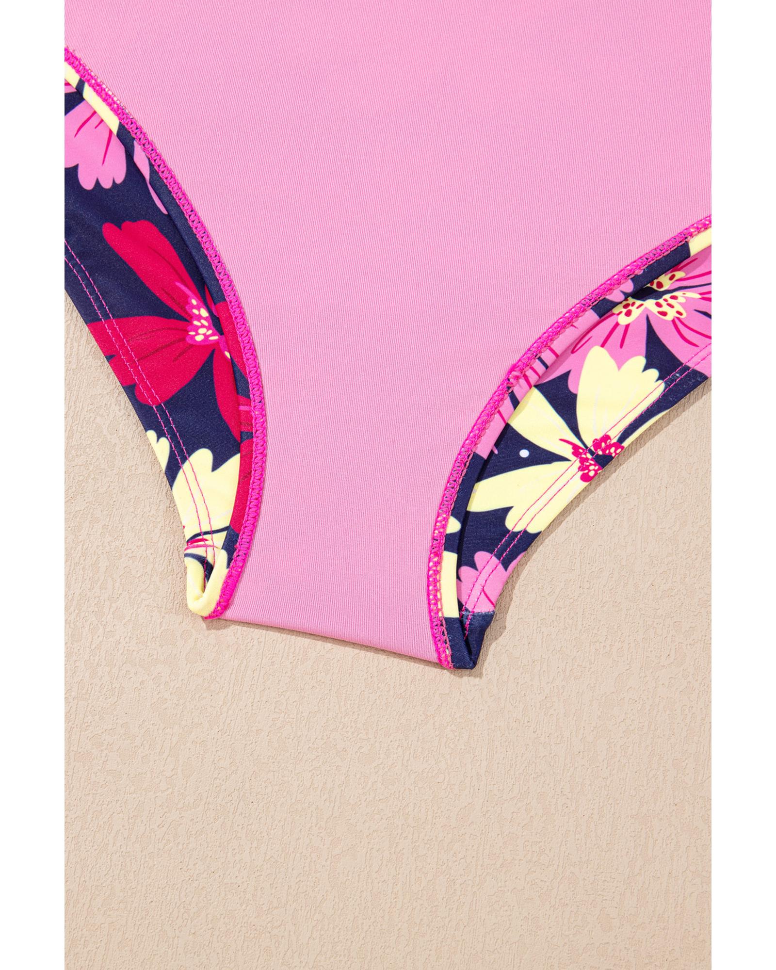 Rose Red Tie Shoulder Floral Print Cute Tankini Set - XL