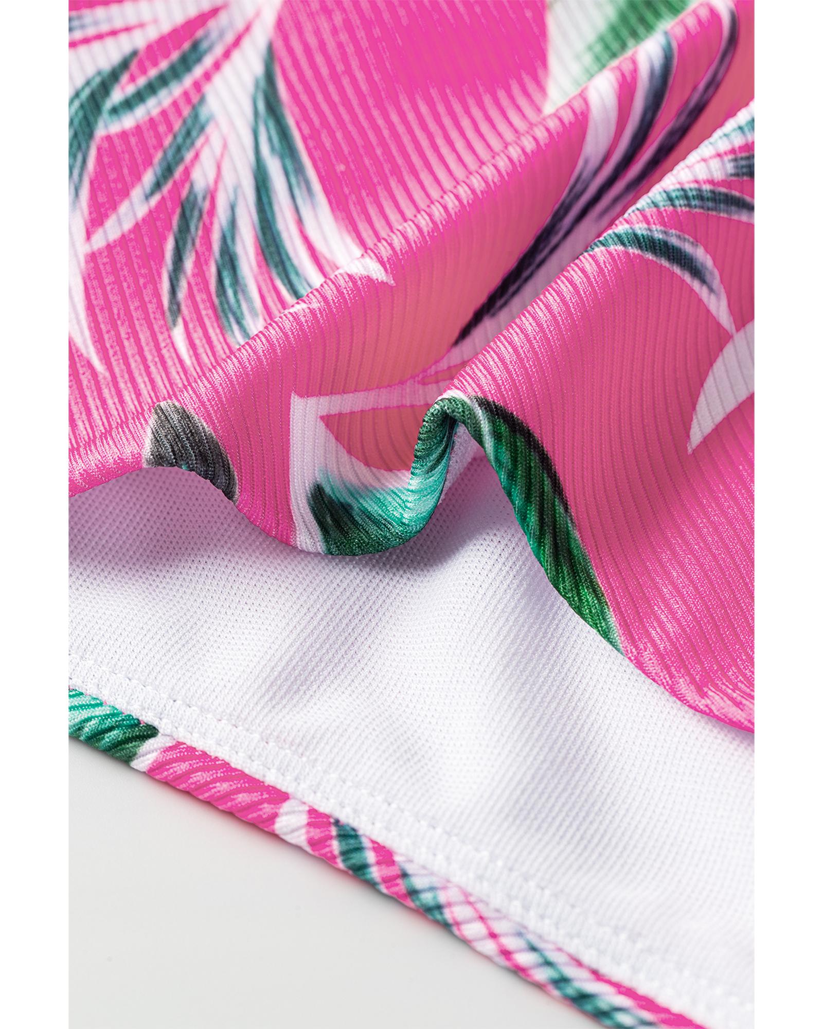 Rose Tropical Print Textured Bikini Bottoms - S