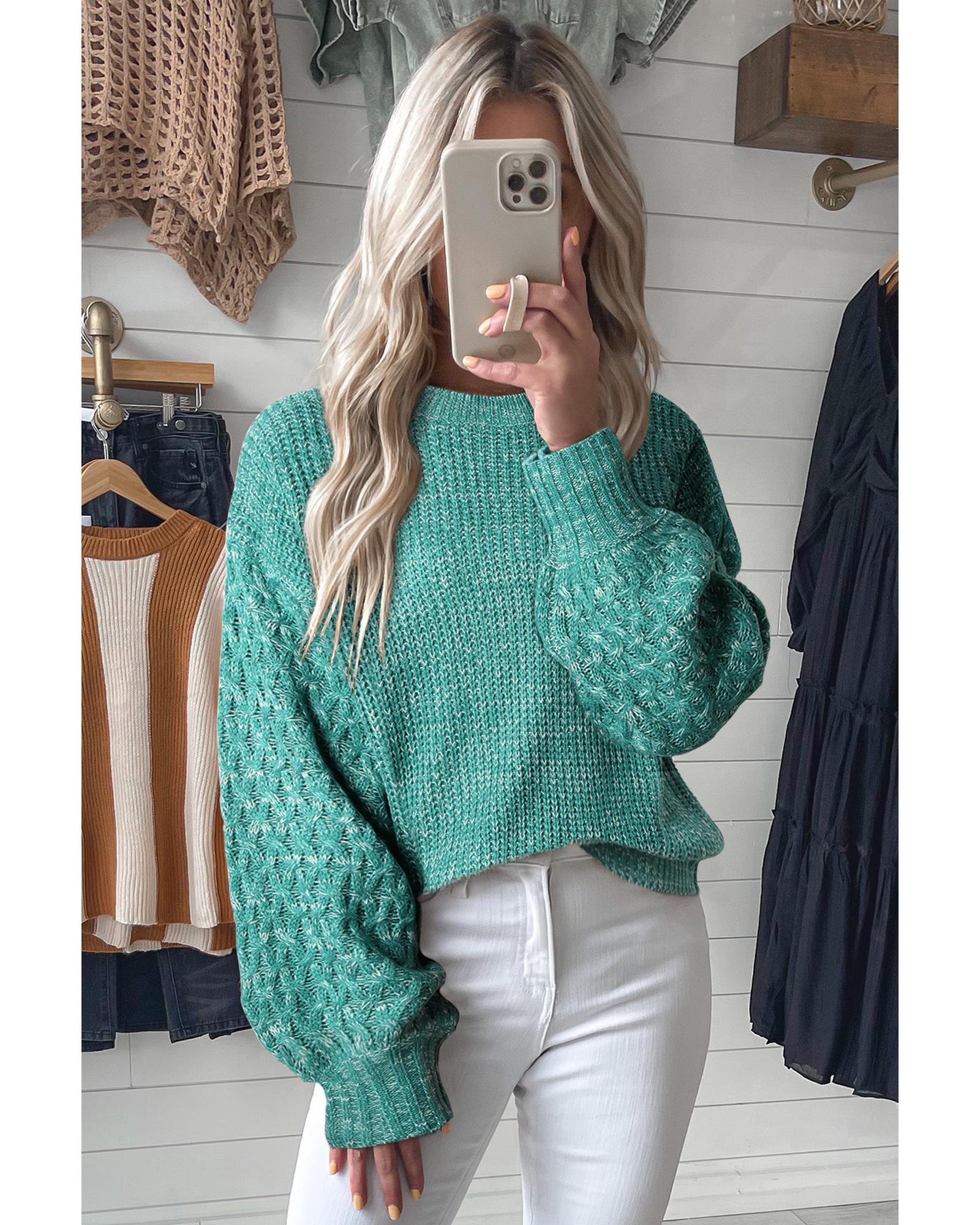 Sea Green Cable Knit Sleeve Drop Shoulder Sweater - XL