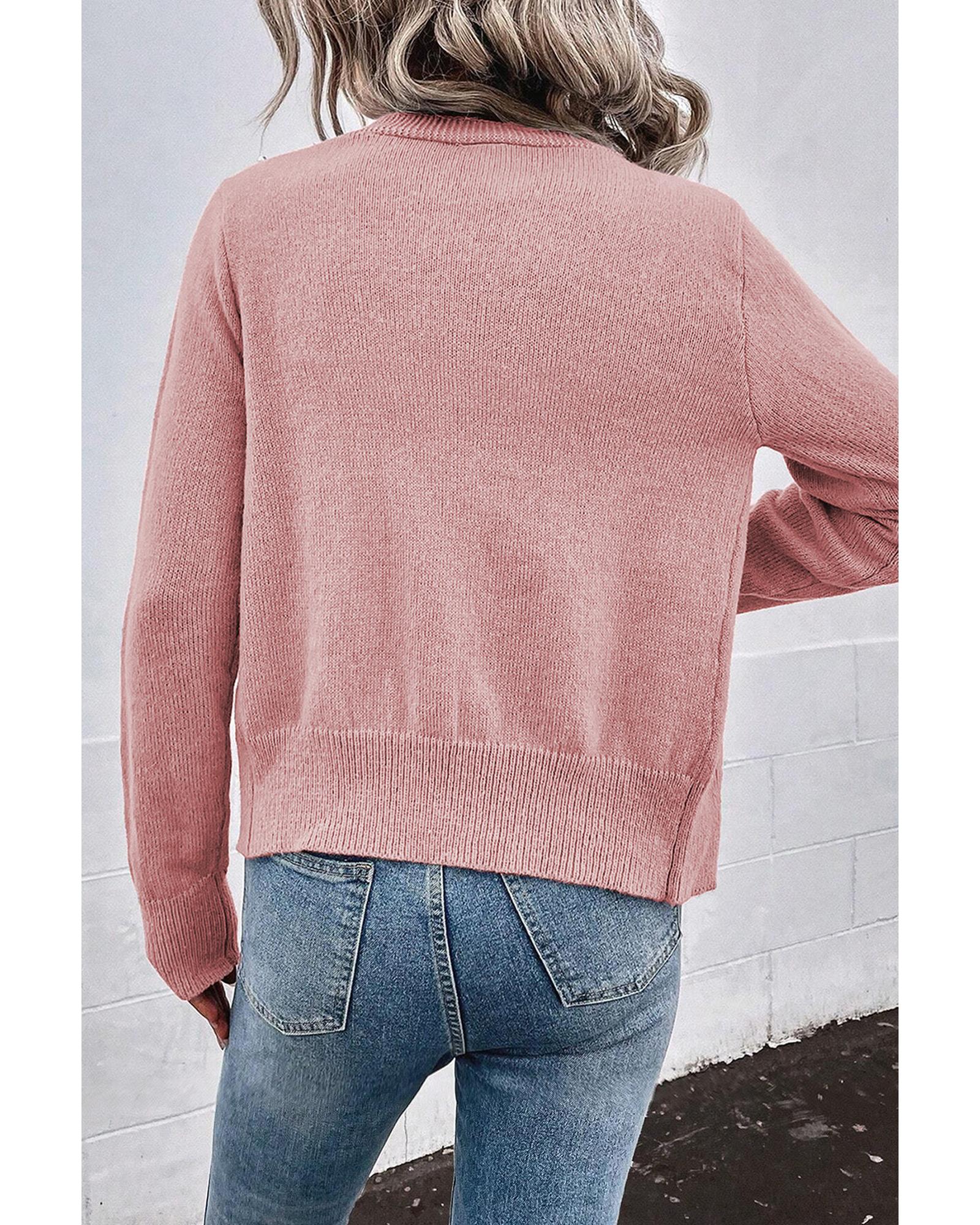 Sepia Rose Textured Knit Pearl Beaded Button Up Cardigan - XL