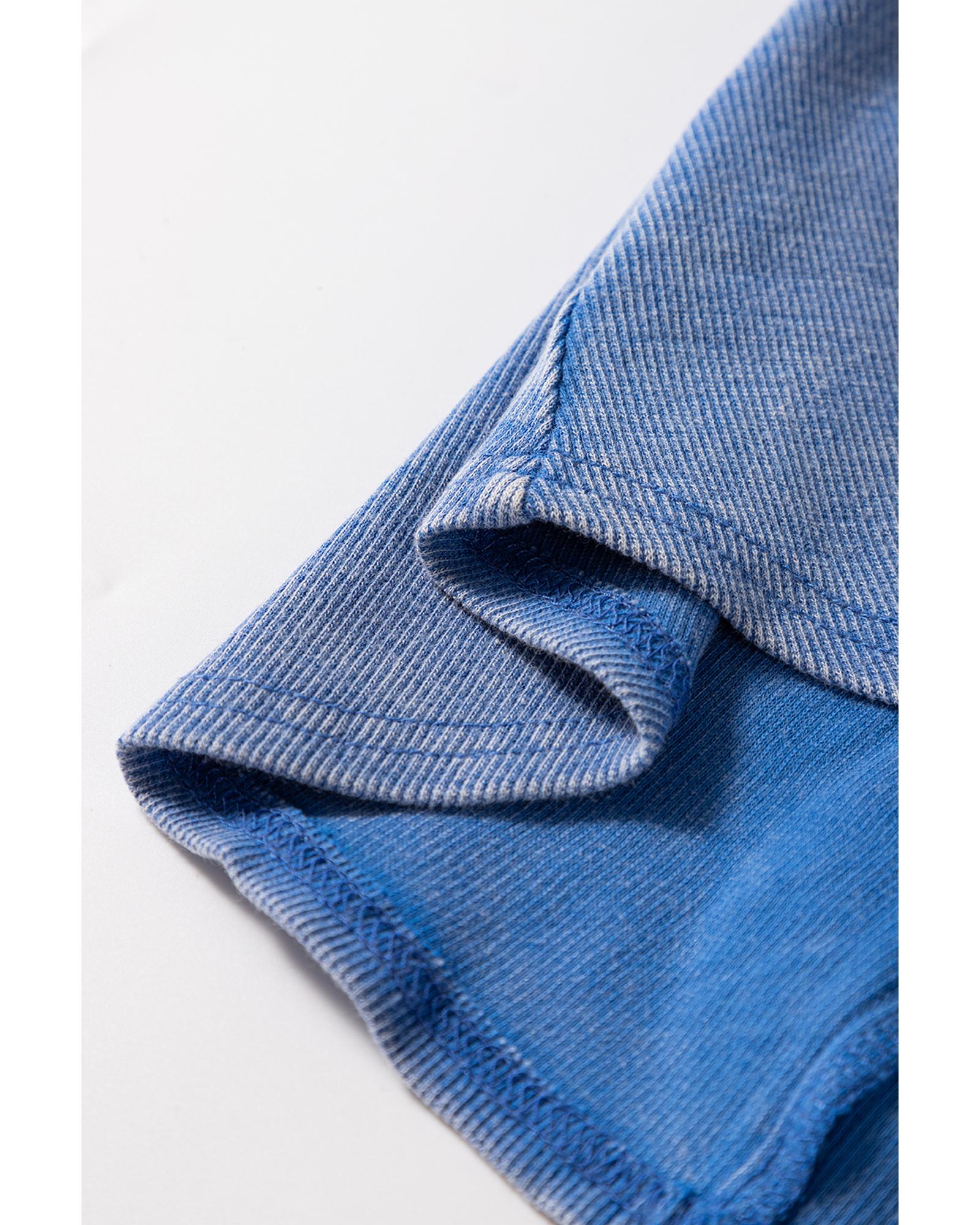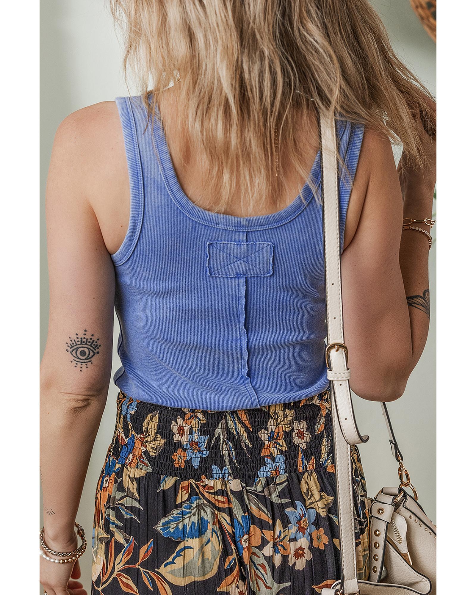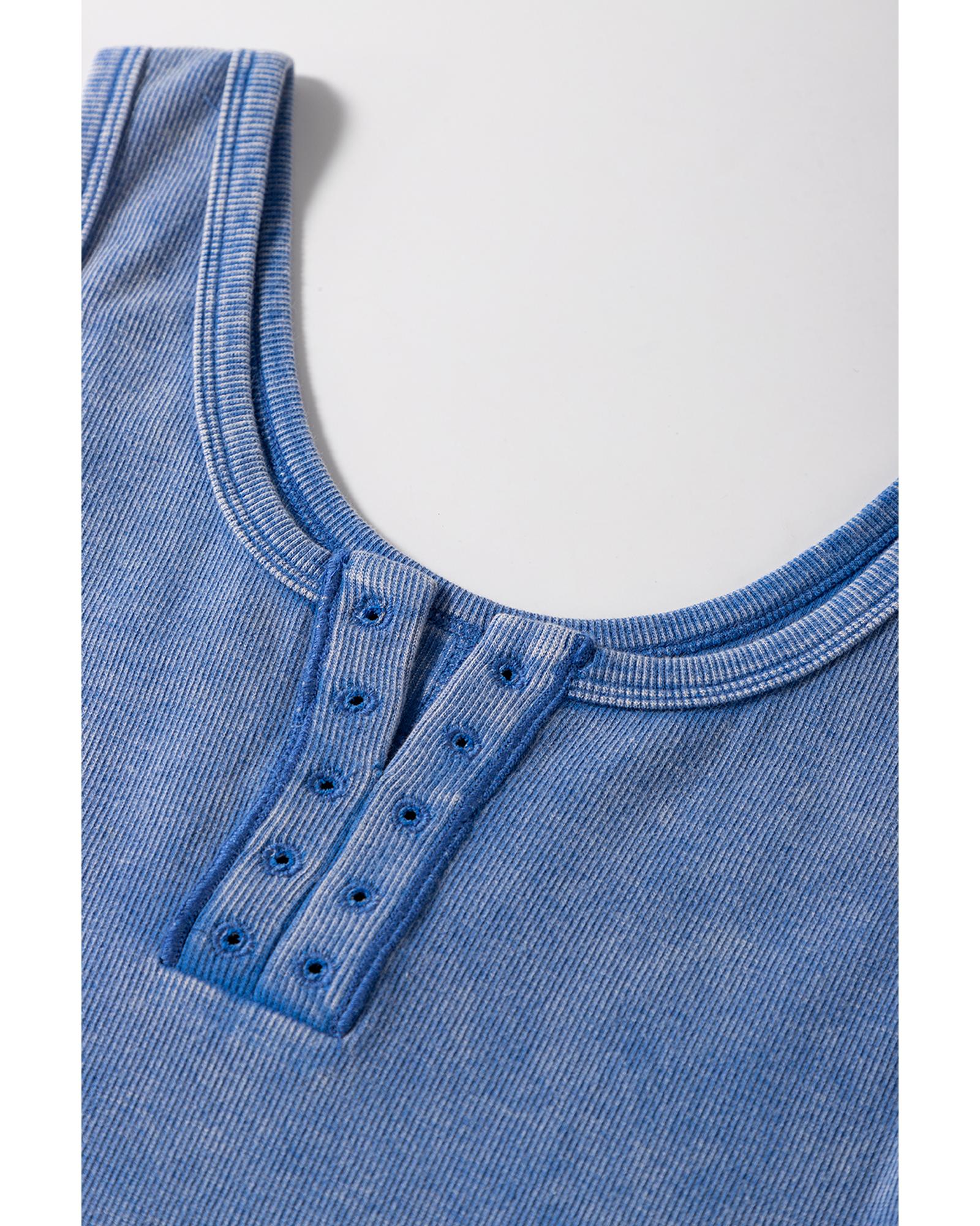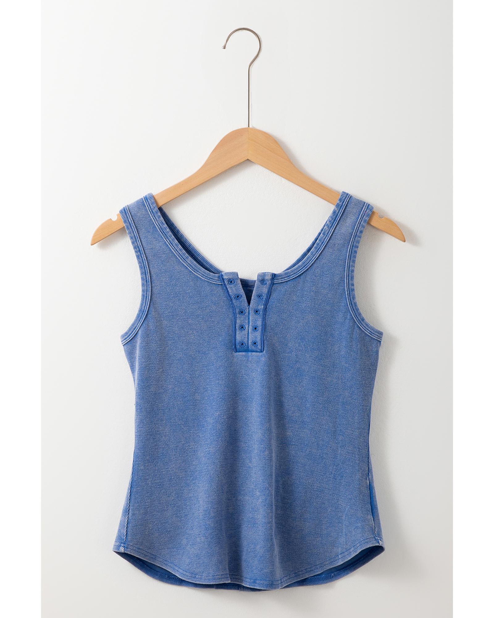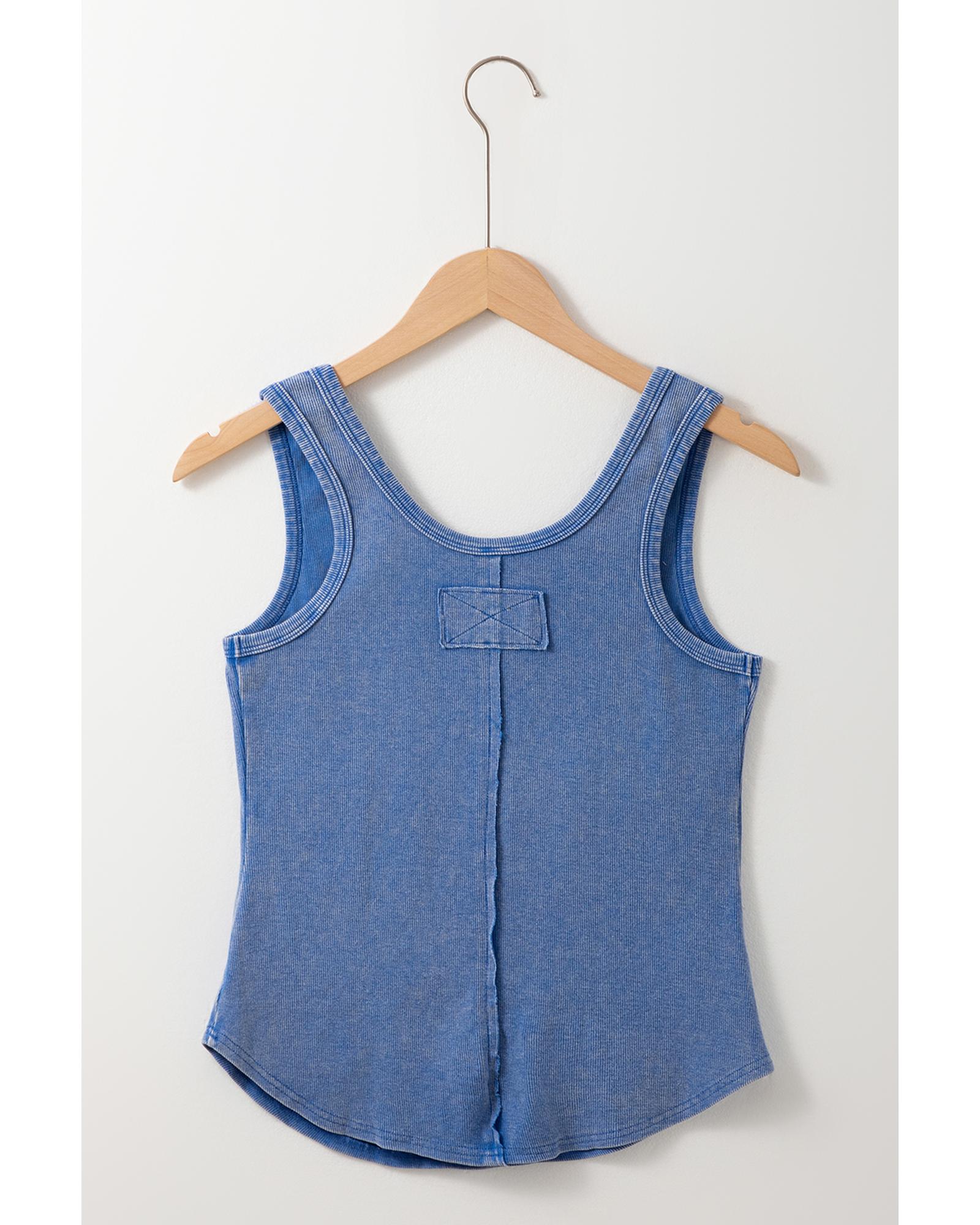 Sky Blue Mineral Wash Ribbed Notch Neck Tank Top - S