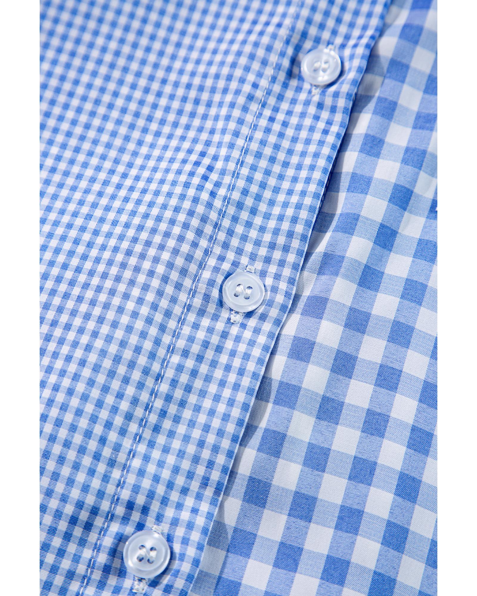 Sky Blue Stripe Plaid Patchwork Button up Long Sleeve Shirt - M