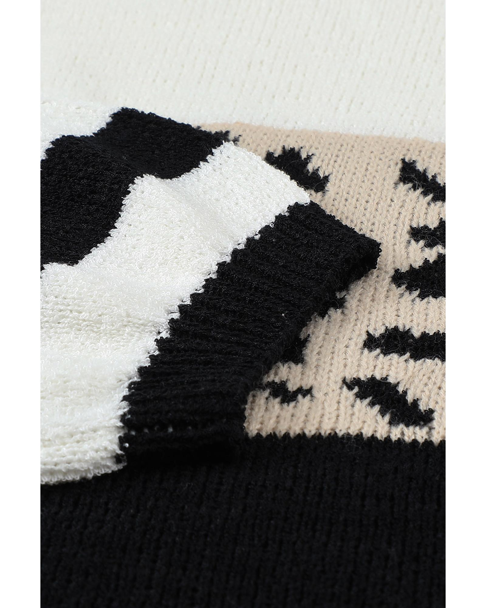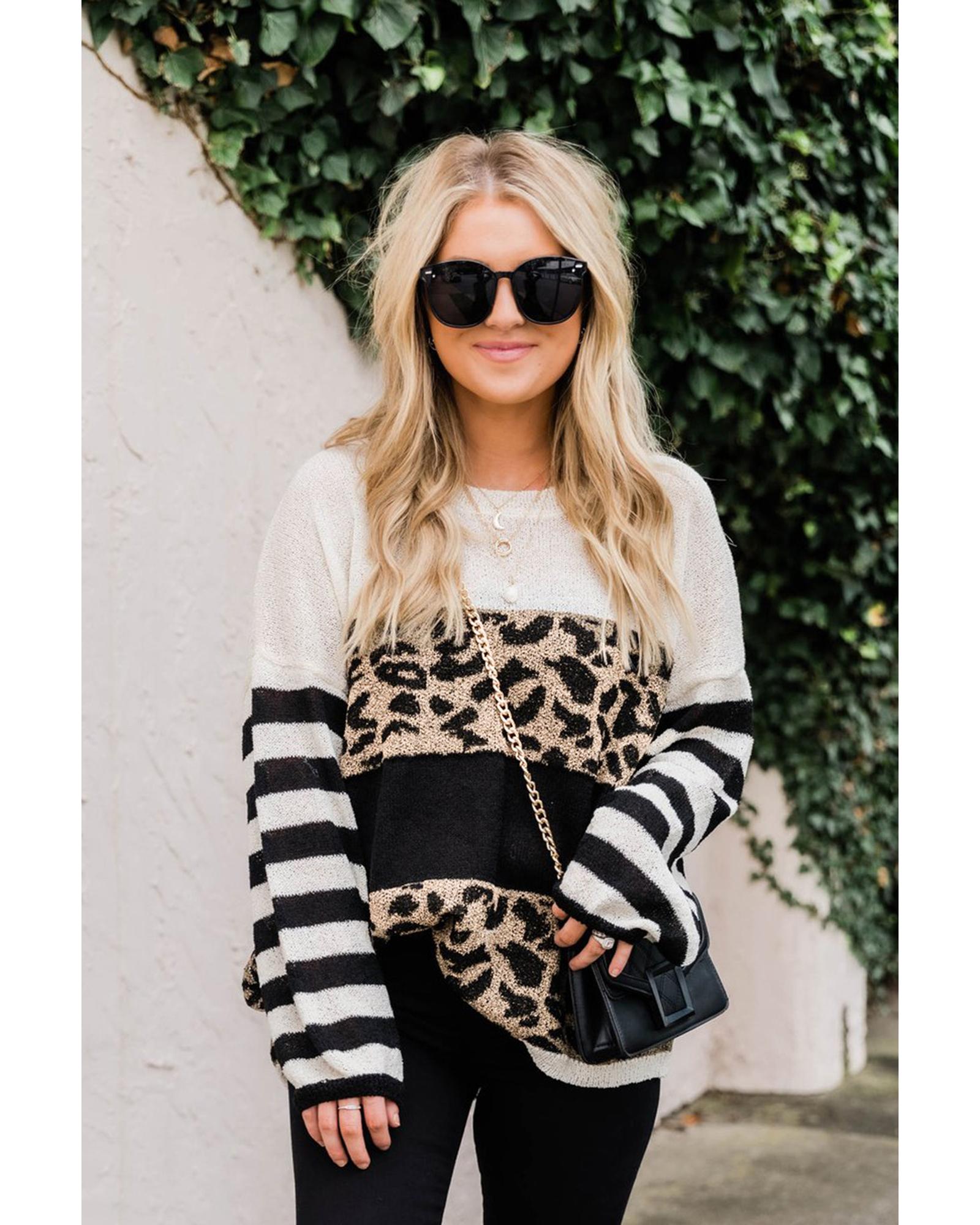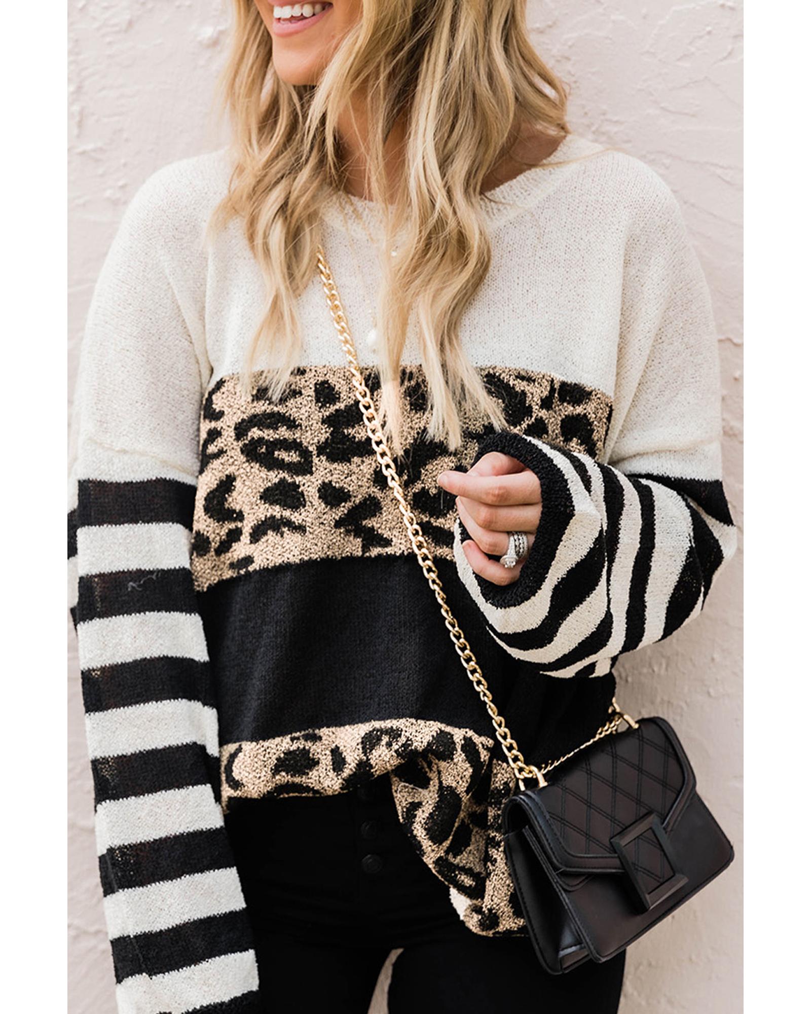Slouchy Drop-shoulder Leopard Striped Colorblock Sweater - XL