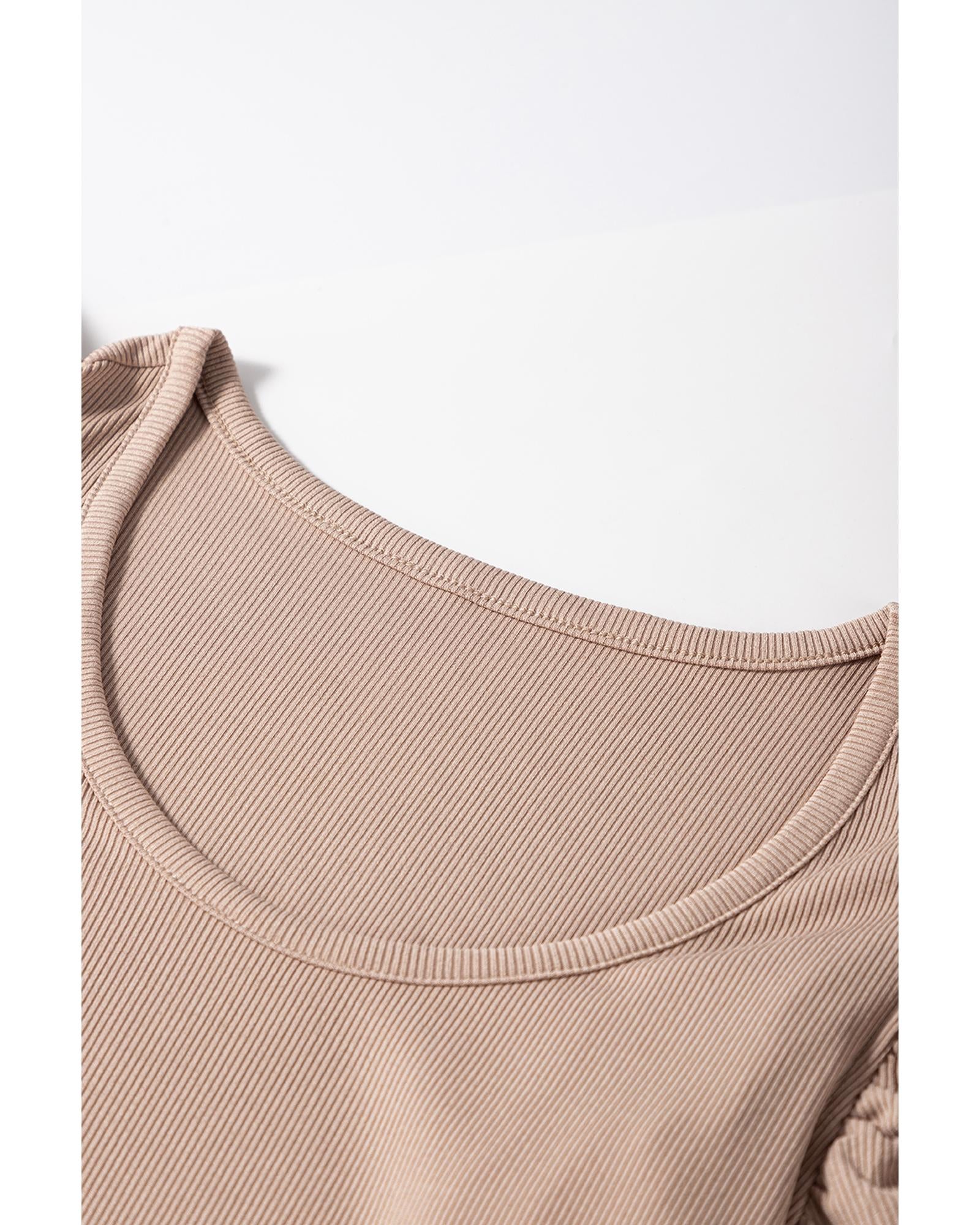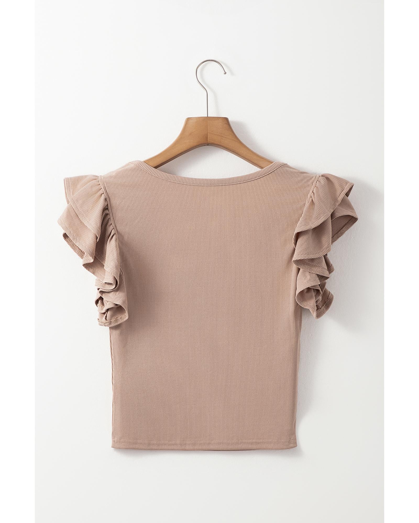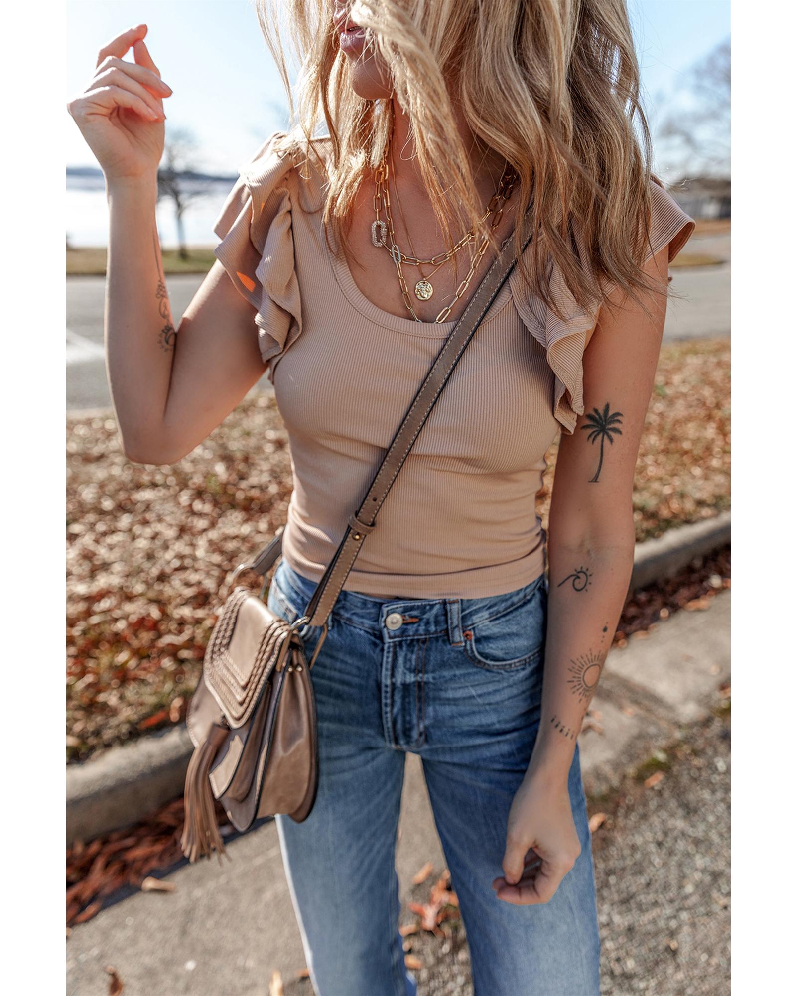 Smoke Gray Ribbed Knit Ruffled Shoulder Slim Fit Tank Top - XL