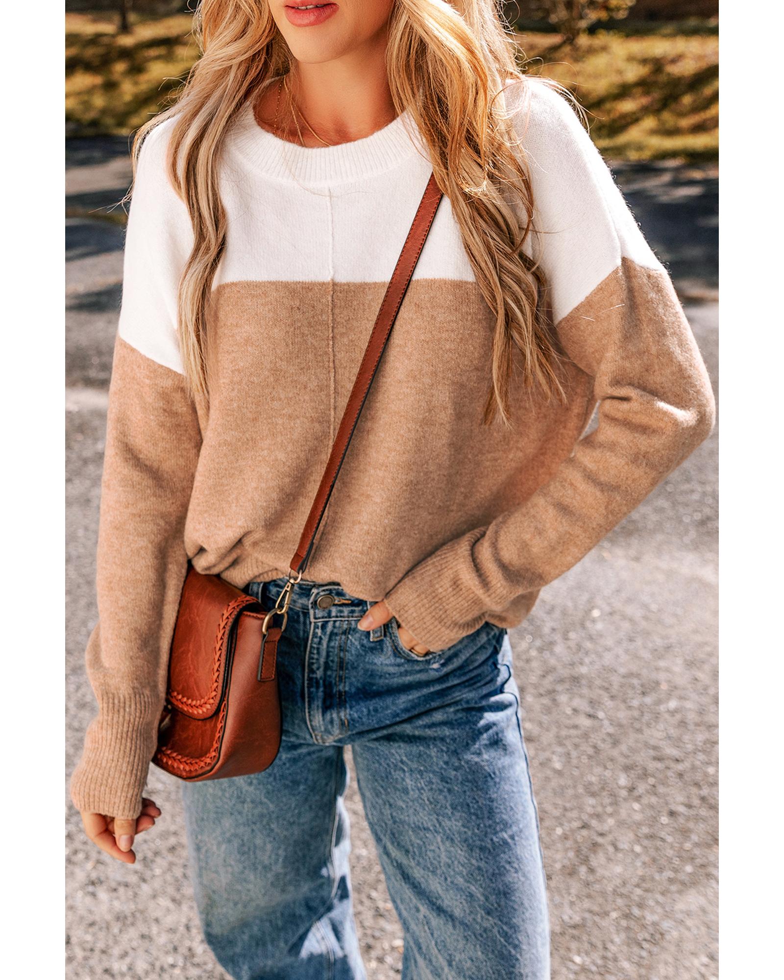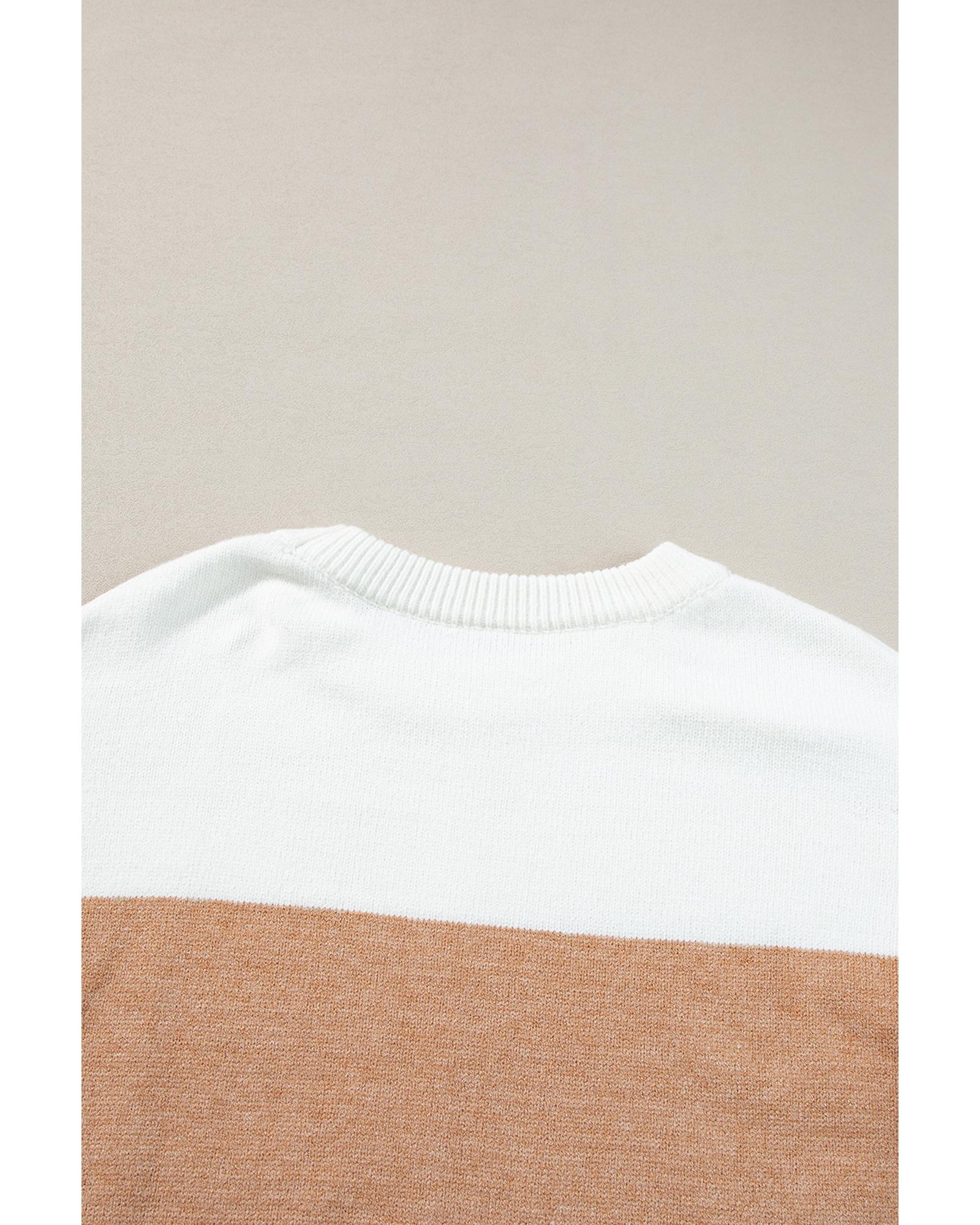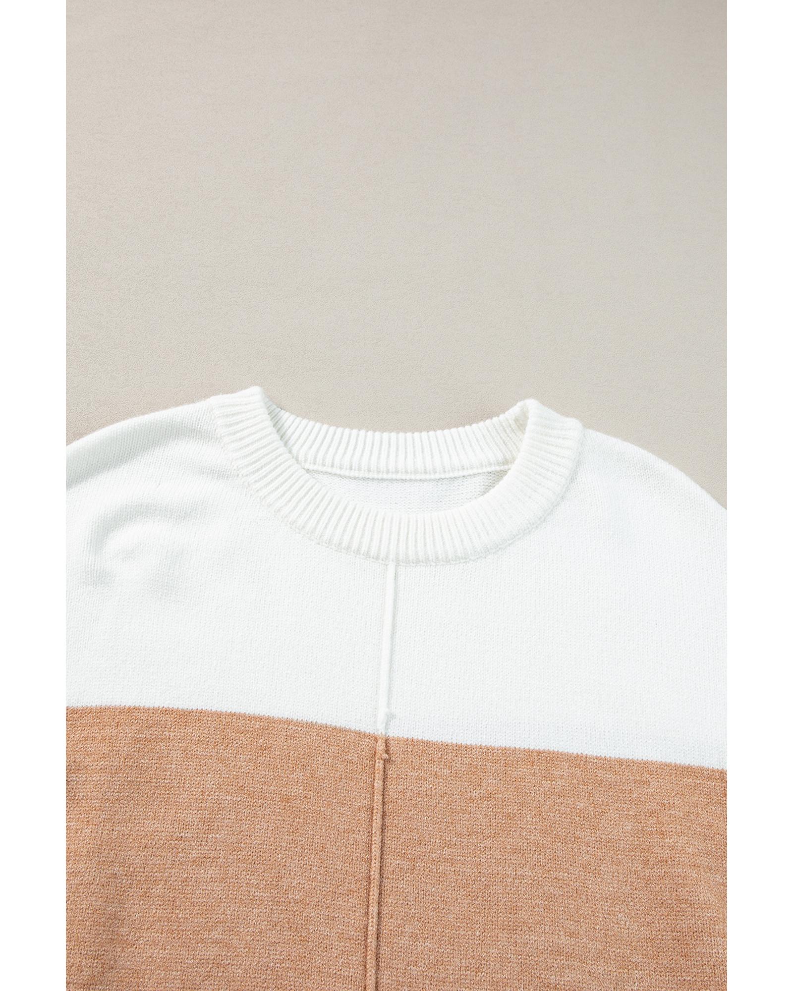 Straw Yellow Colorblock Ribbed Trim Round Neck Sweater - XL