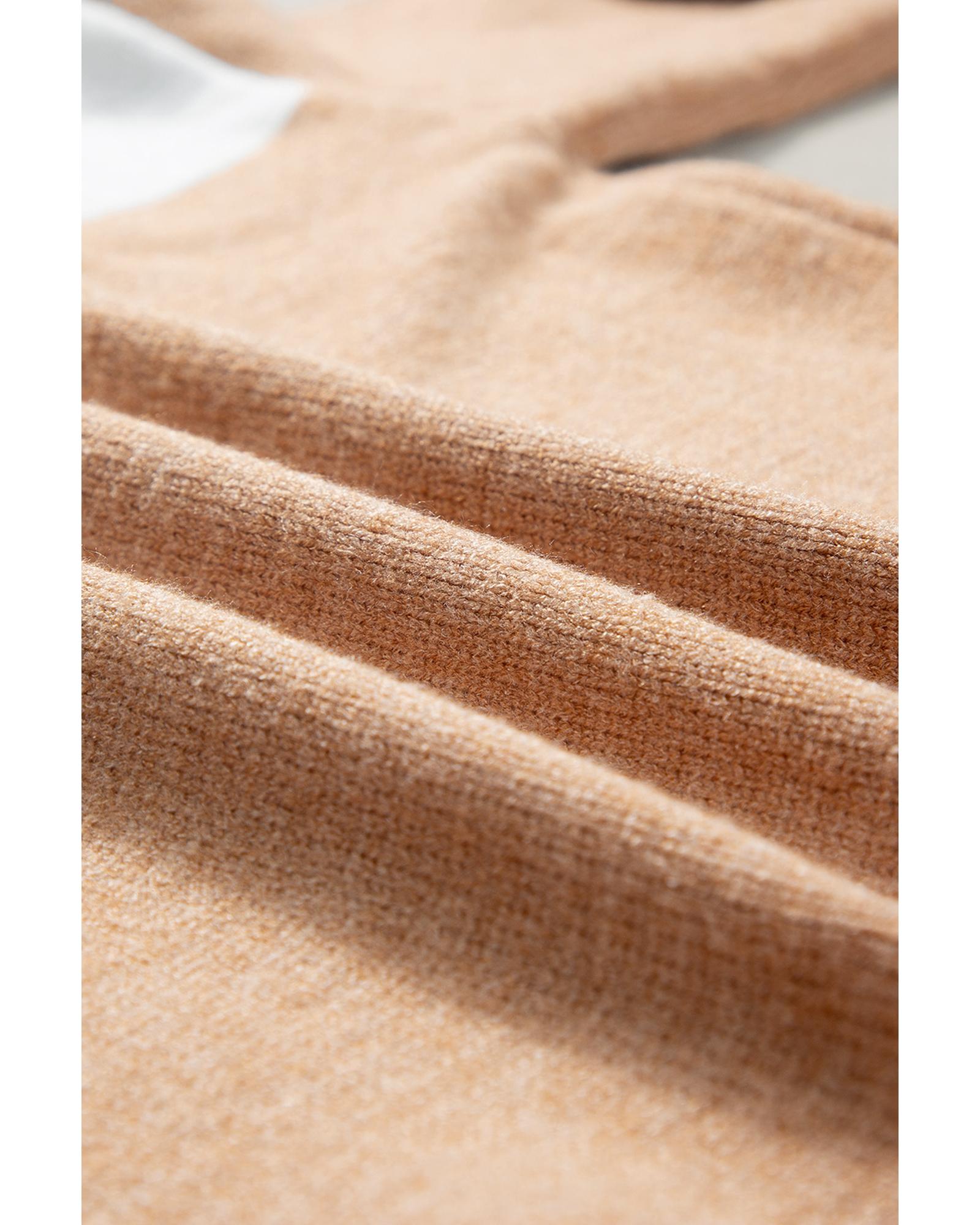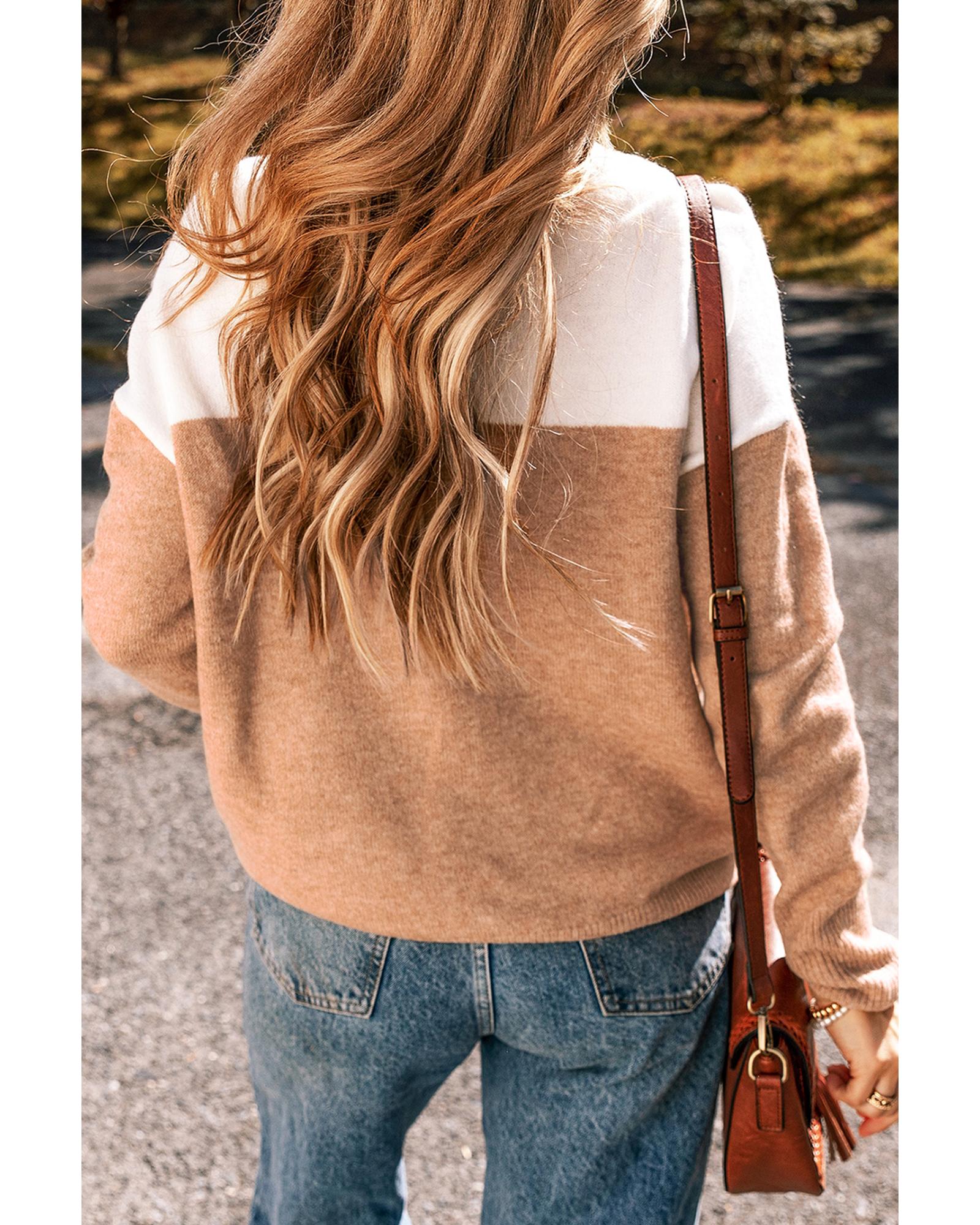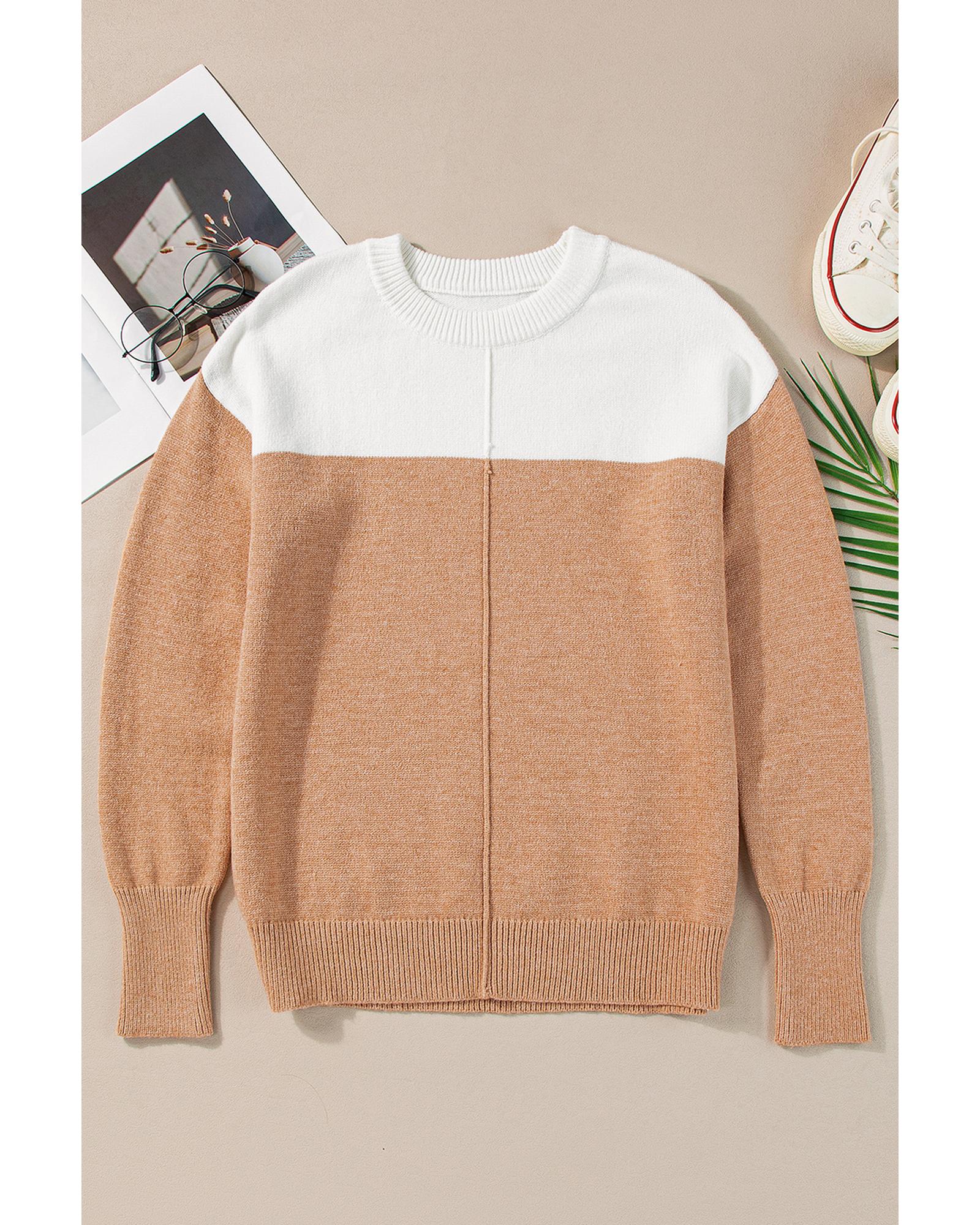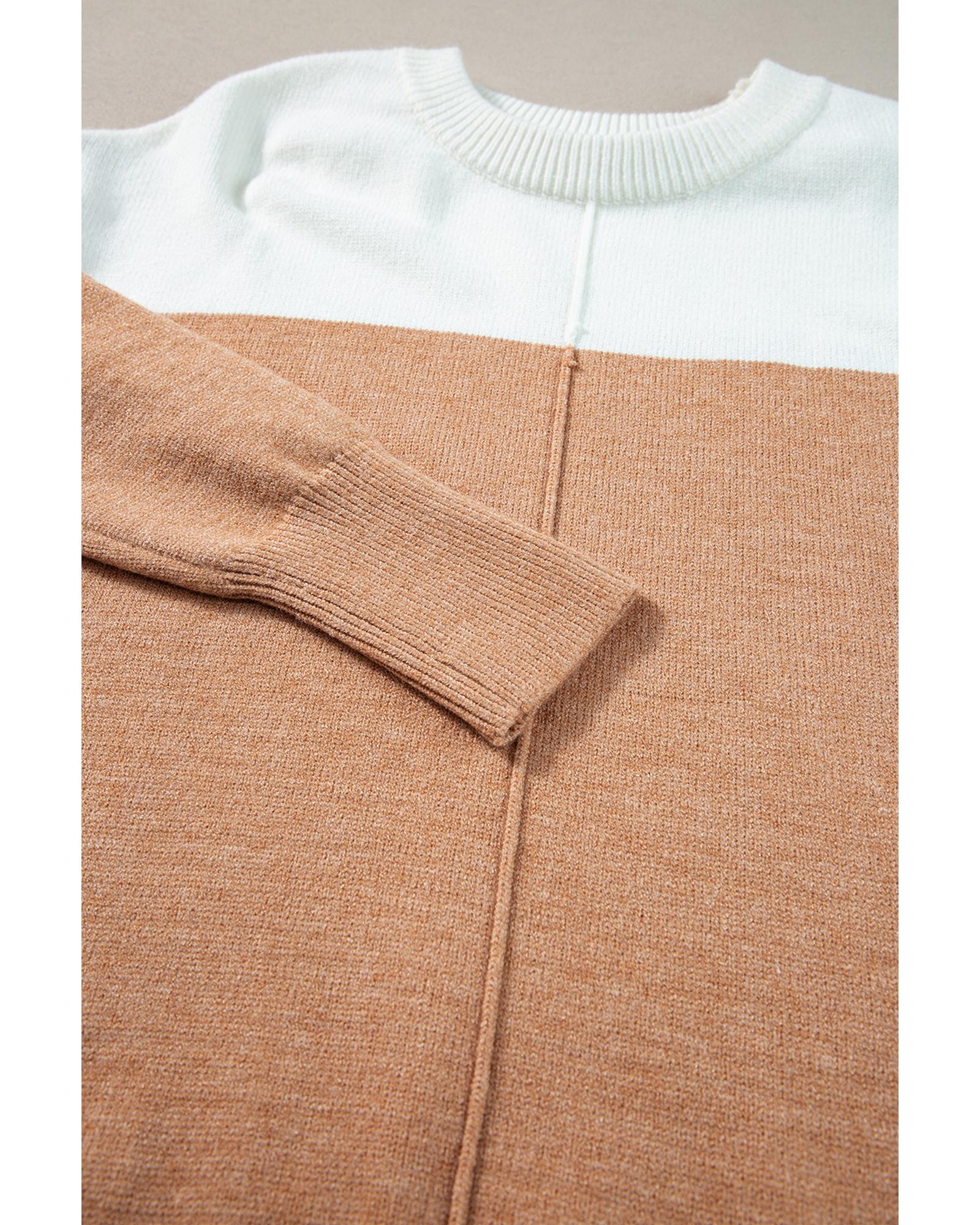 Straw Yellow Colorblock Ribbed Trim Round Neck Sweater - XL