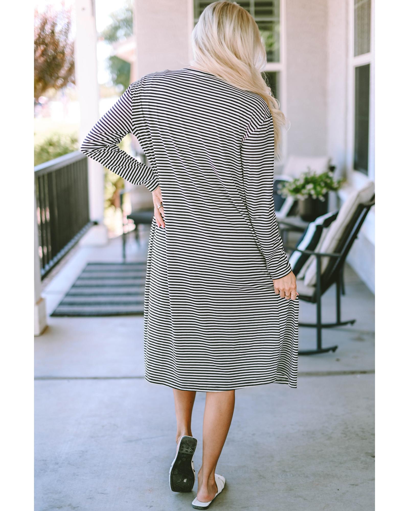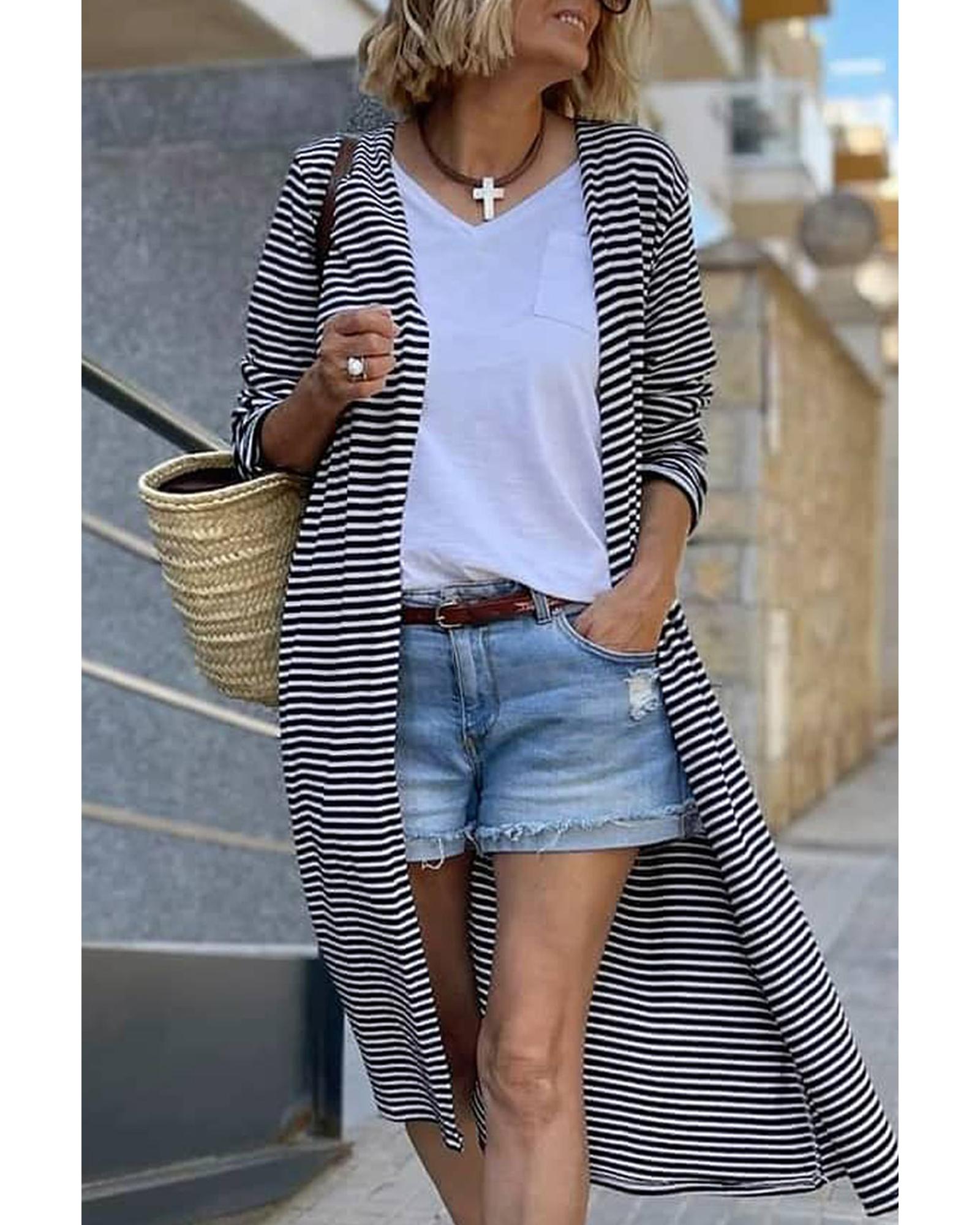 Stripe Open Front Long Cardigan - L