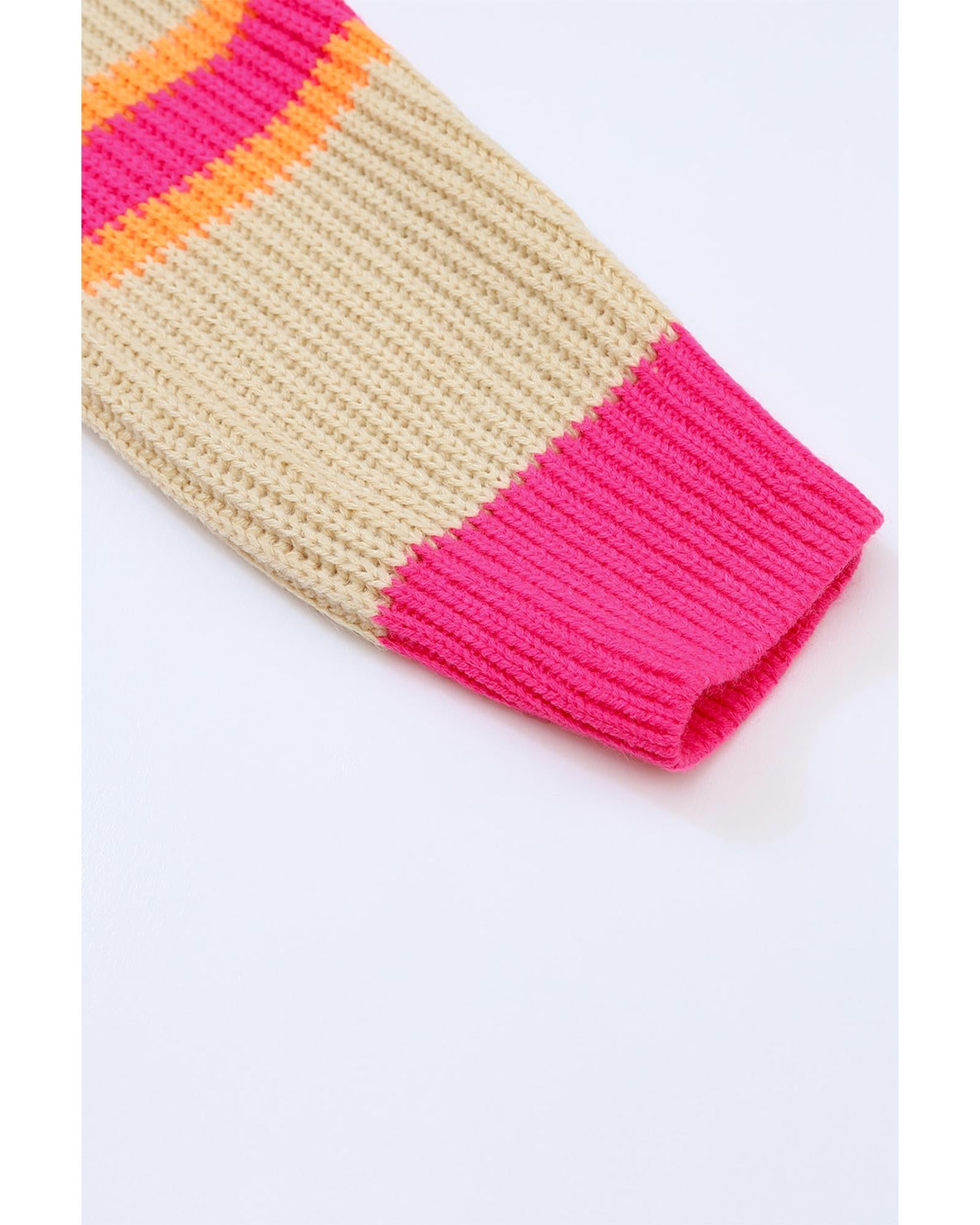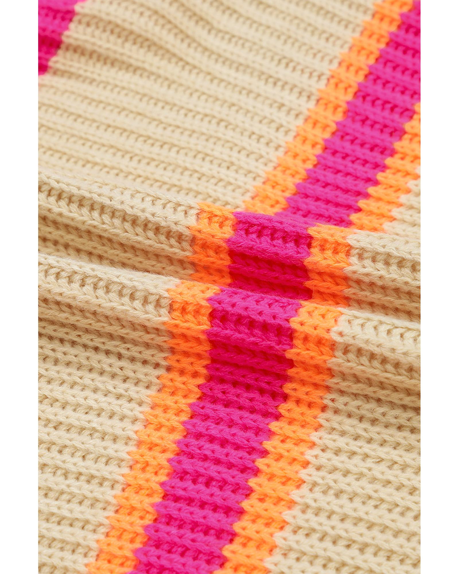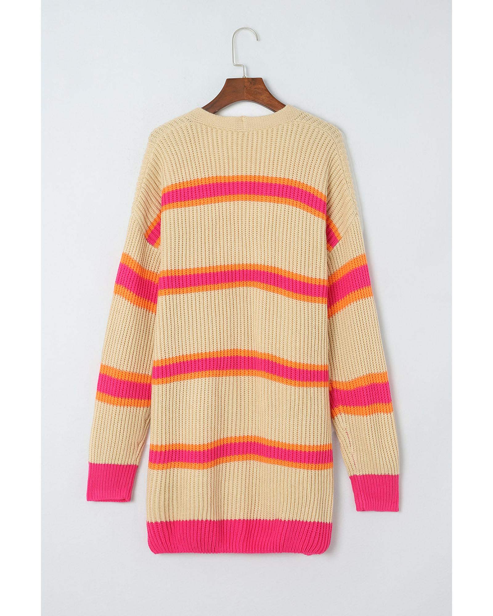 Stripe Printed Ribbed Long Knitted Cardigan - L