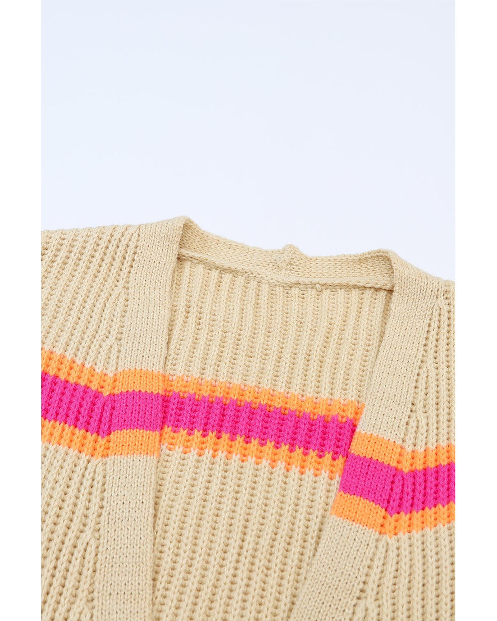 Stripe Printed Ribbed Long Knitted Cardigan - M