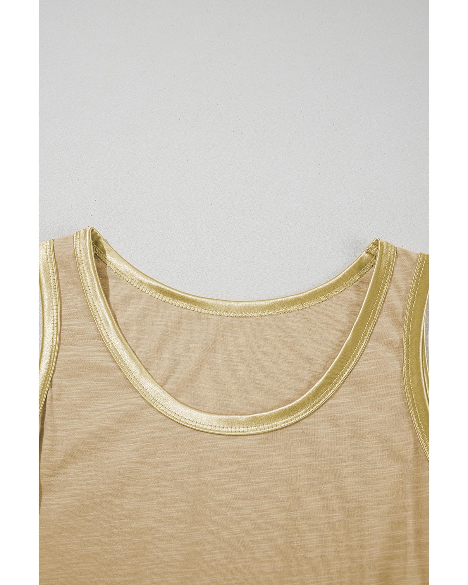 Tan Metallic Sheen Edge Scoop Neck Tank Top - L