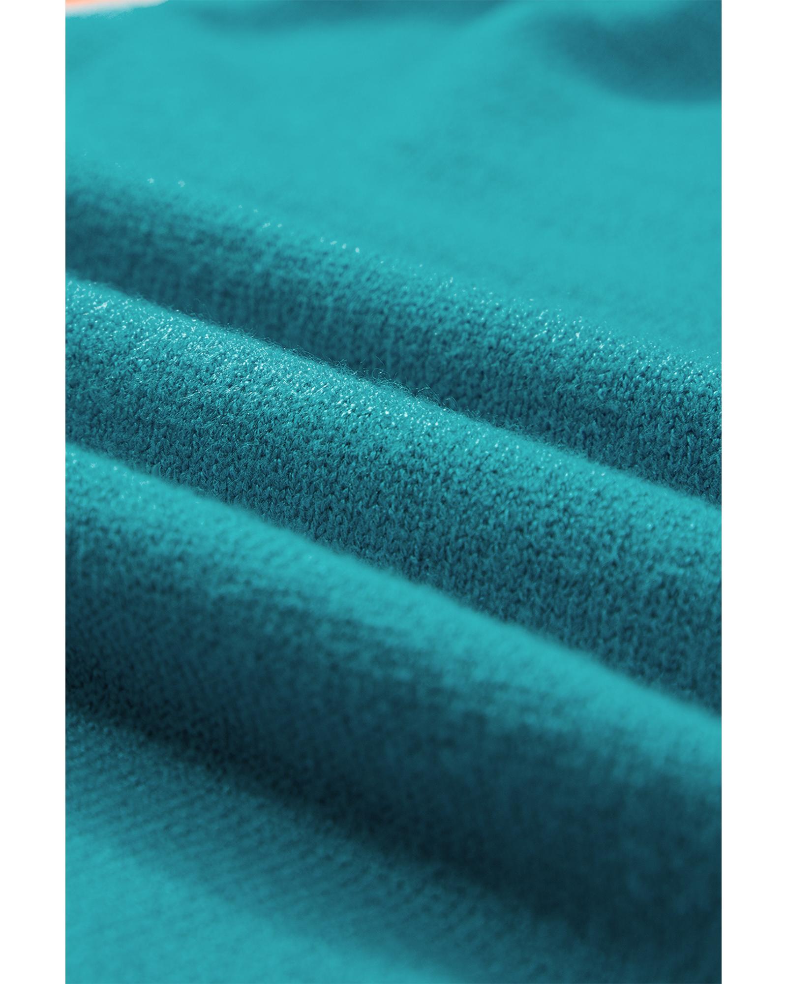 Turquoise Contrast Flutter Sleeves Knitted Sweater T Shirt - S