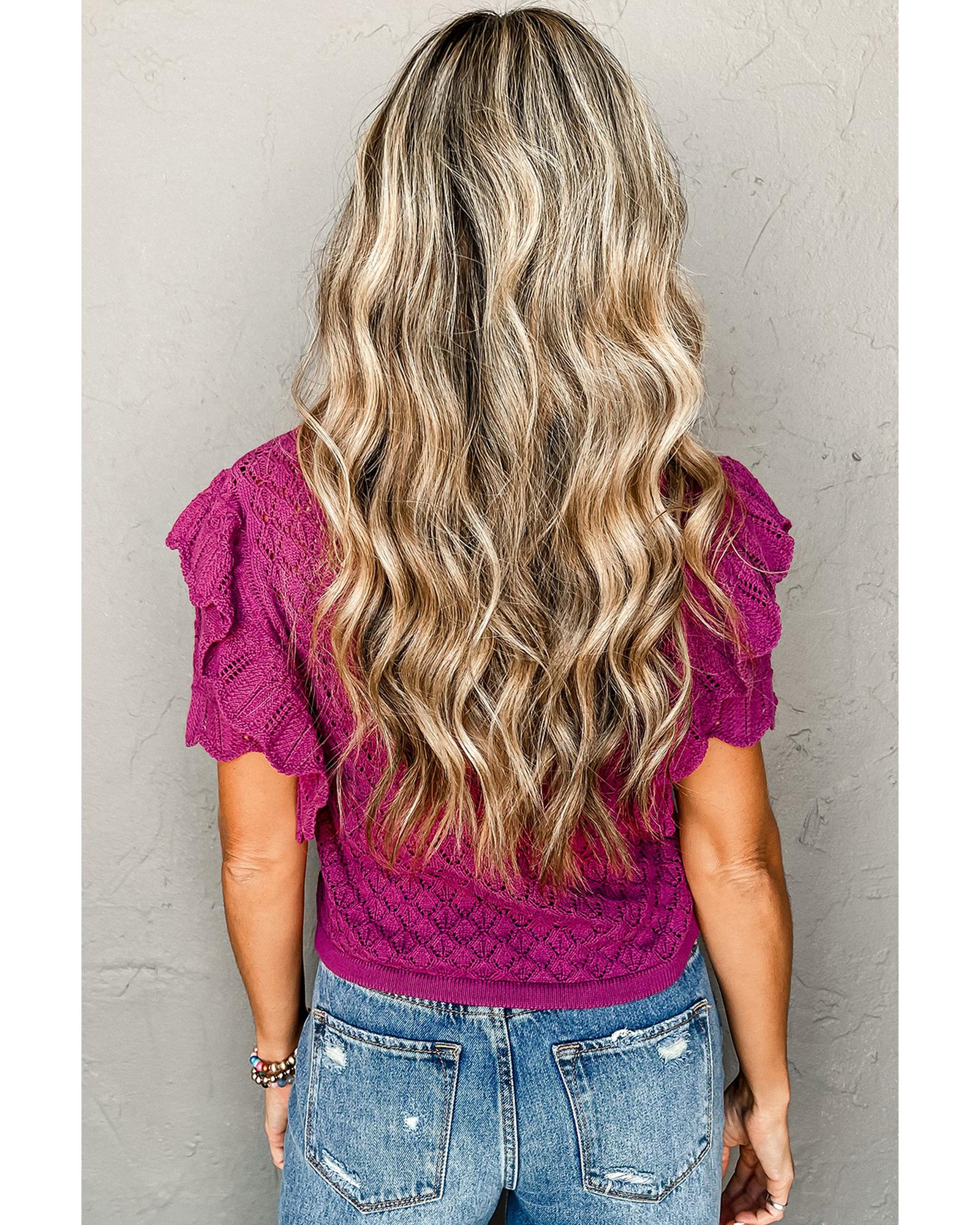 Violet Ruffled Short Sleeve Textured Knit Sweater - M