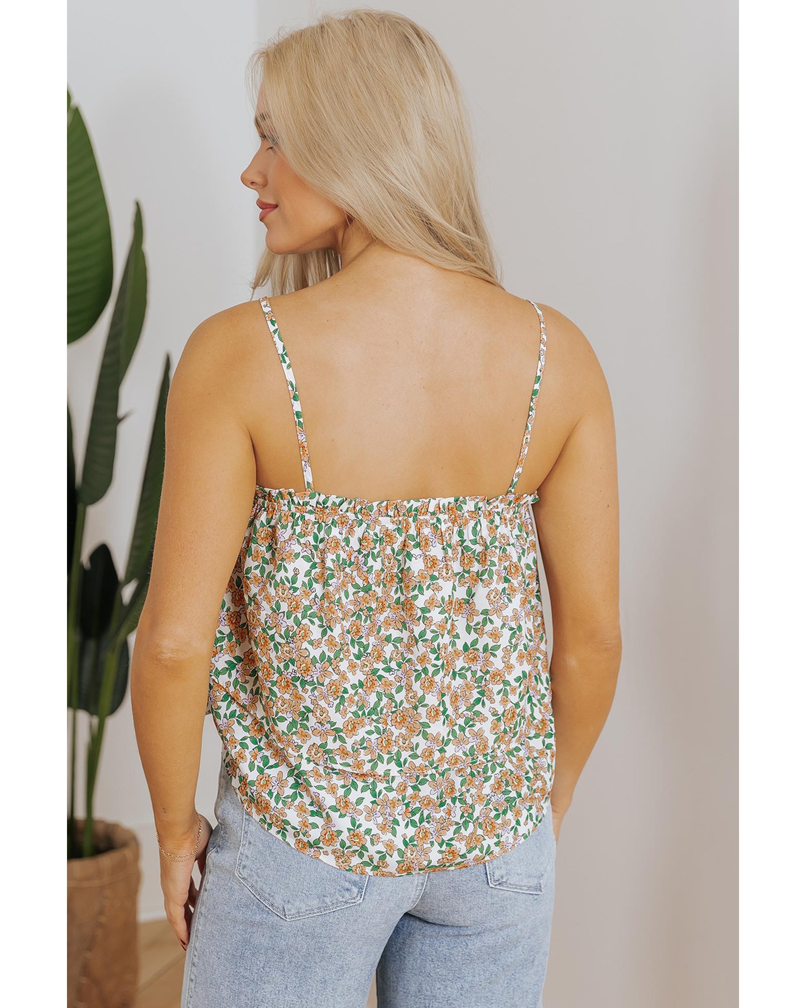 White Boho Floral Spaghetti Strap Ruffle Summer Tank Top - L
