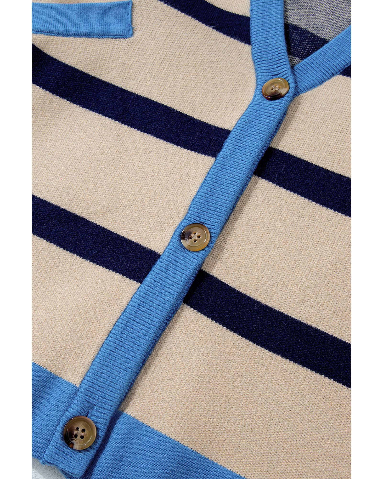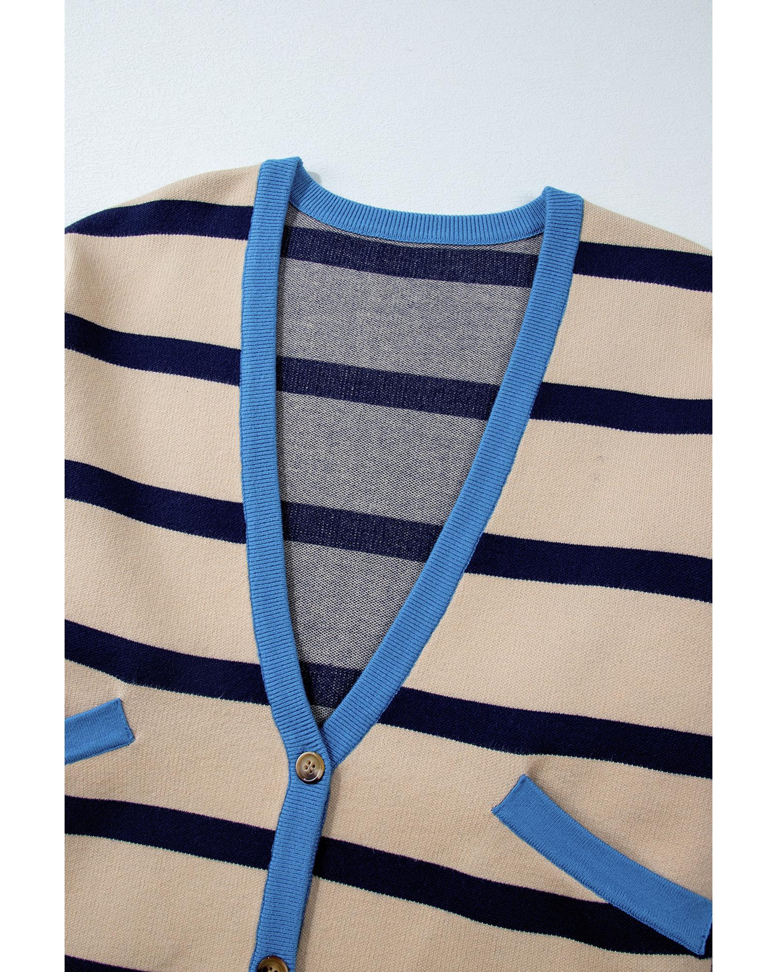 White Colorblock Drop Shoulder Buttoned Loose Cardigan - S