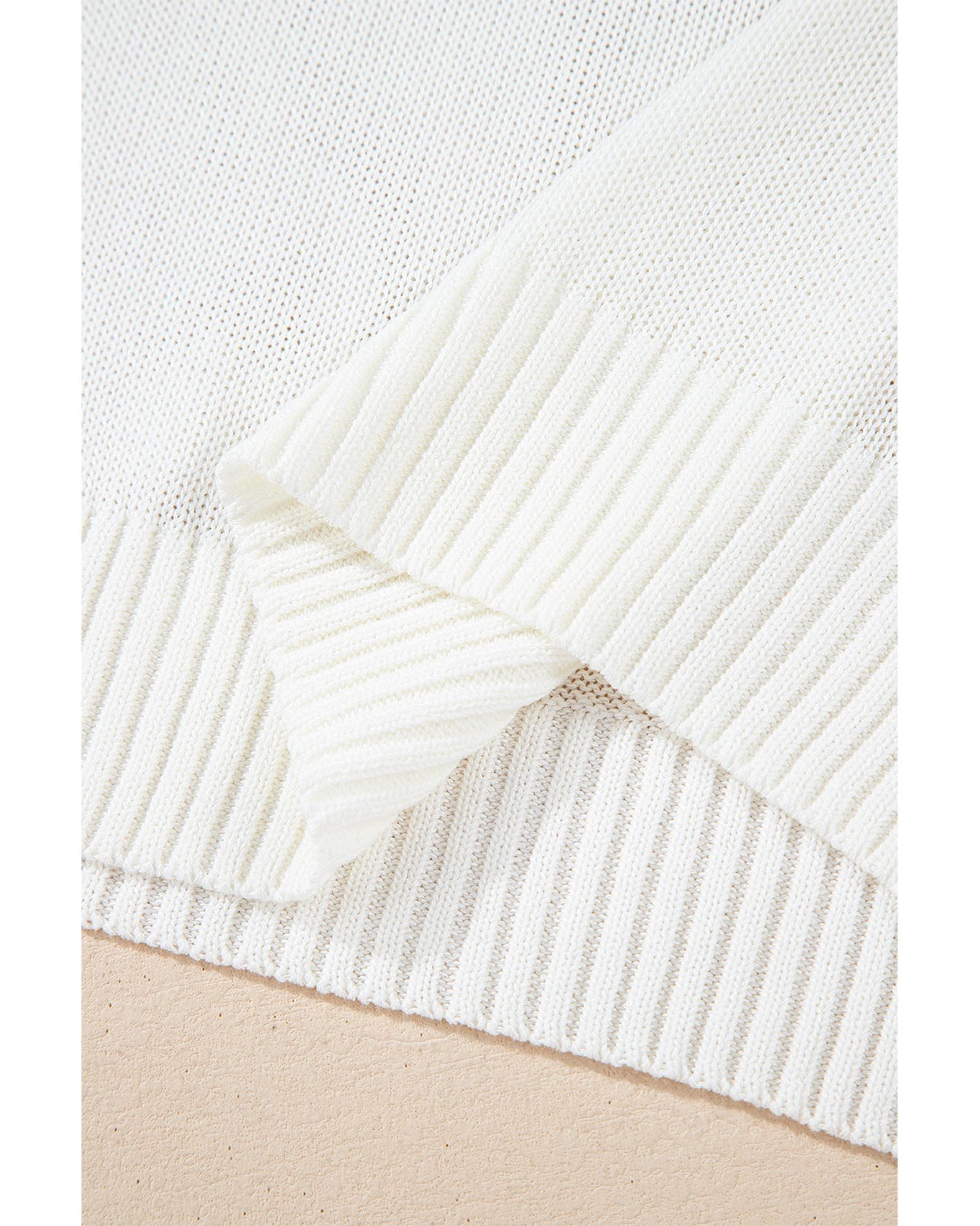 White Eyelet Knit Tied Back Short Sleeve Sweater - 2XL