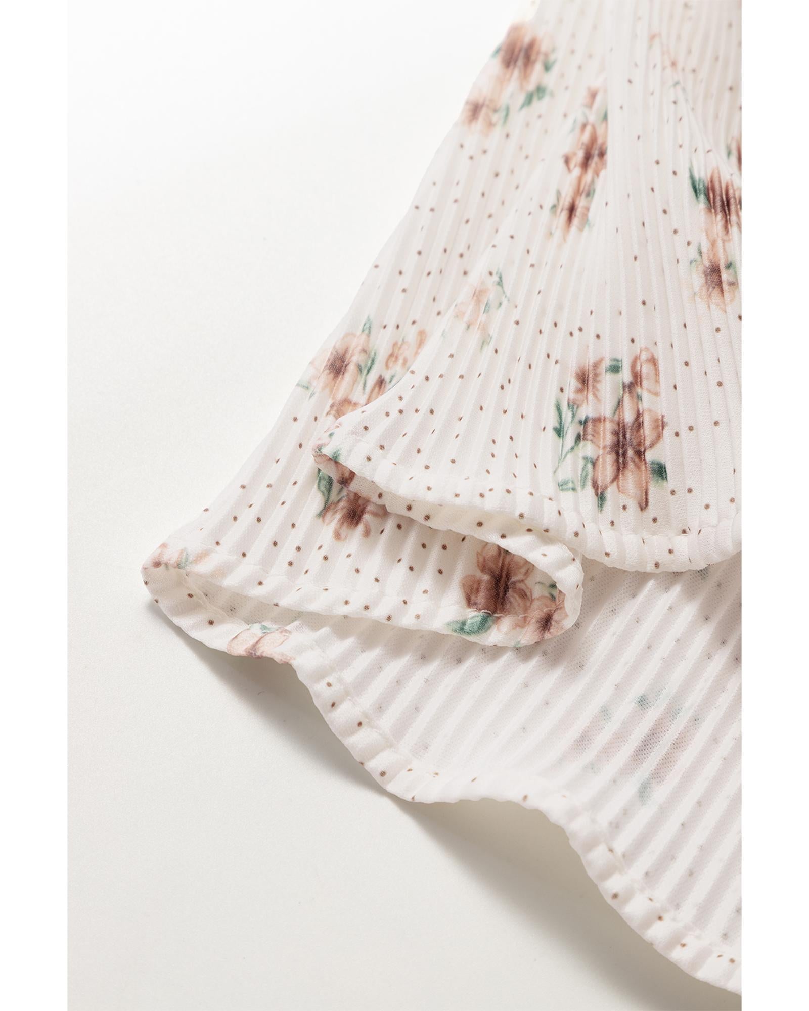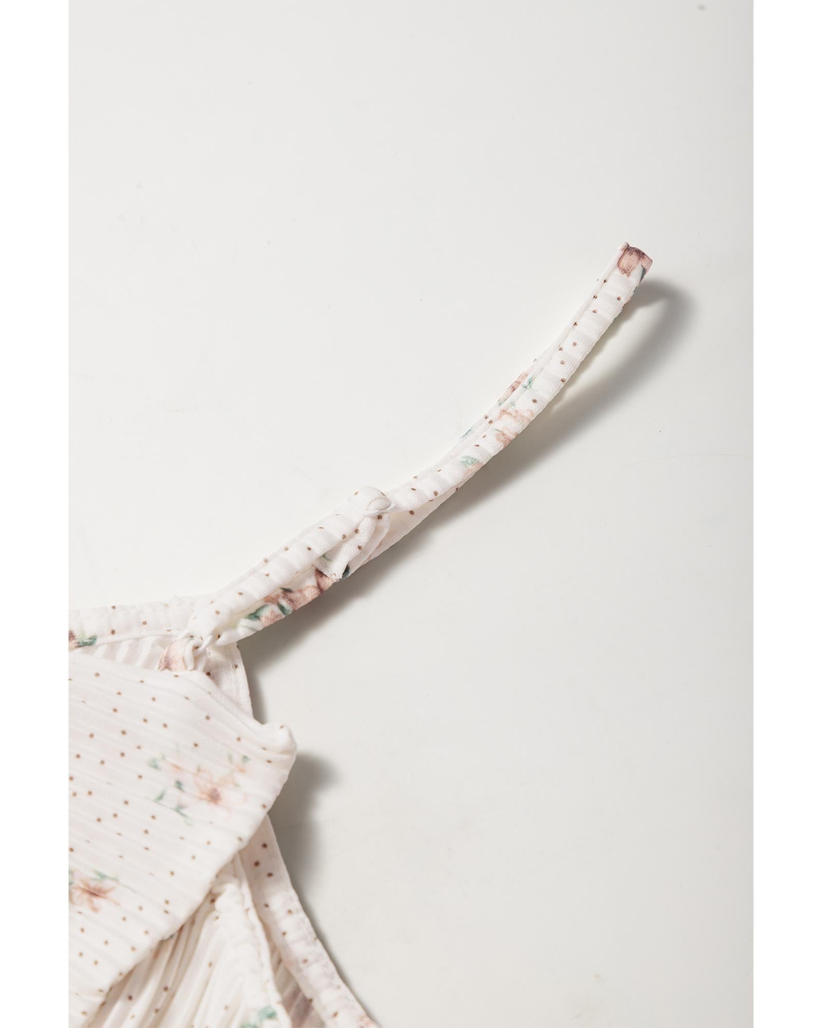 White Floral Pleated Big Bow Back Spaghetti Straps Tank Top - M