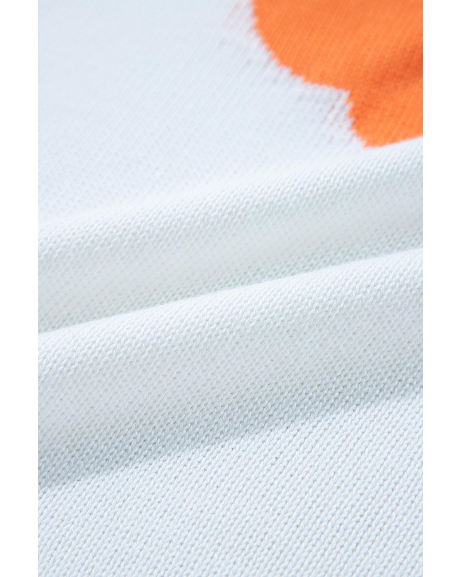 White Floral Print Buttoned Loose Lightweight Sweater - XL