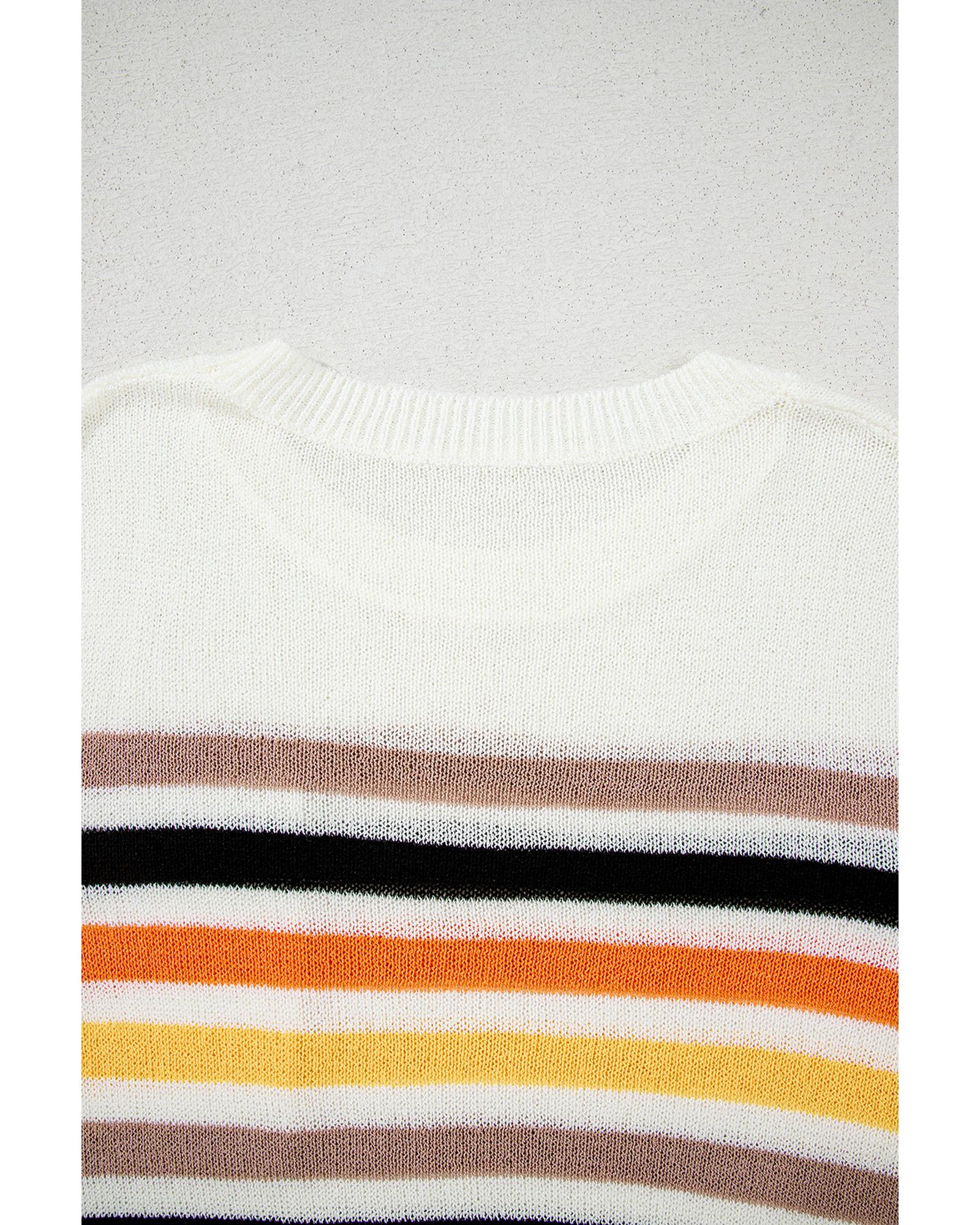 White Striped Pocketed Loose Fit Crewneck Knitted T Shirt - XL
