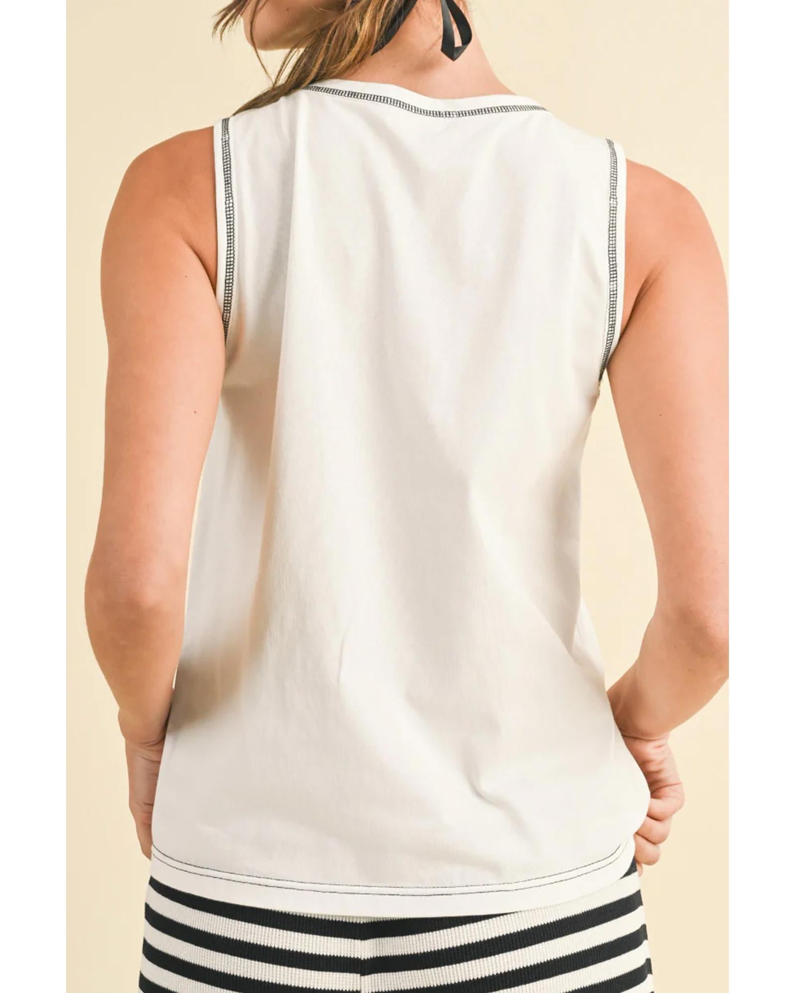 White Sweet Bow Stitching Trim Sleeveless Top - S