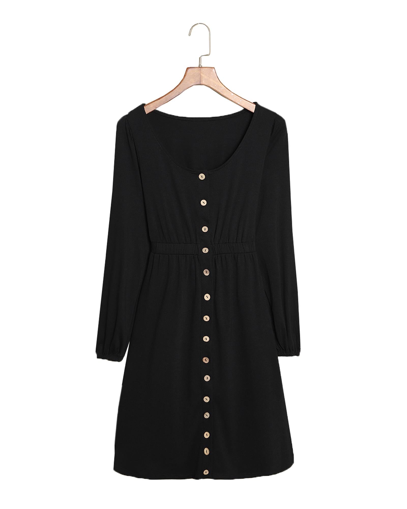Black Button Up High Waist Long Sleeve Dress - 2XL