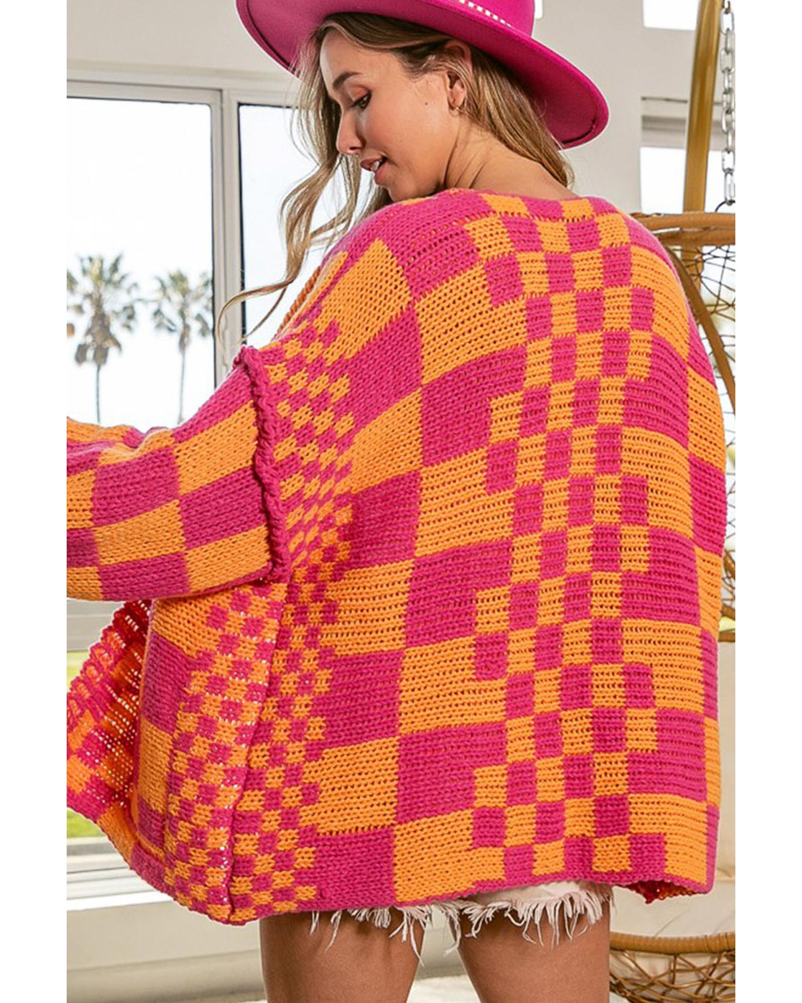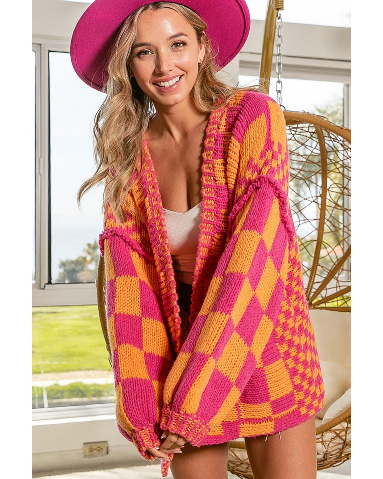Azura Exchange Multicolor Open Front Mixed Checkered Pattern Knit Cardigan - XL