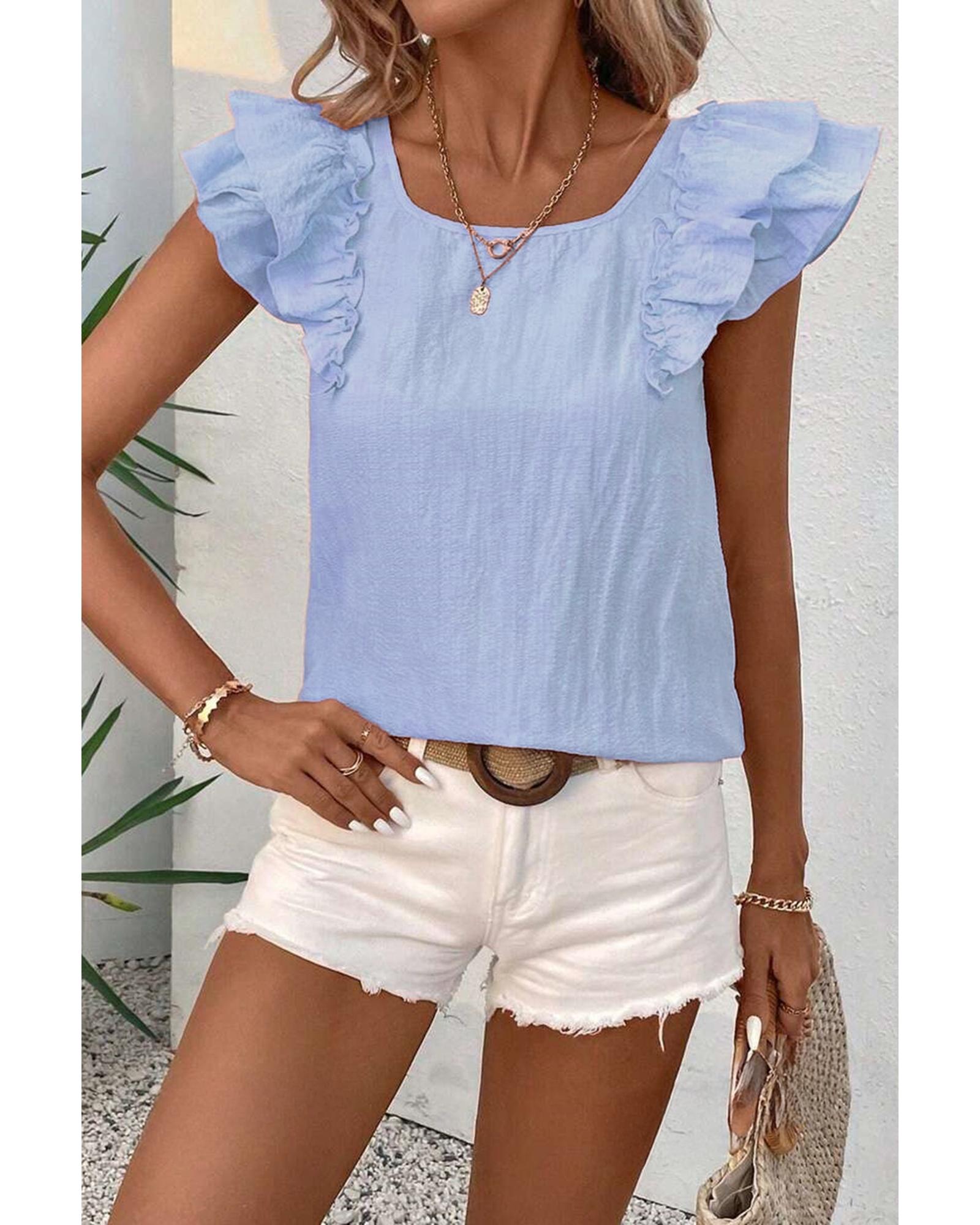 Beau Blue Textured Bow Knot Frilled Butterfly Sleeve Blouse - S