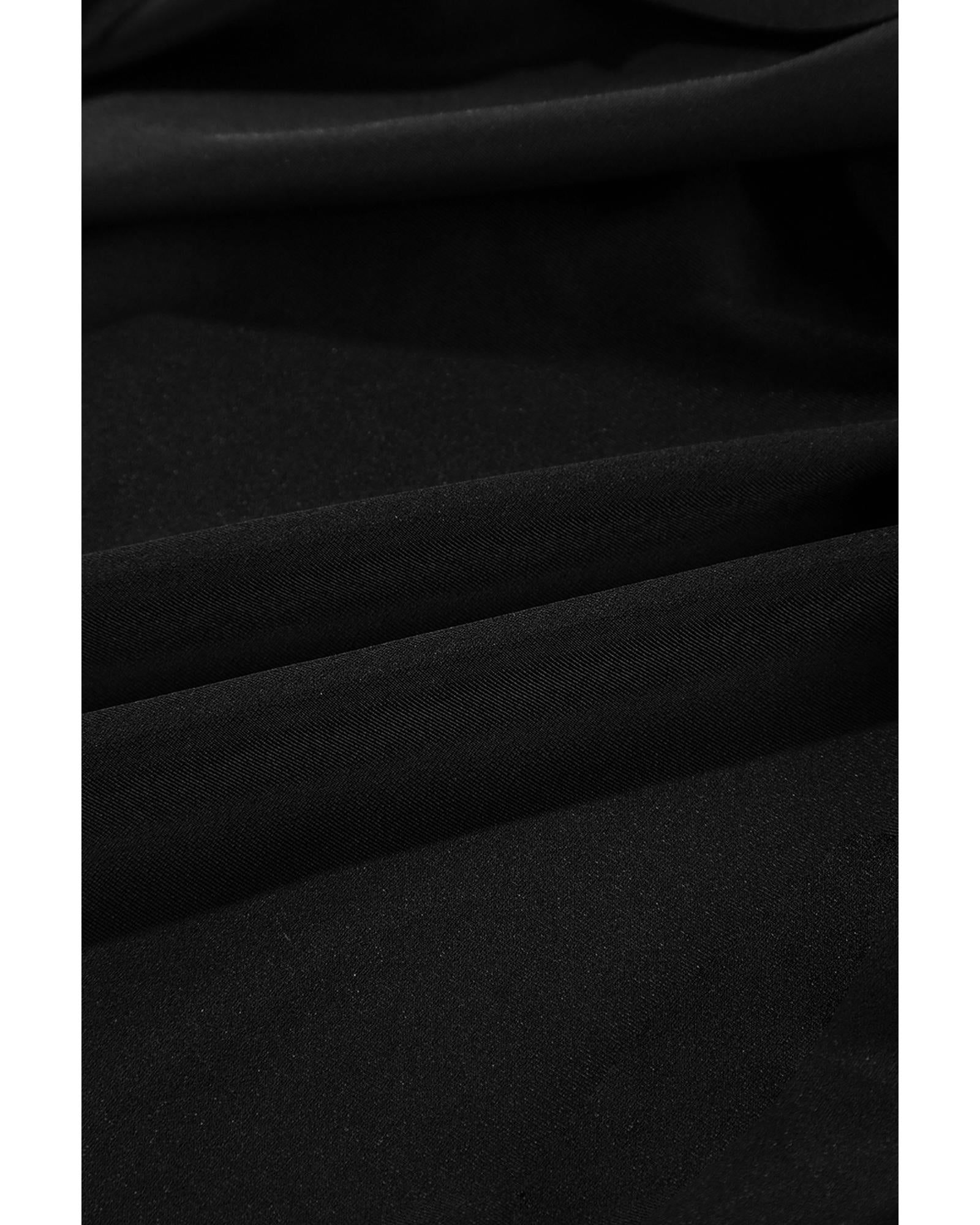 Black Beaded Spaghetti Straps Ruched Overlapped Colorblock One Piece Swimsuit - S