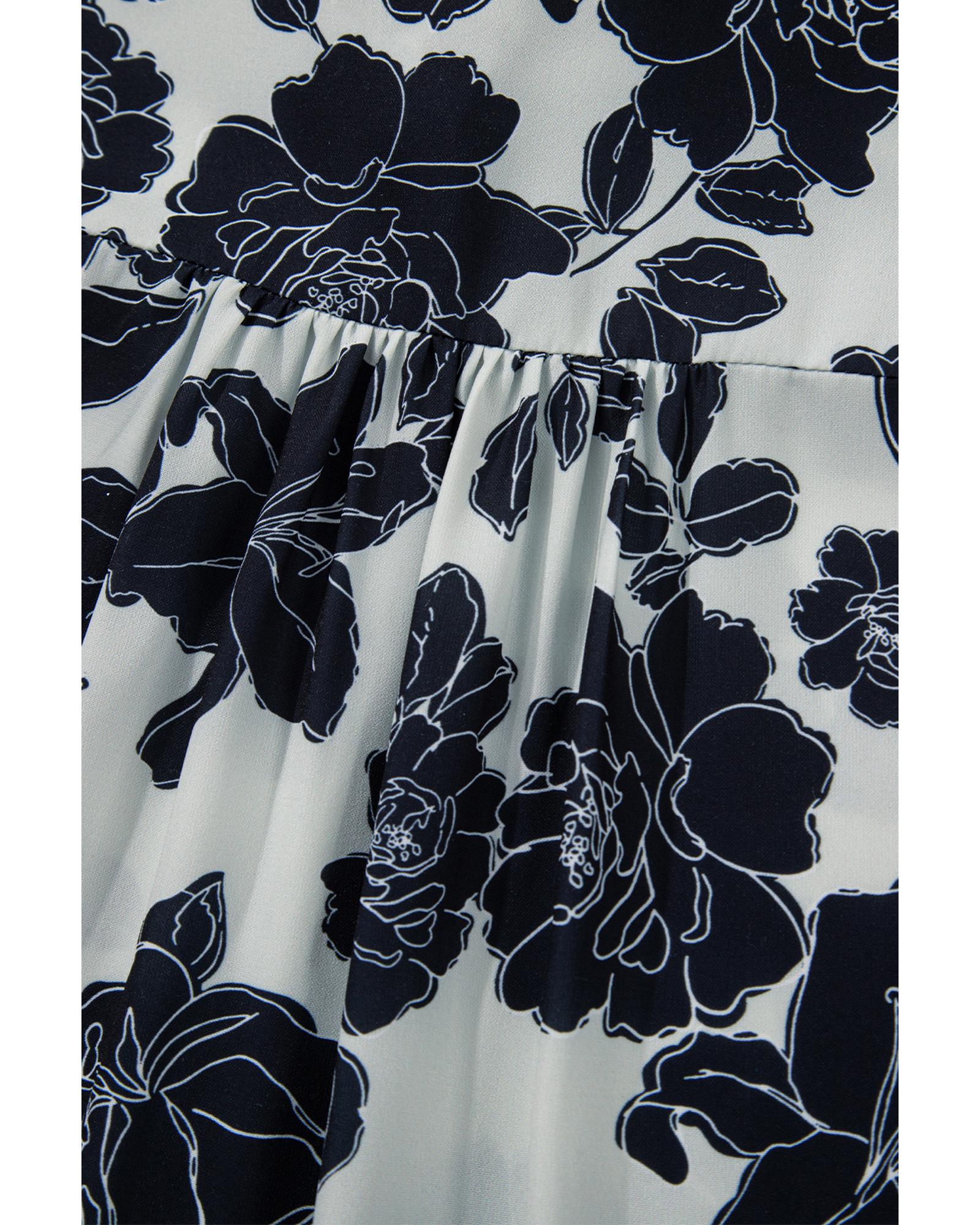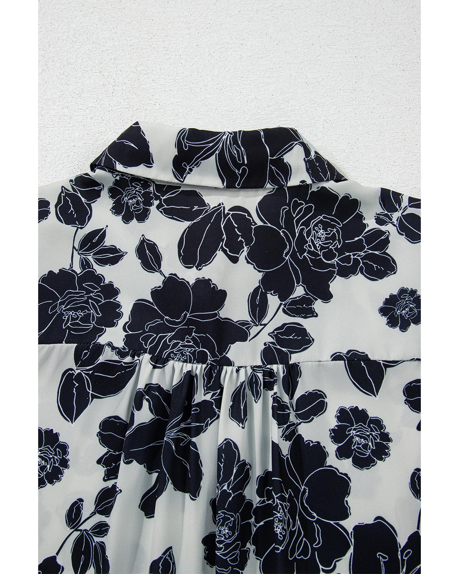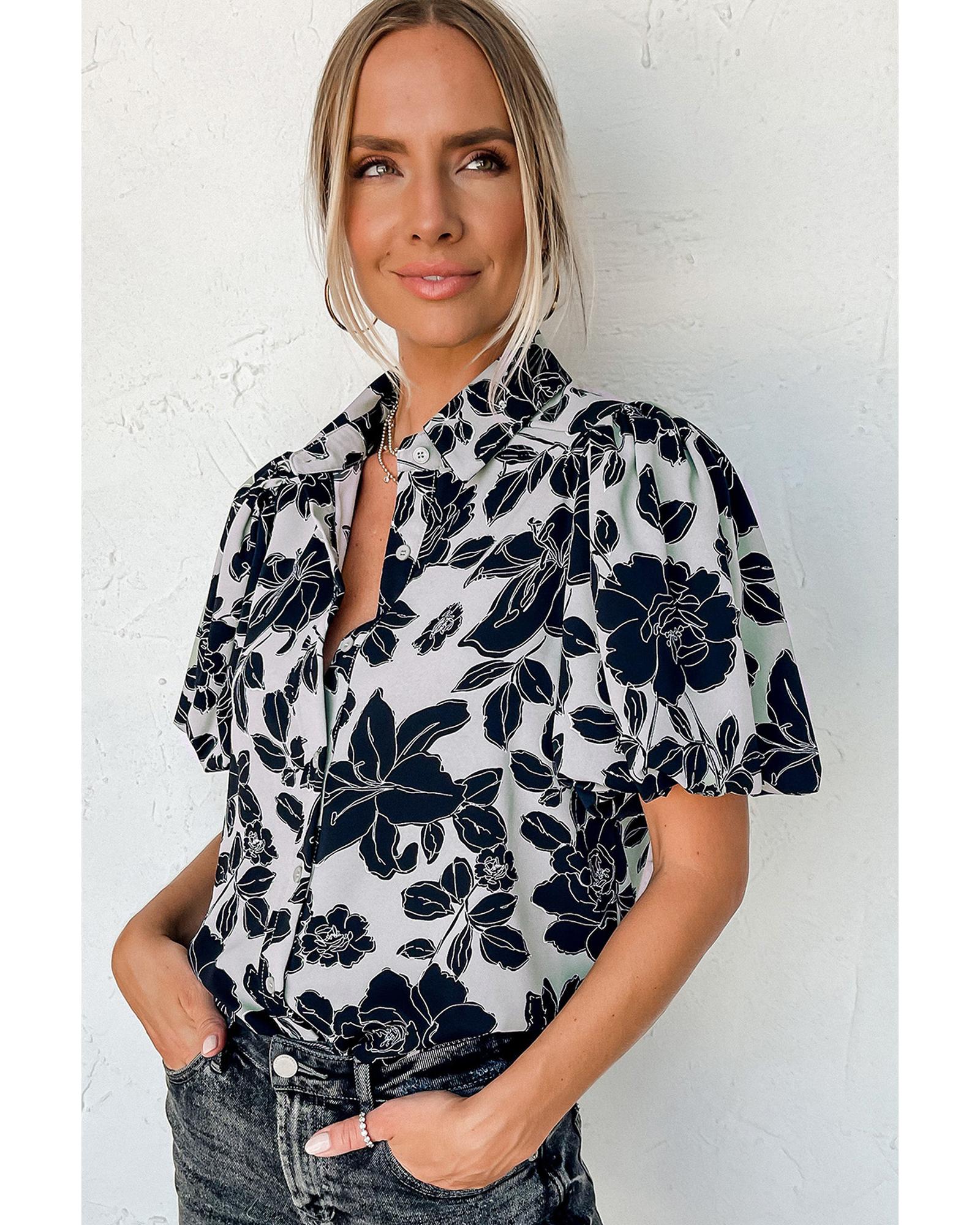 Black Floral Bubble Sleeve Casual Shirt - L