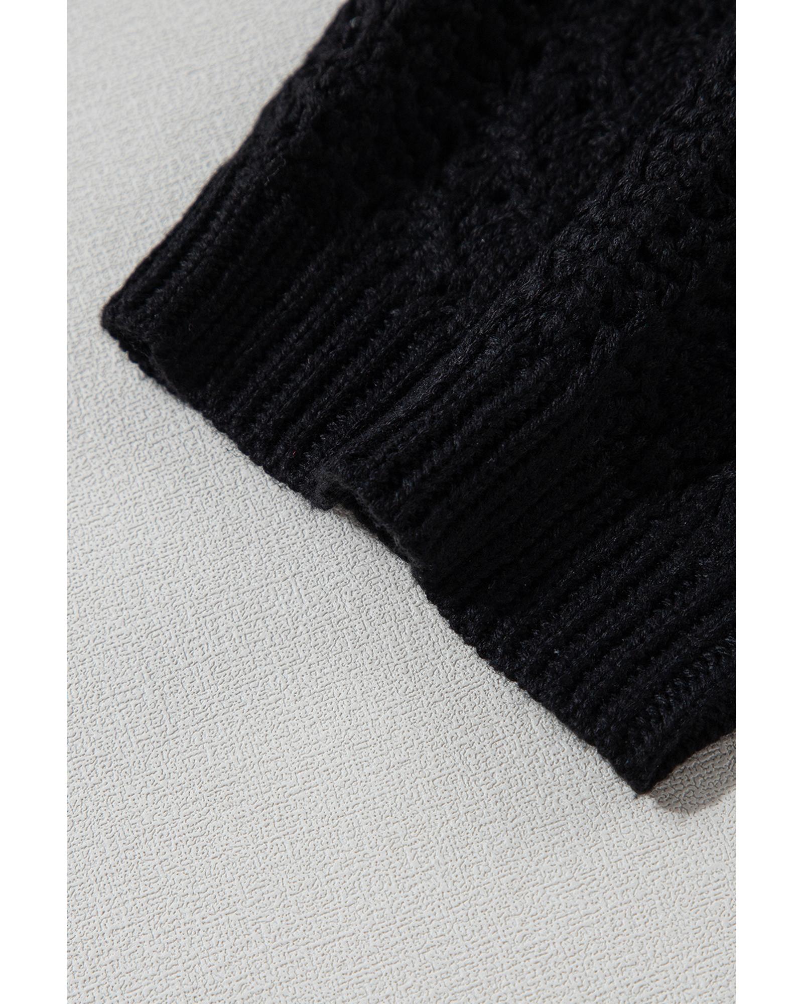 Black Hollow Out Knit Drop Shoulder Open Front Cardigan - XL