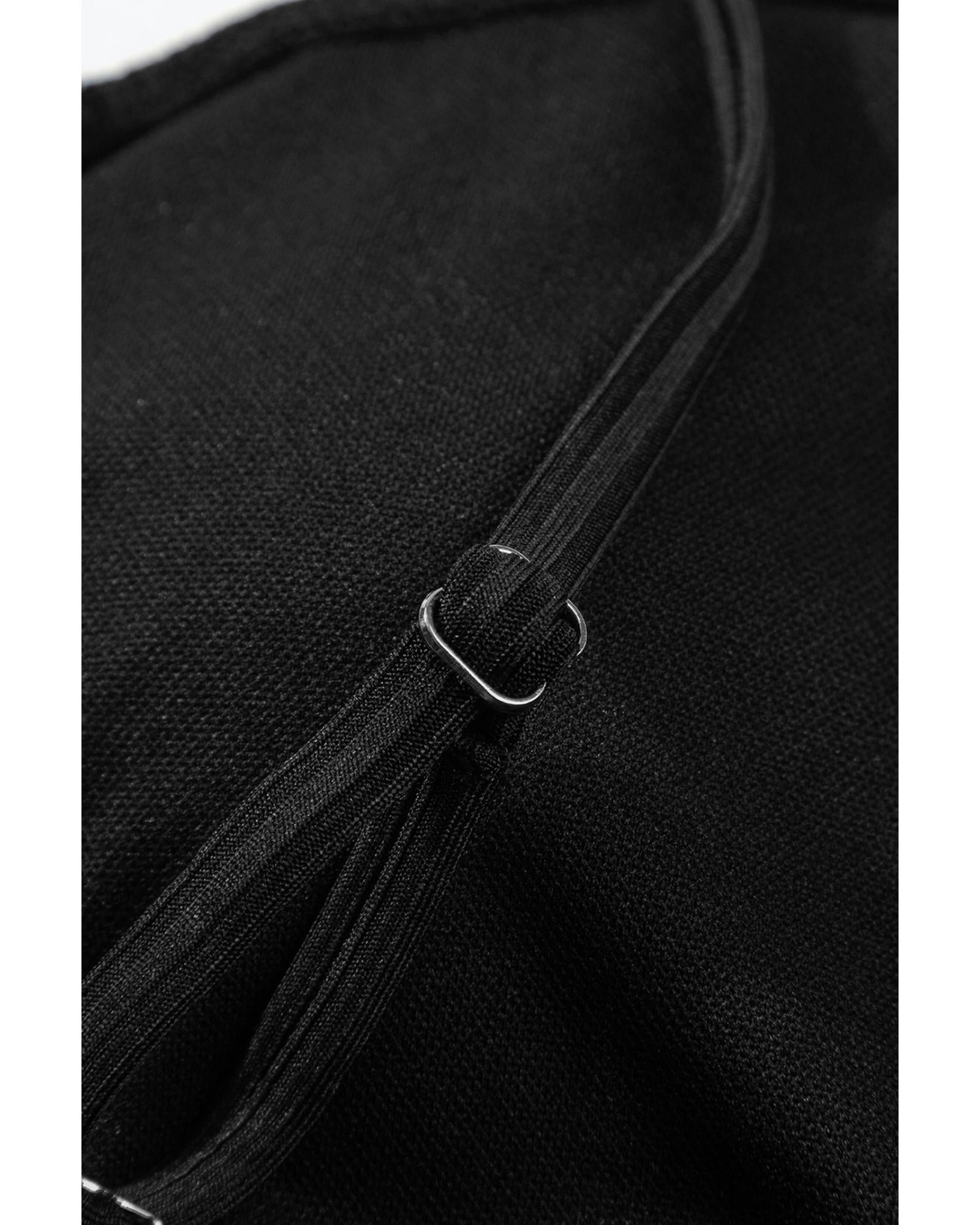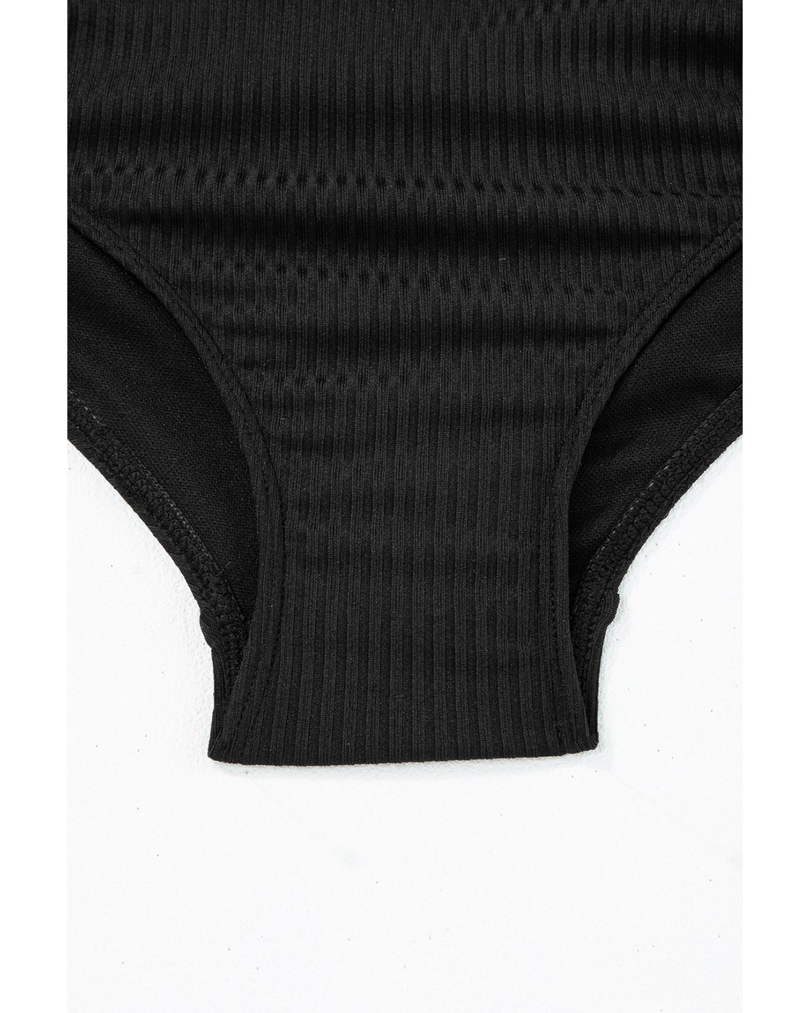 Black Ribbed Drawstring Sides Cutout One Piece Swimsuit - XL