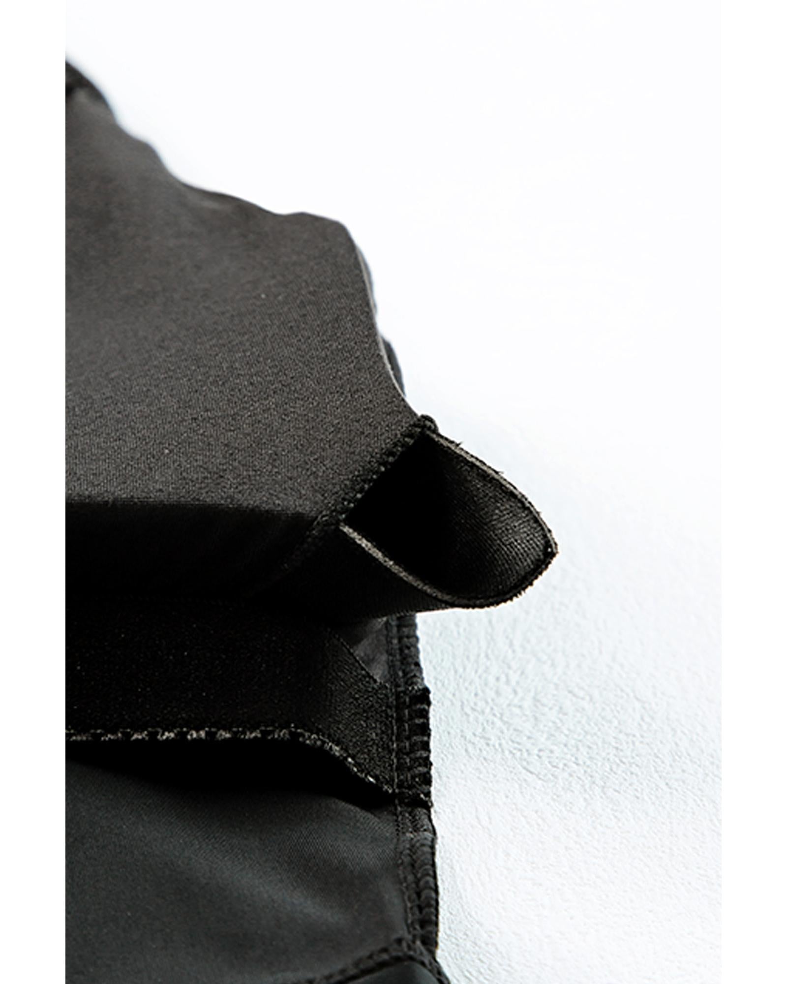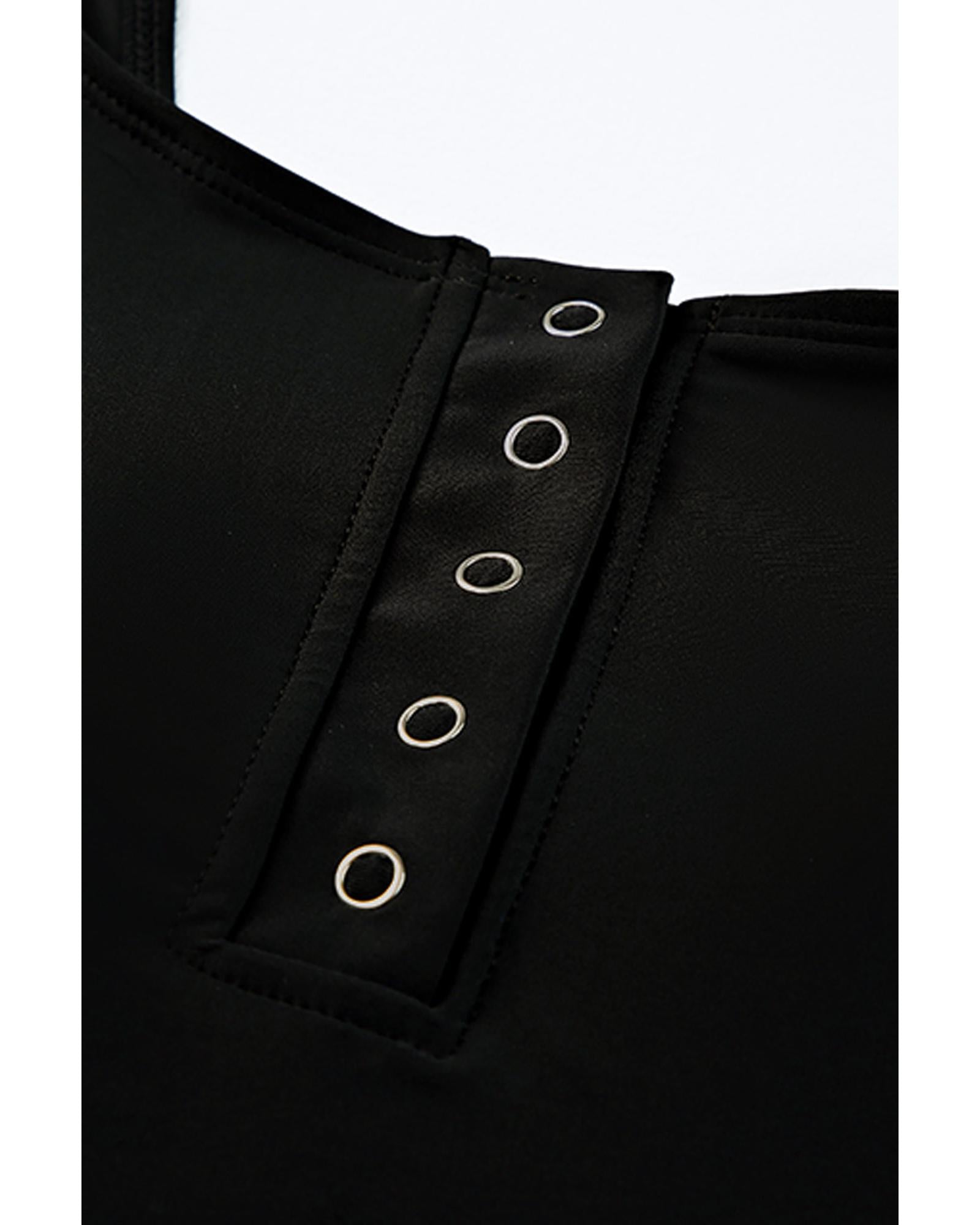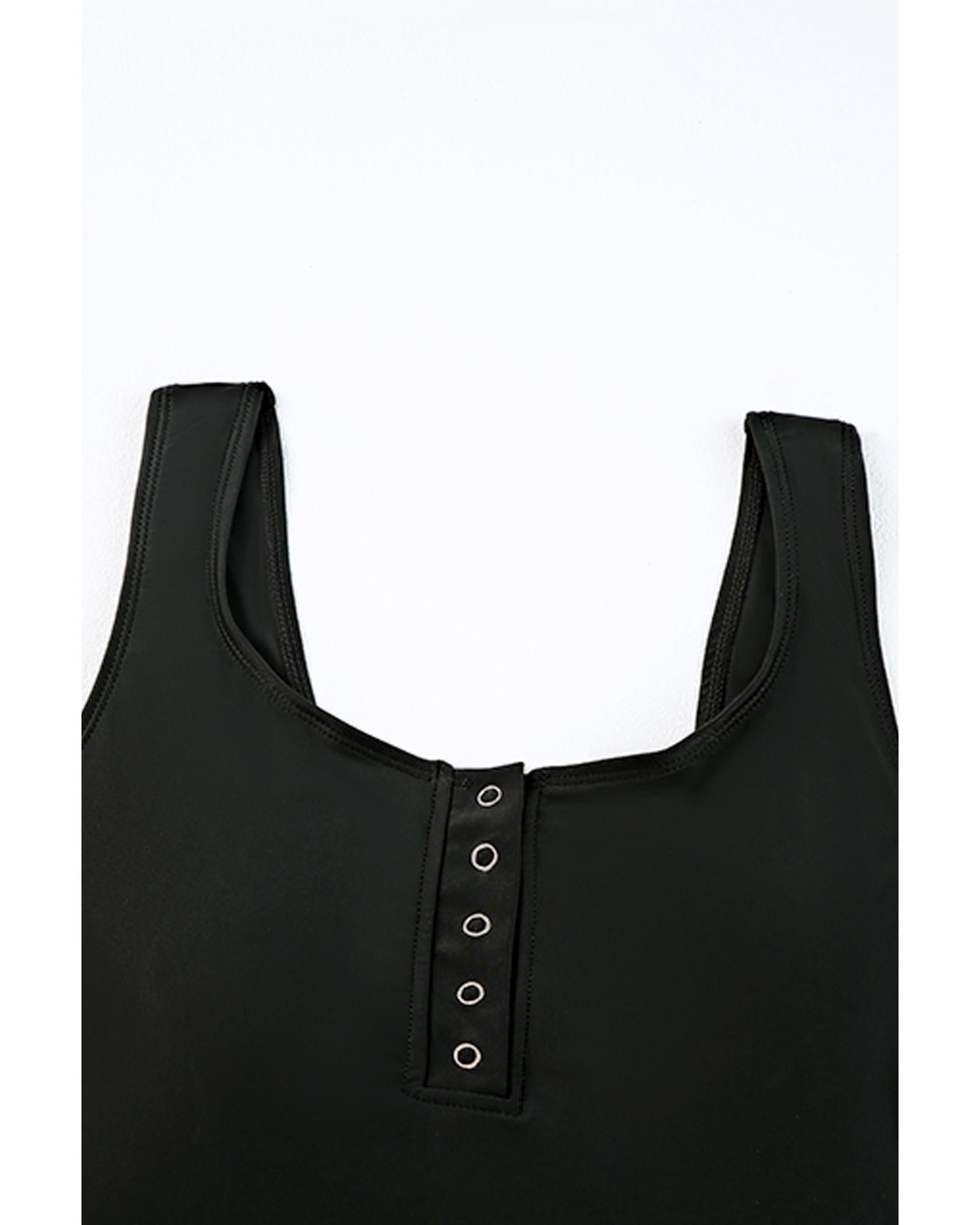 Black Square Neck Sleeveless Fashion Print Tankini Set - L