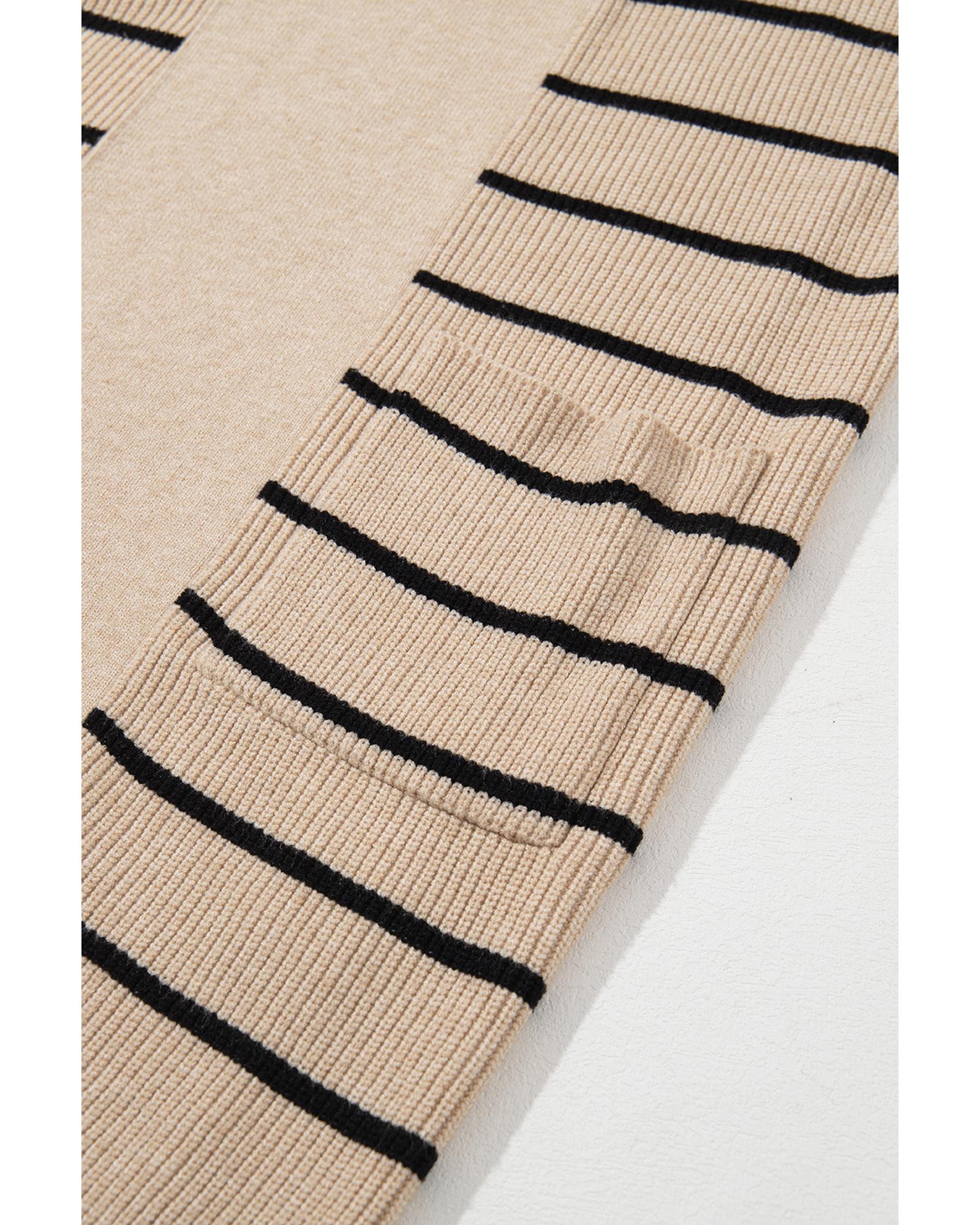 Black Stripe Shawl Neckline Open Cardigan with Pockets - S