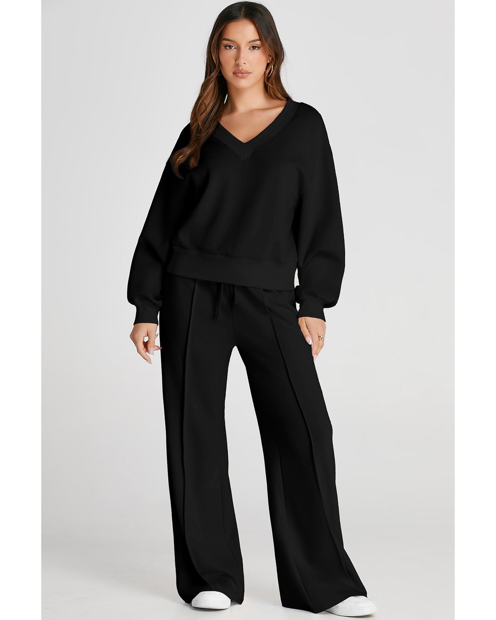 Black V Neck Cropped Seamed High Waist Sports Wear - 2XL