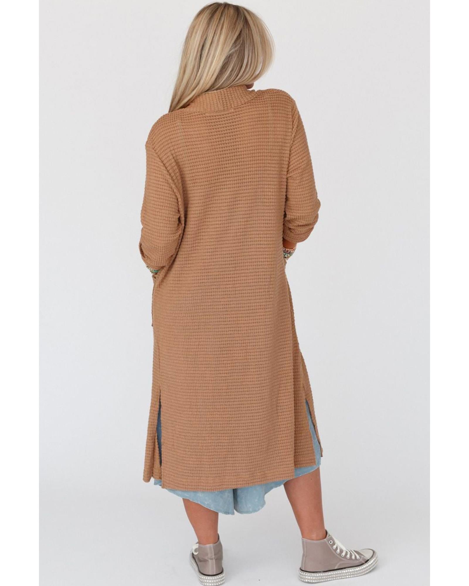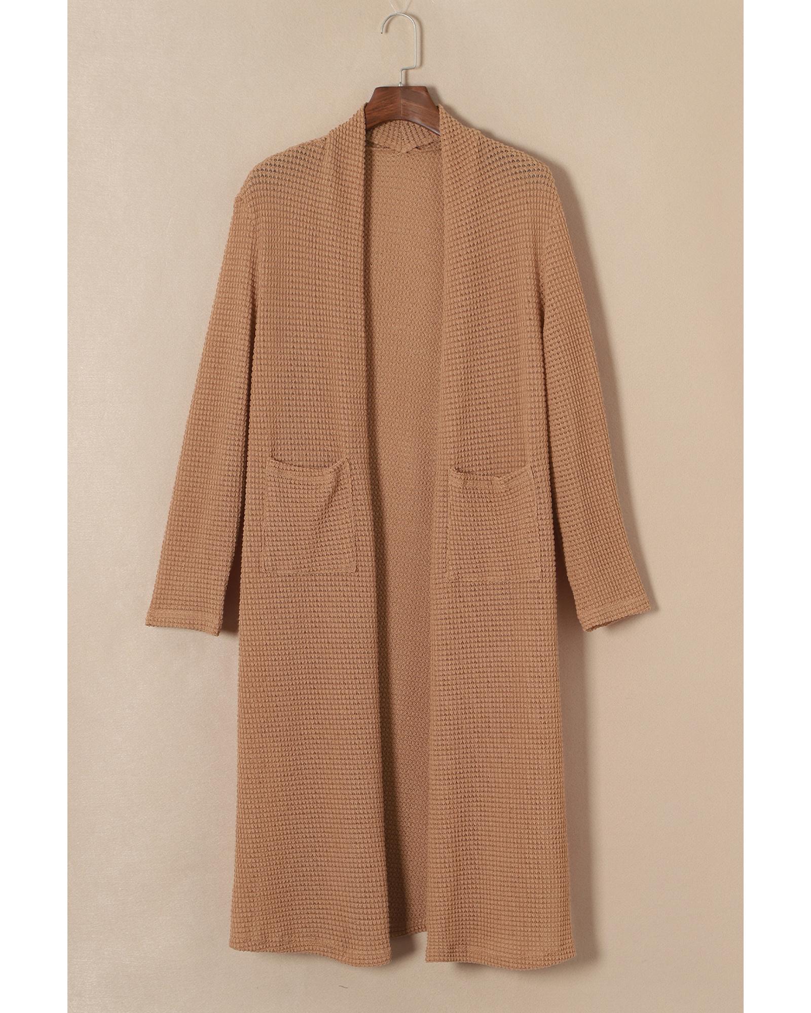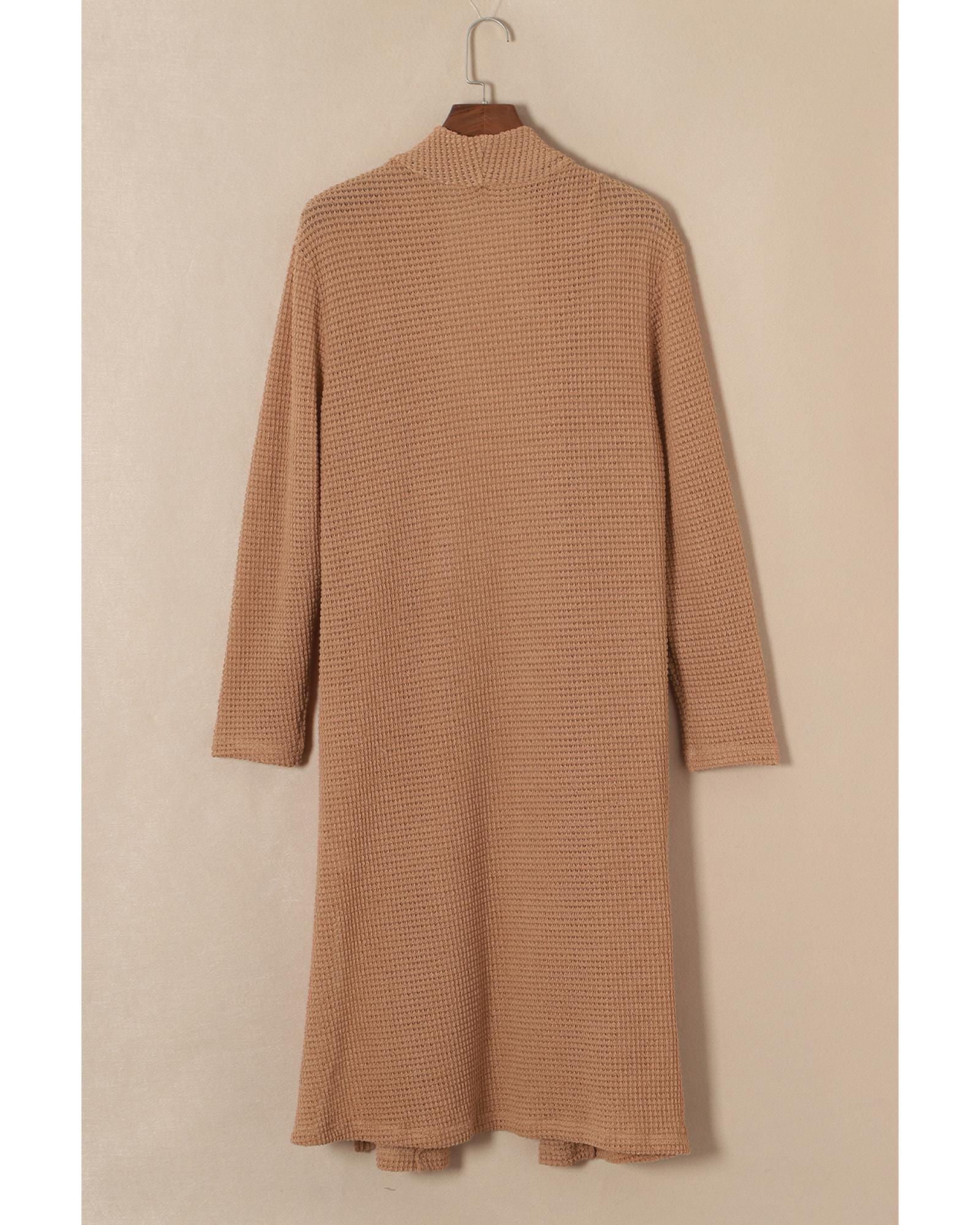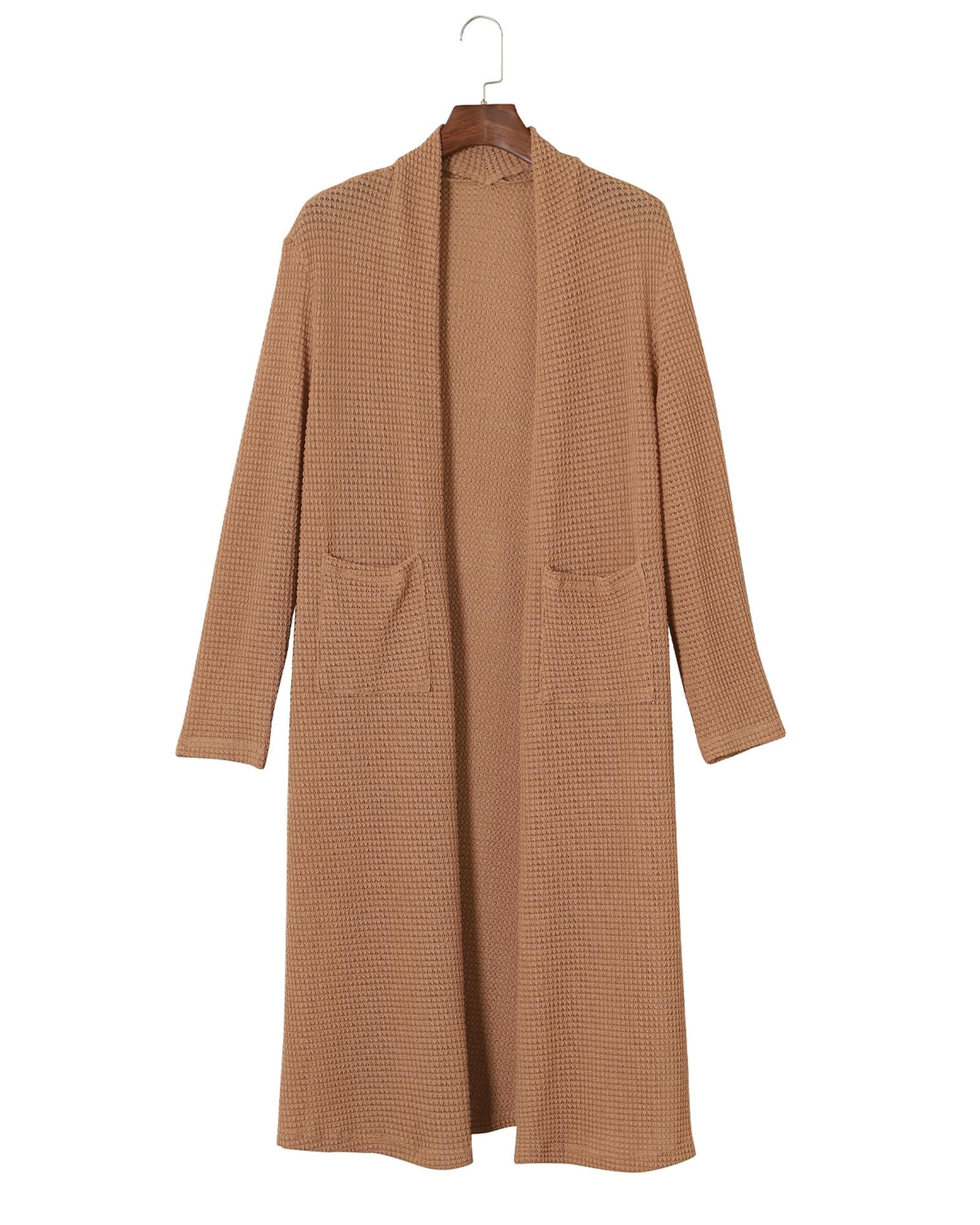 Chestnut Long Waffle Knit Cardigan with Pockets - L