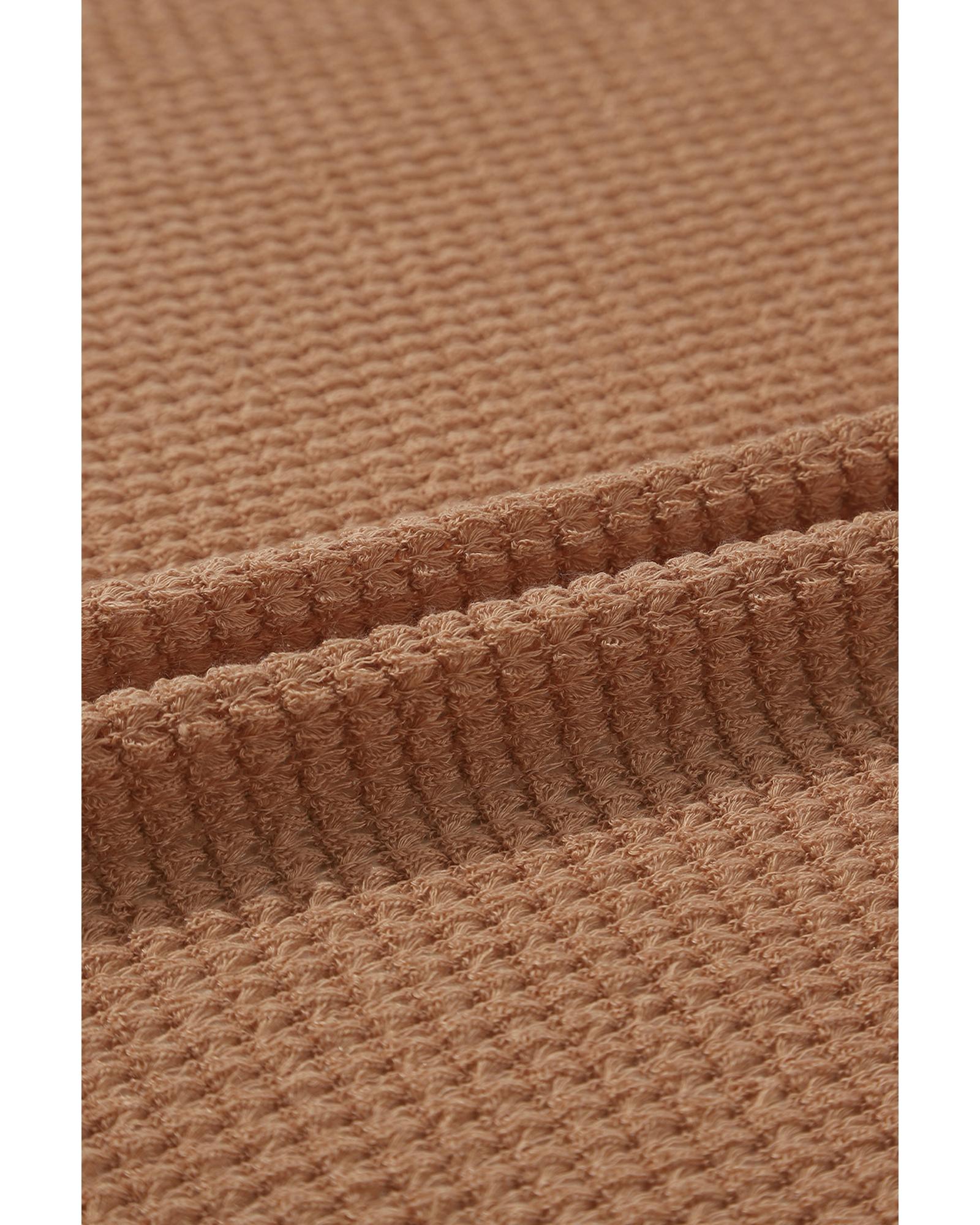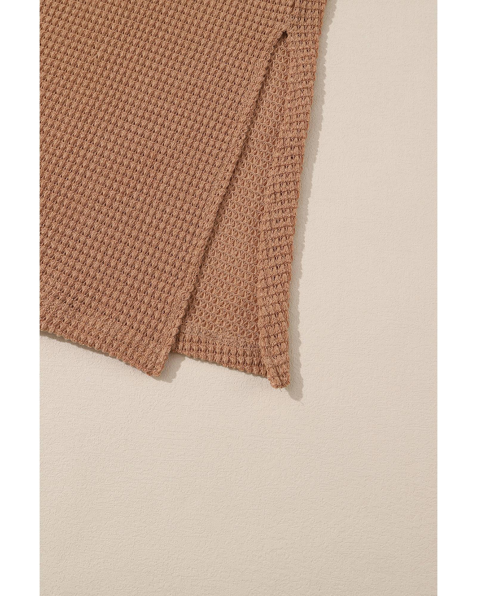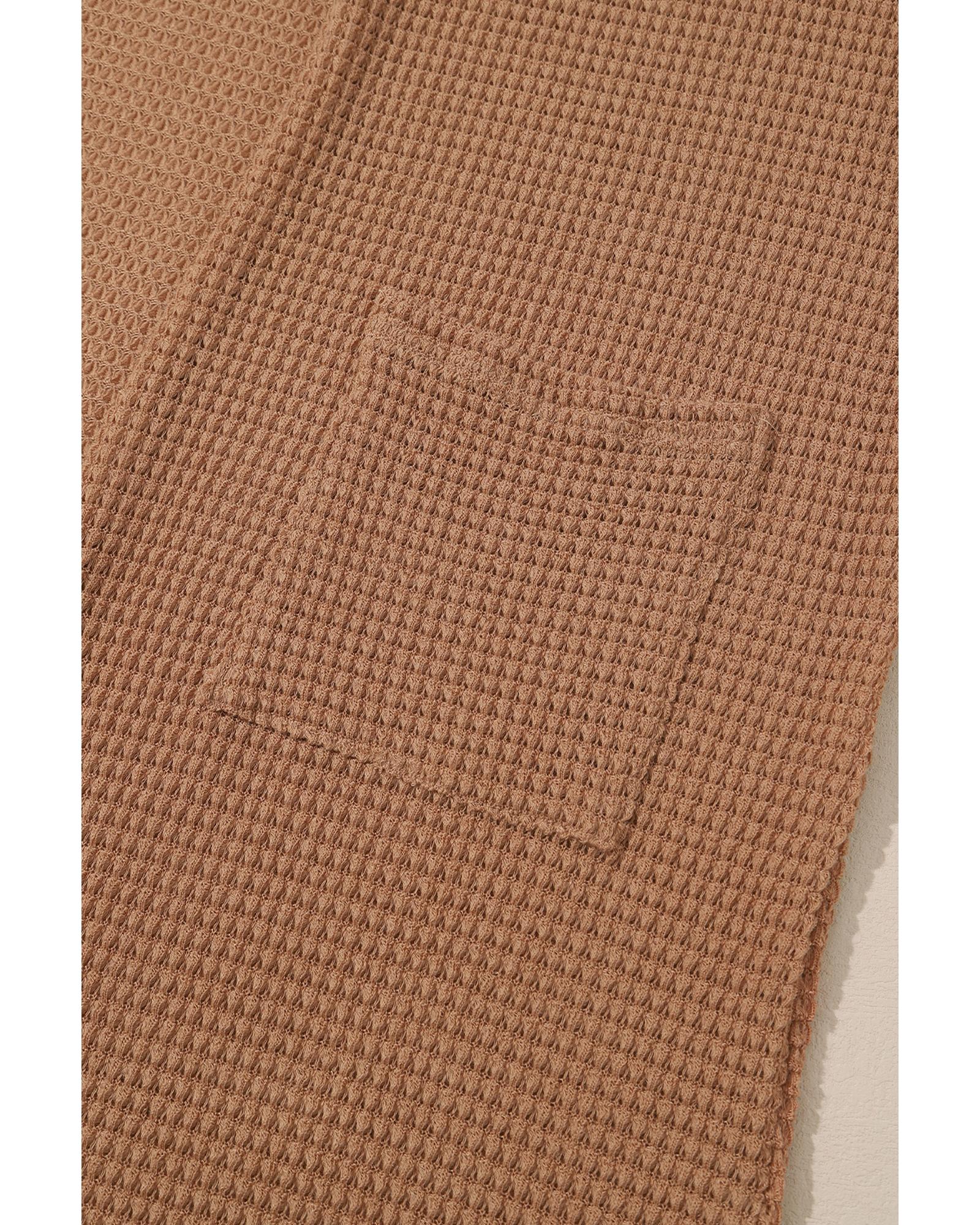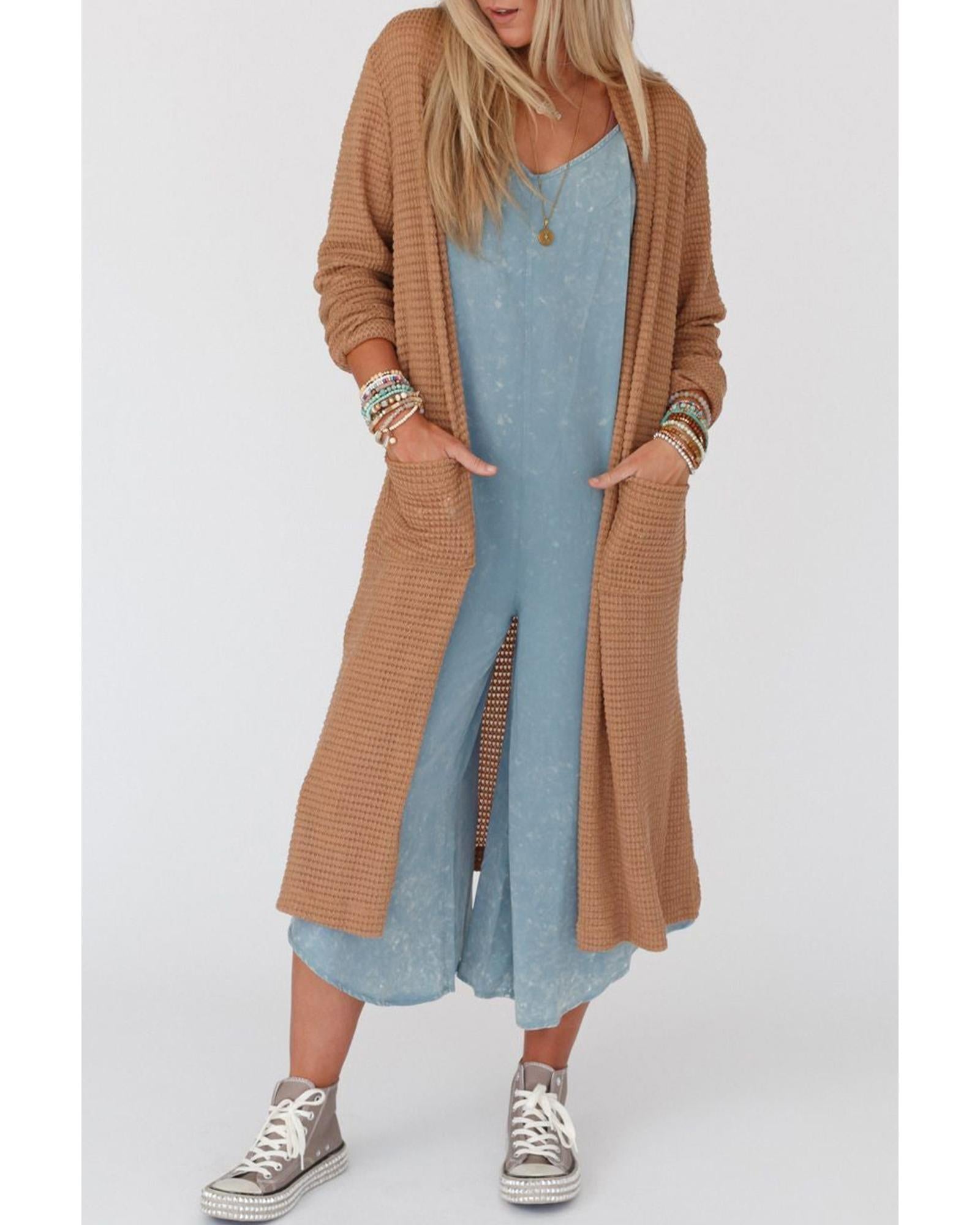 Chestnut Long Waffle Knit Cardigan with Pockets - L