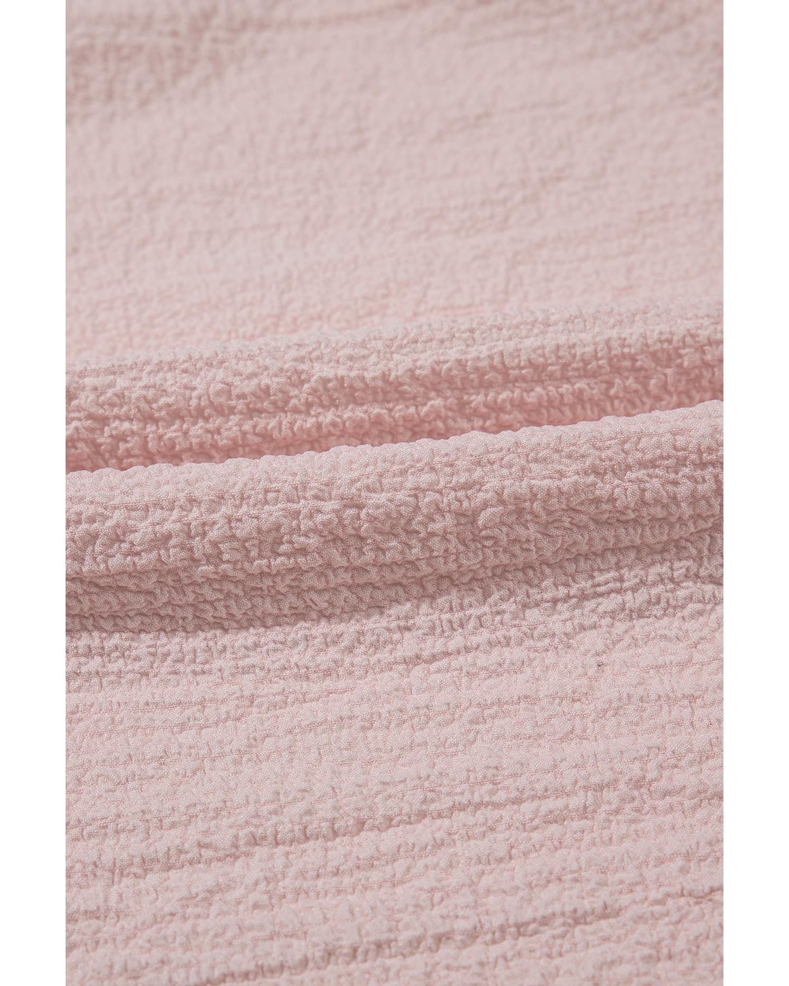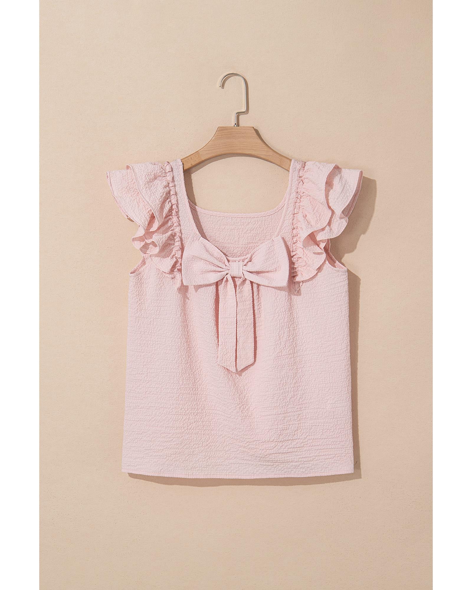 Gossamer Pink Textured Bow Knot Frilled Butterfly Sleeve Blouse - M