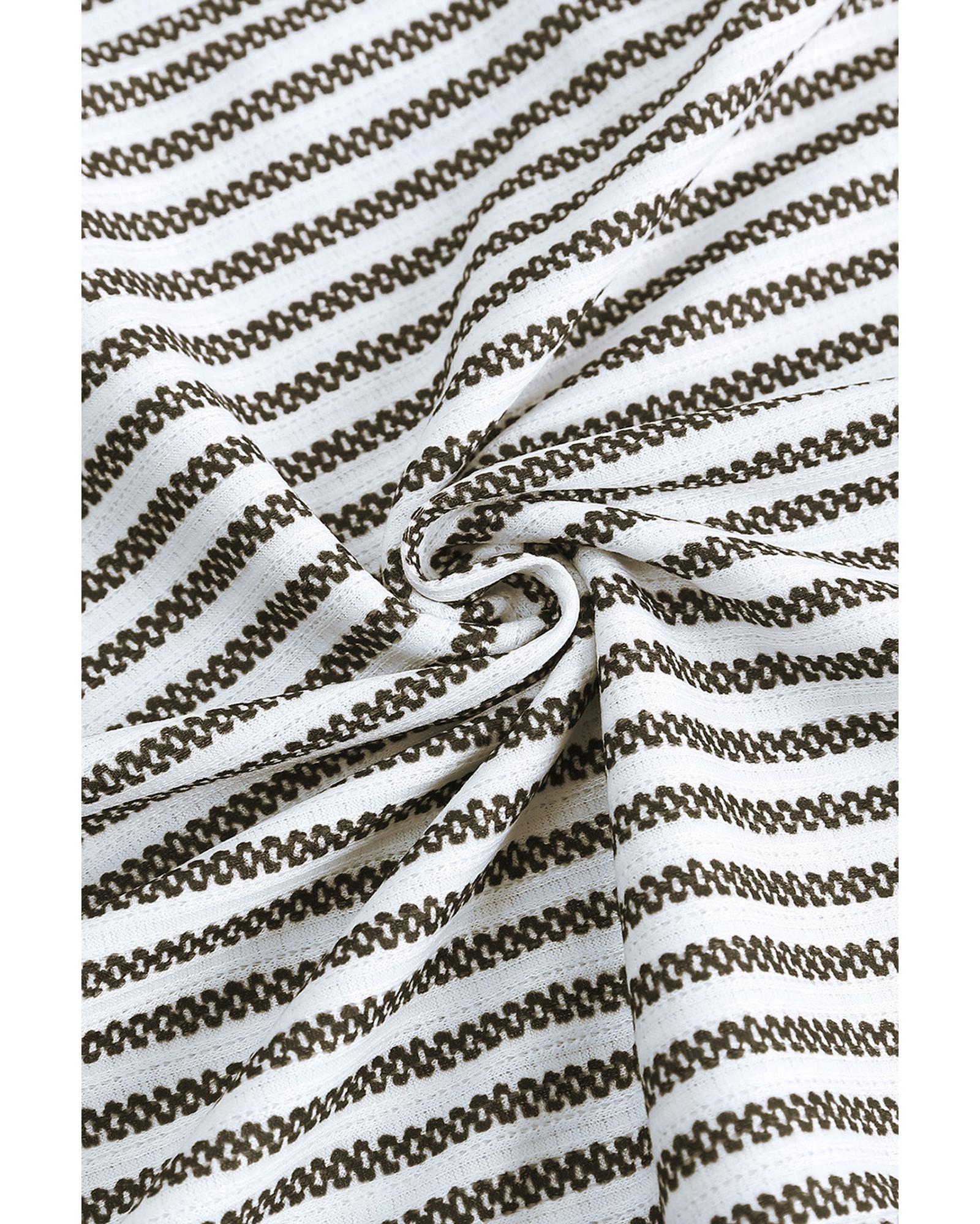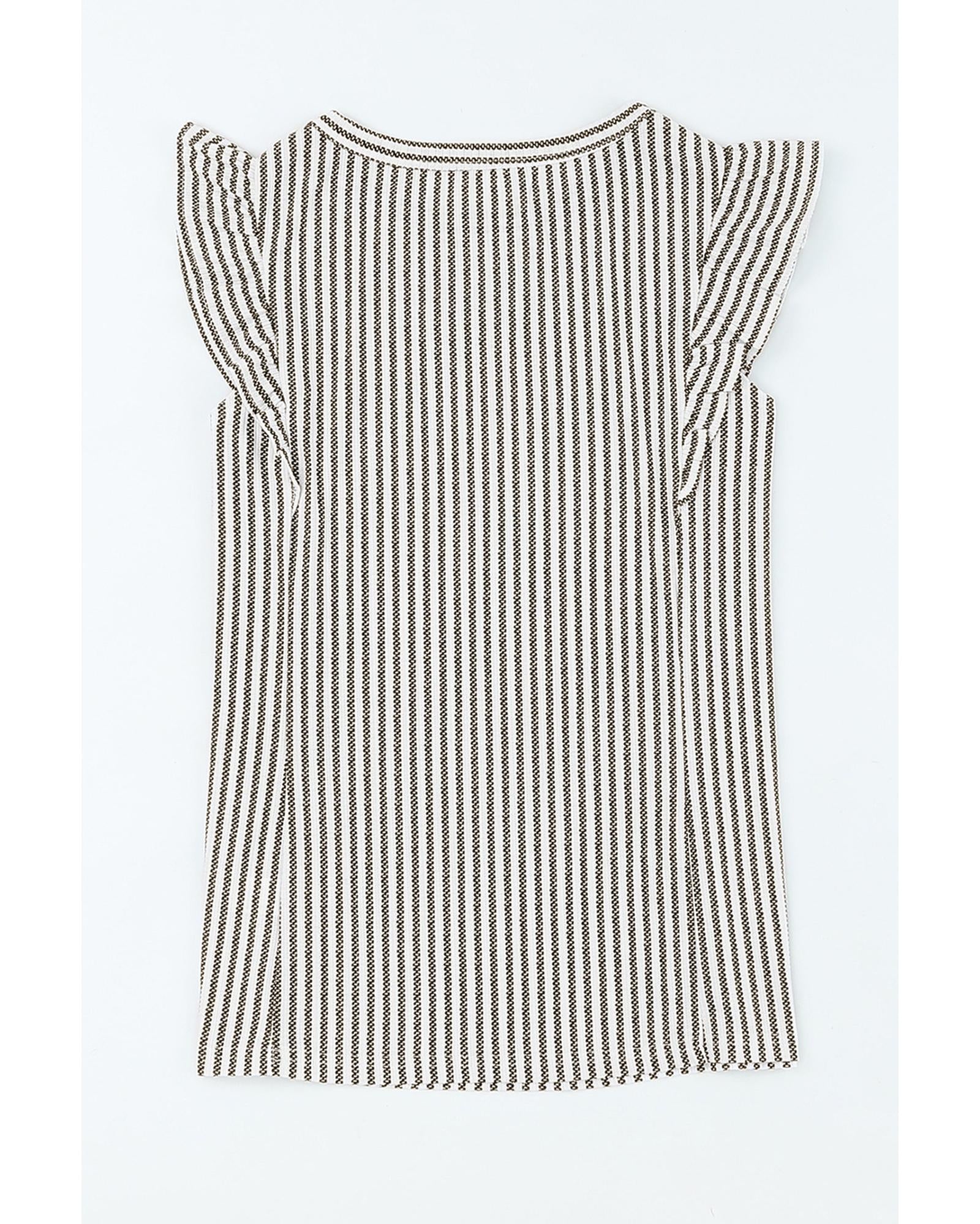 Gray Crew Neck Ruffled Striped Tank Top - L