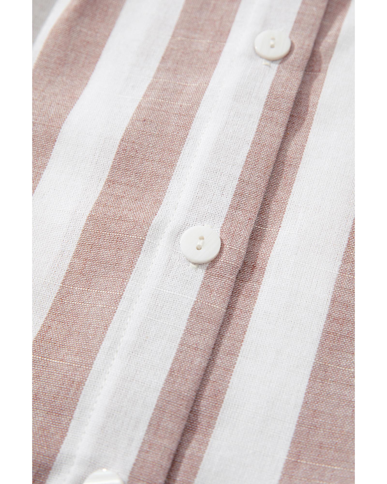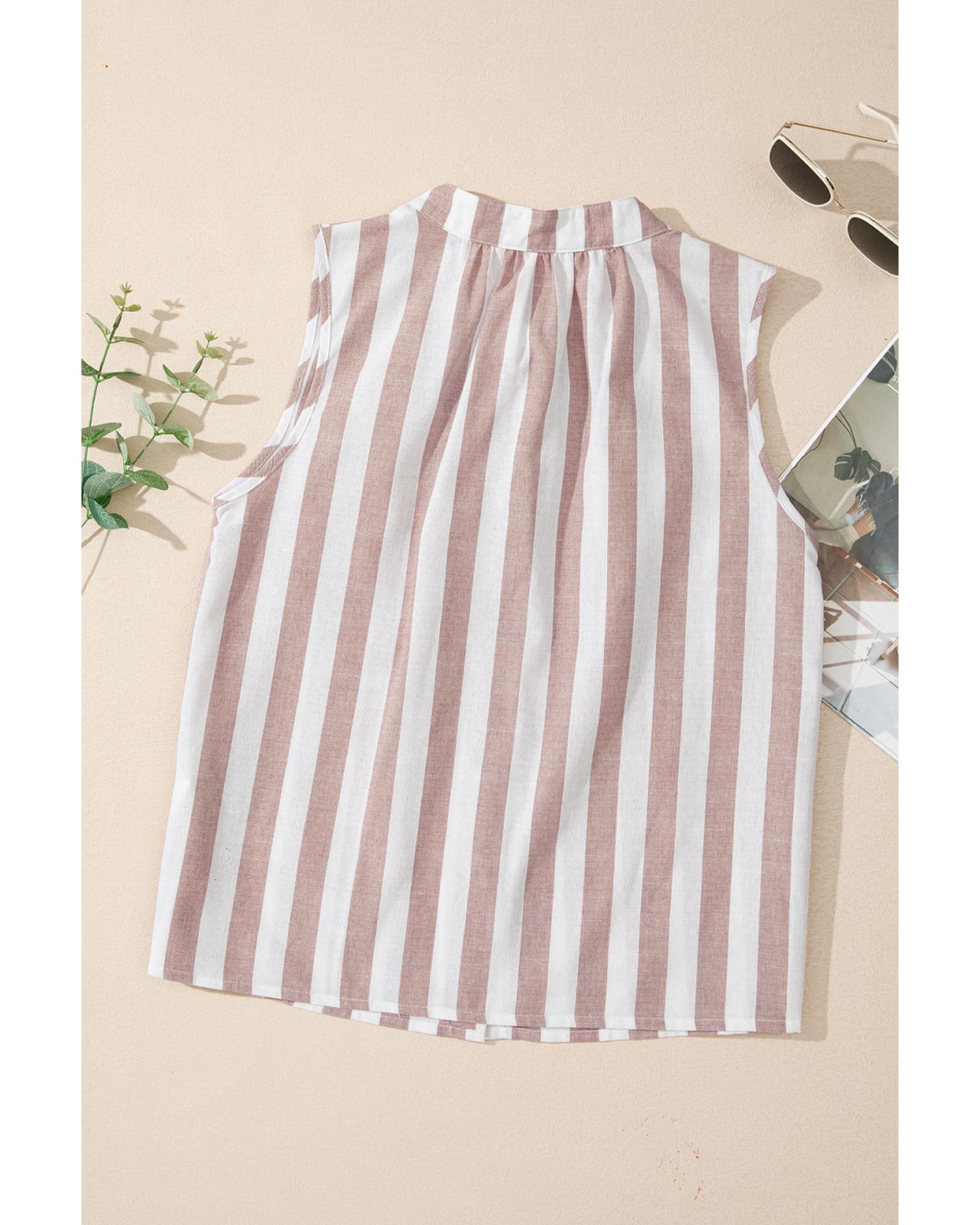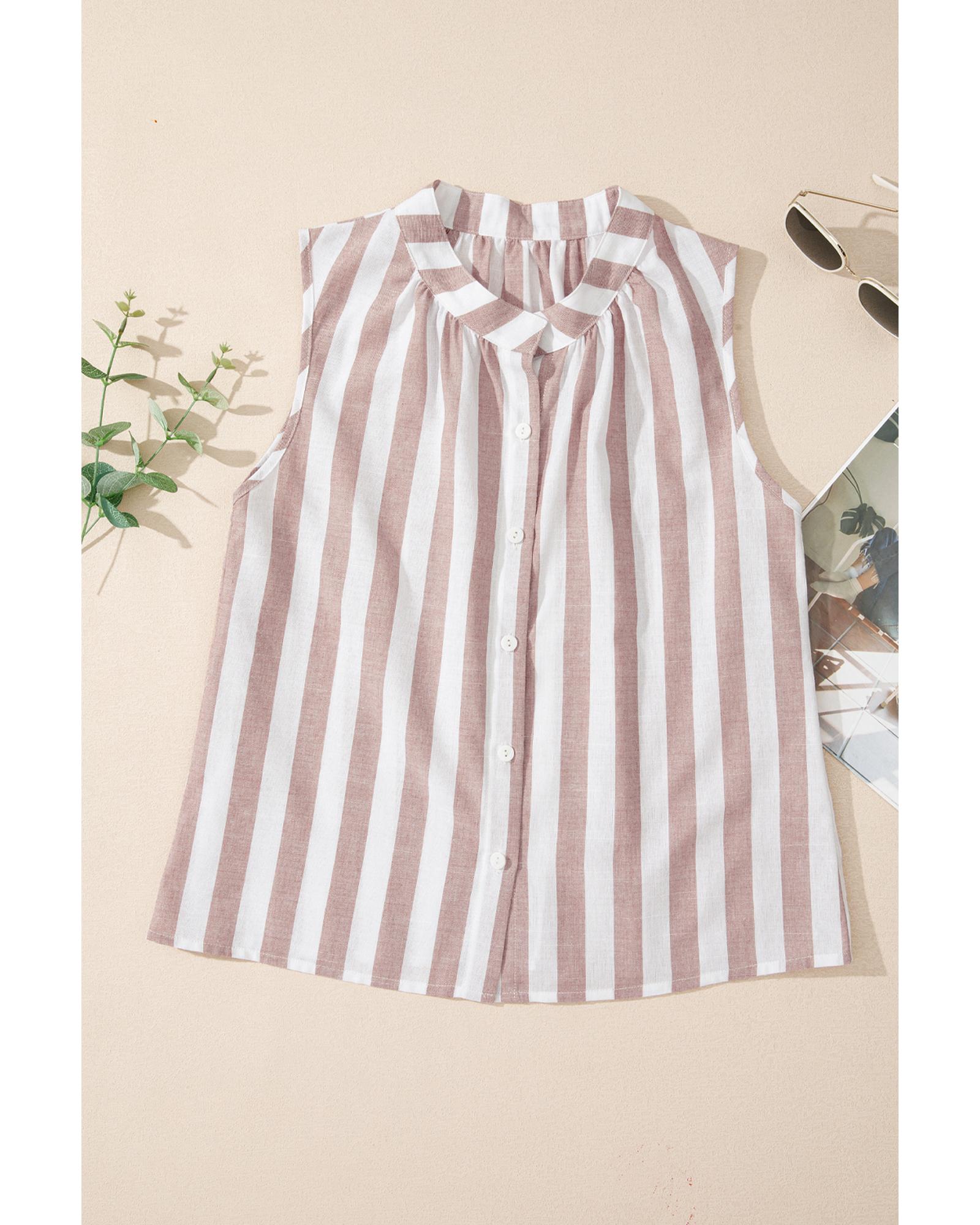 Khaki Stripe Casual Button Down Sleeveless Shirt - S