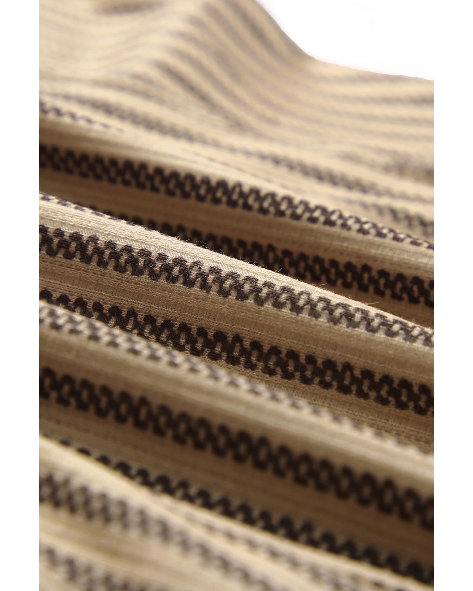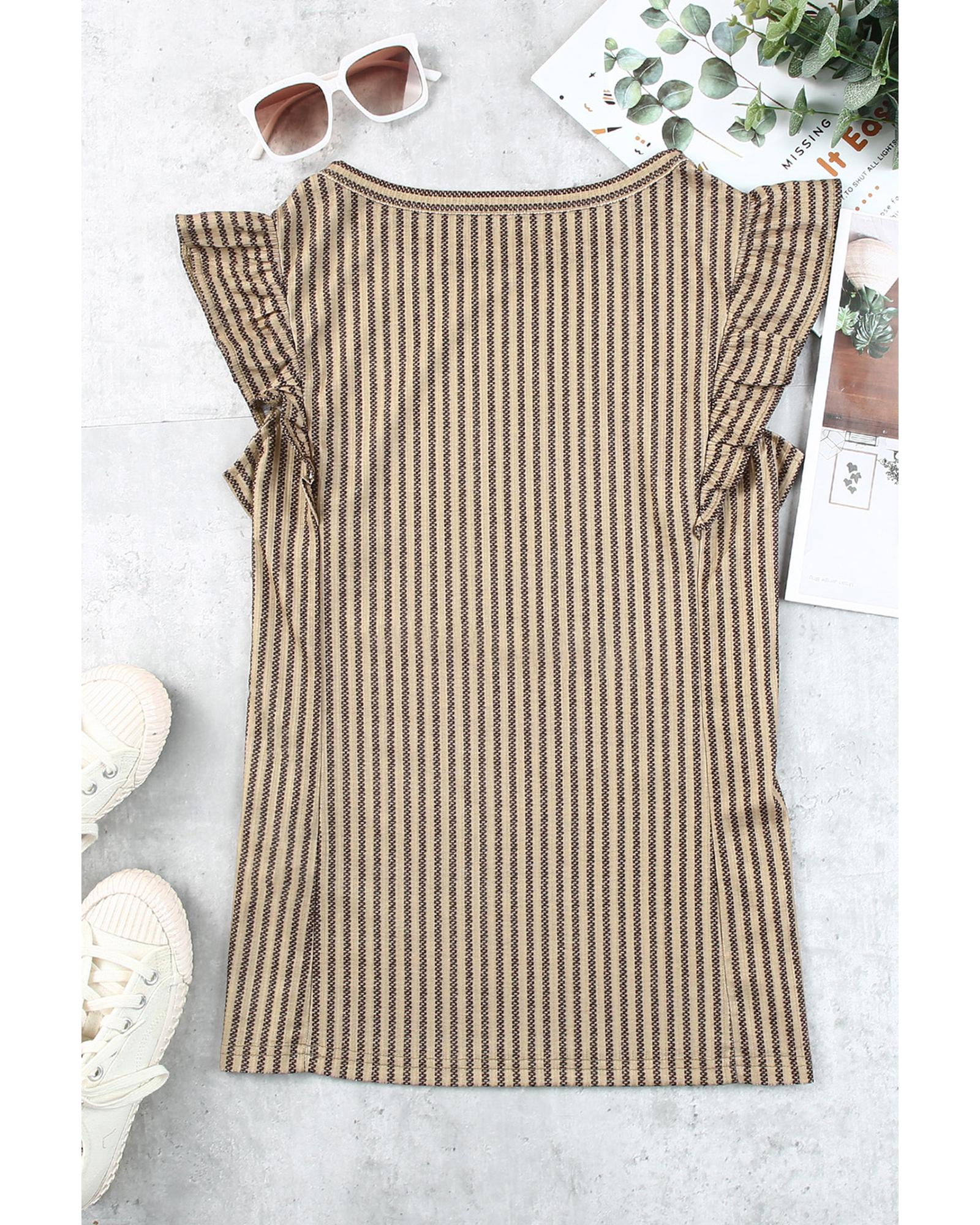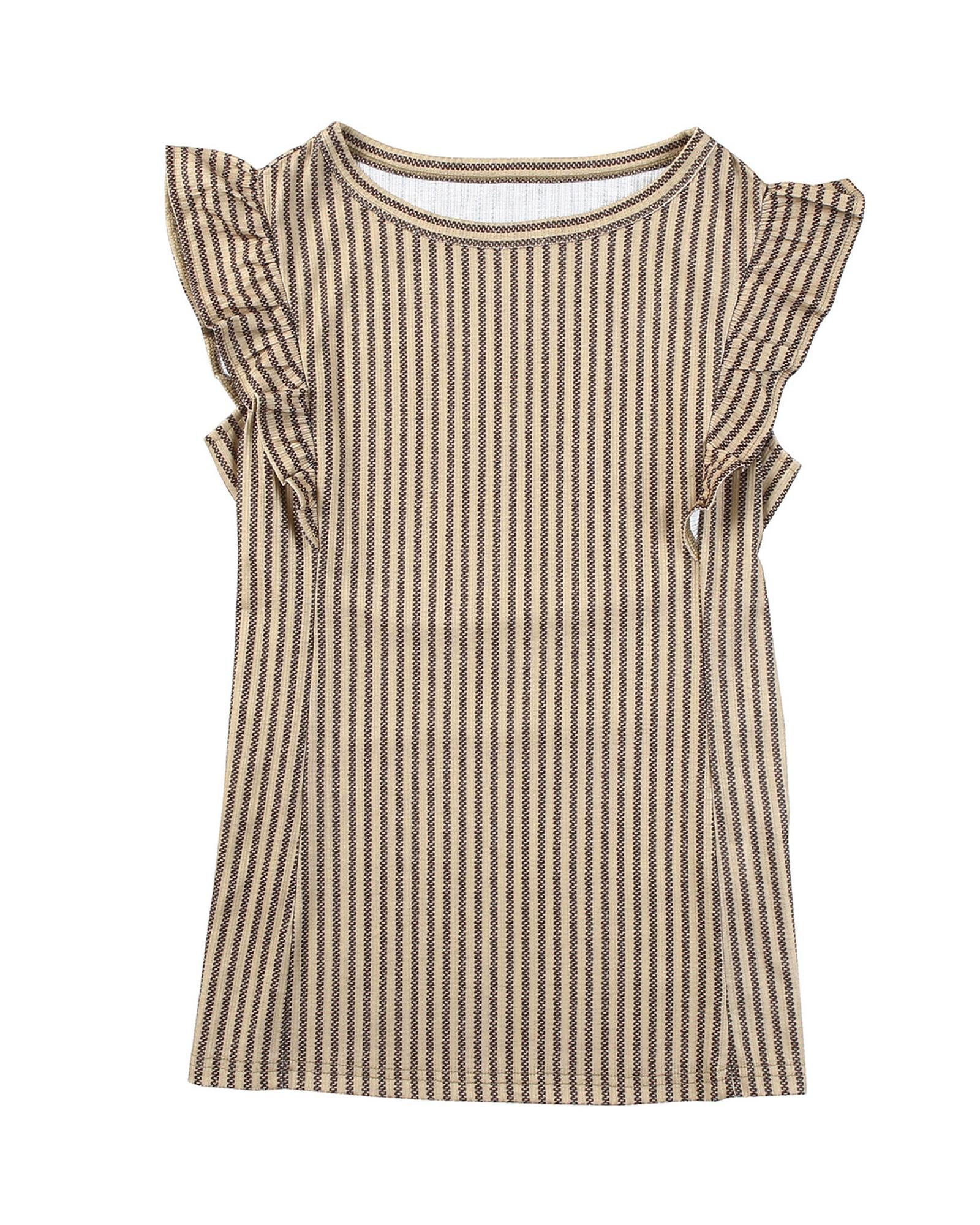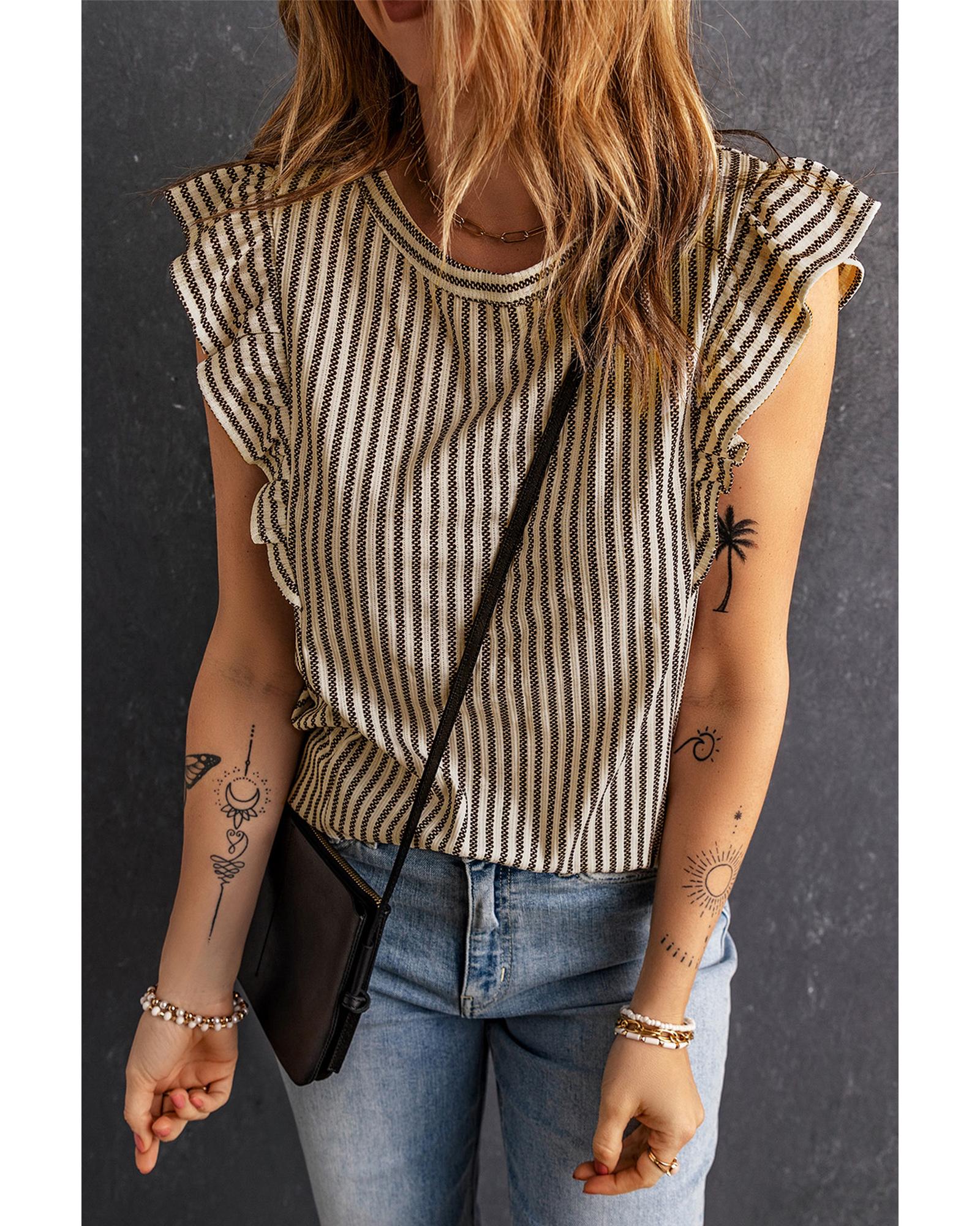 Khaki Striped Crew Neck Ruffled Tank Top - L